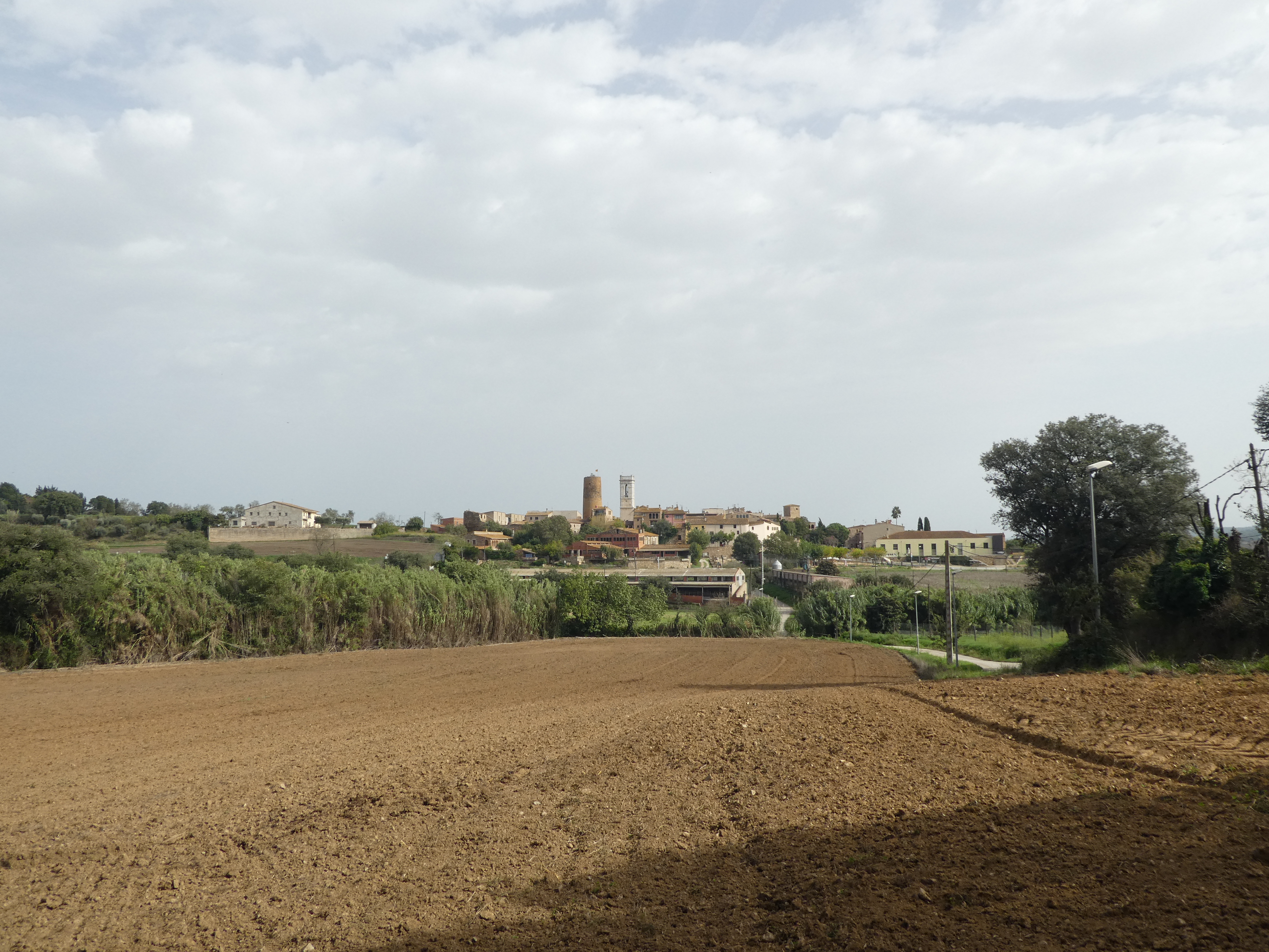 Départ Cruïlles (61 m) : suivre la route descendant tout droit direction la Bisbal d'Empordà, balisé en jaune et blanc