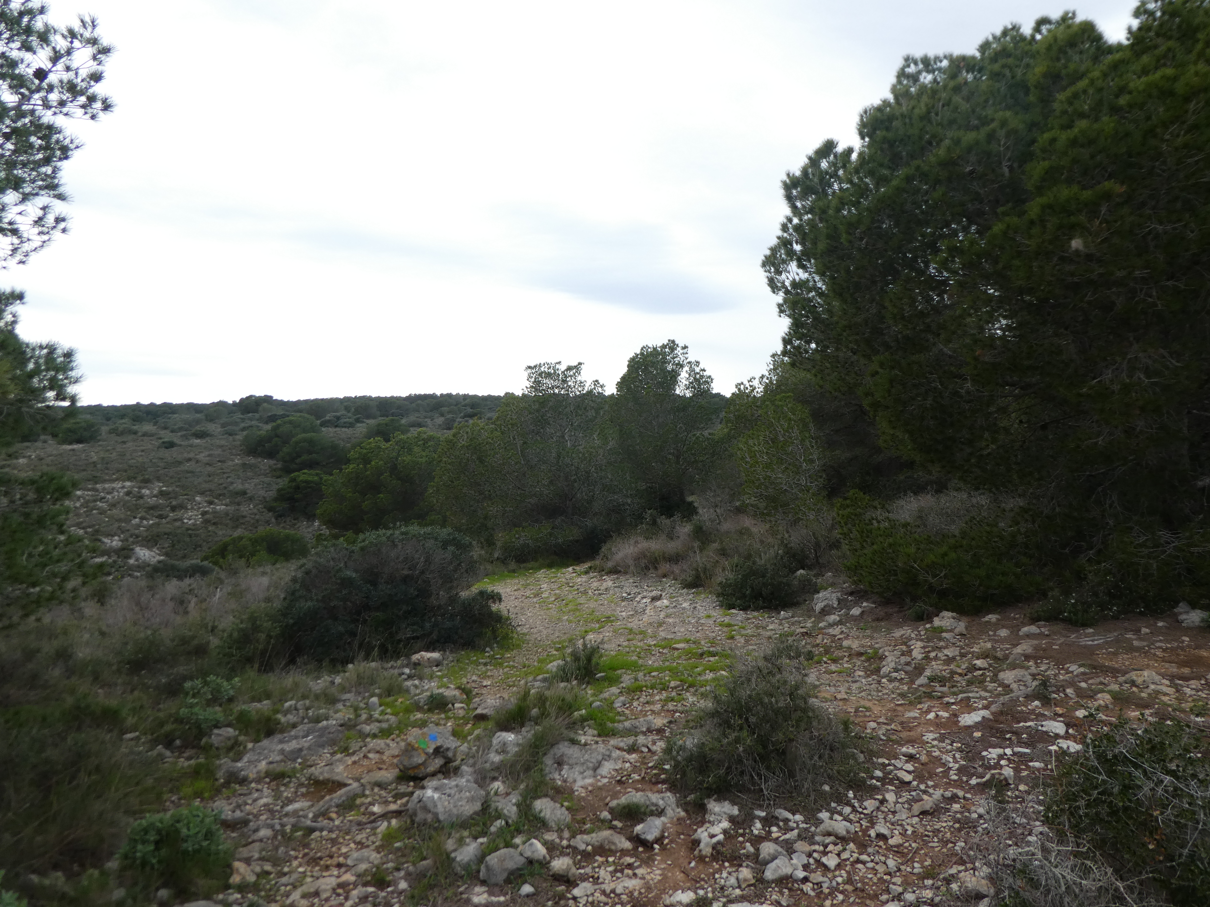 A ce croisement (500 mètres après avoir quitté la Torre Moratxa), suivre le chemin partant sur la gauche et ne perdant pas d'altitude direction l'Estartit, balisé sporadiquement en vert et blanc