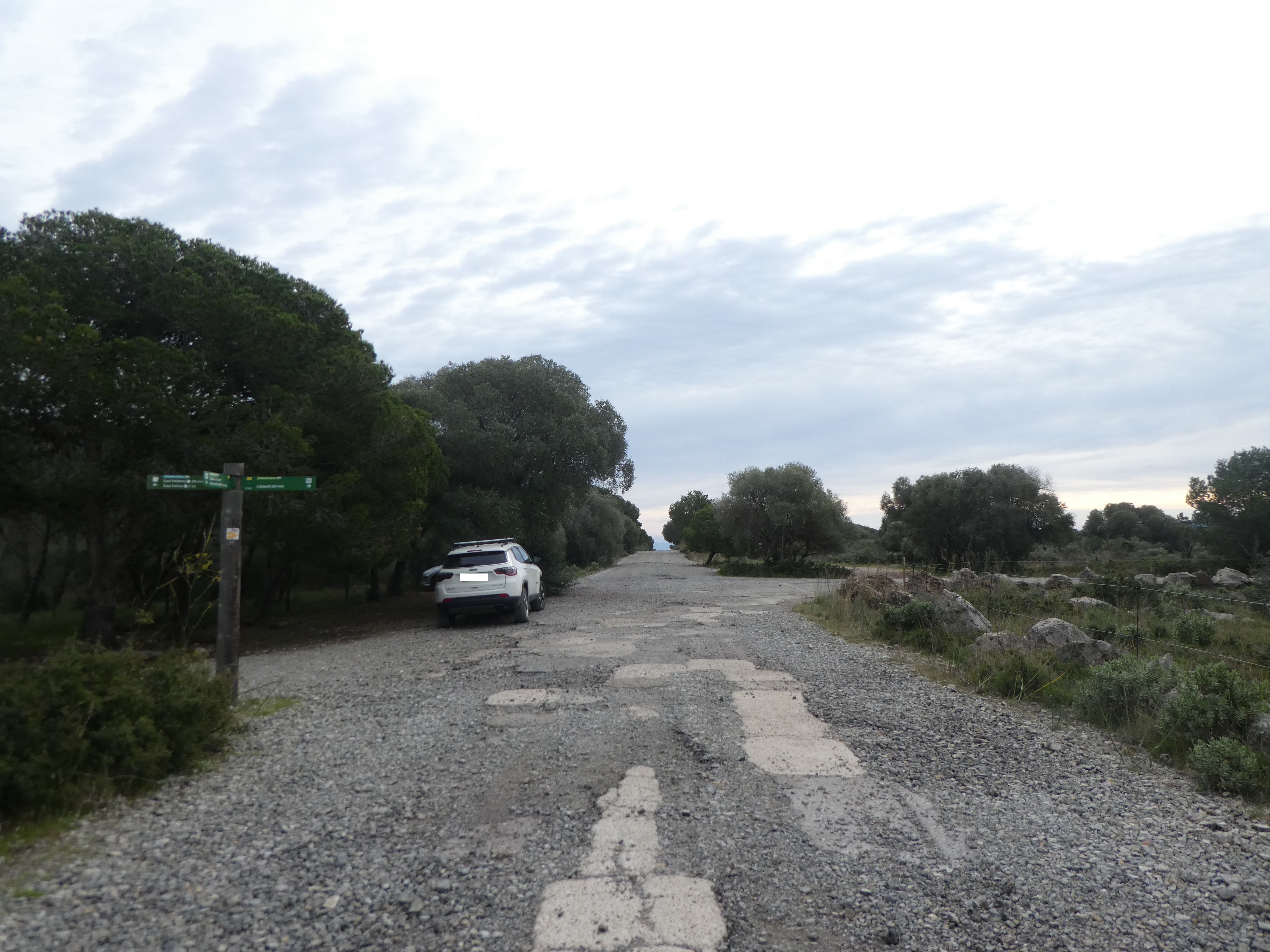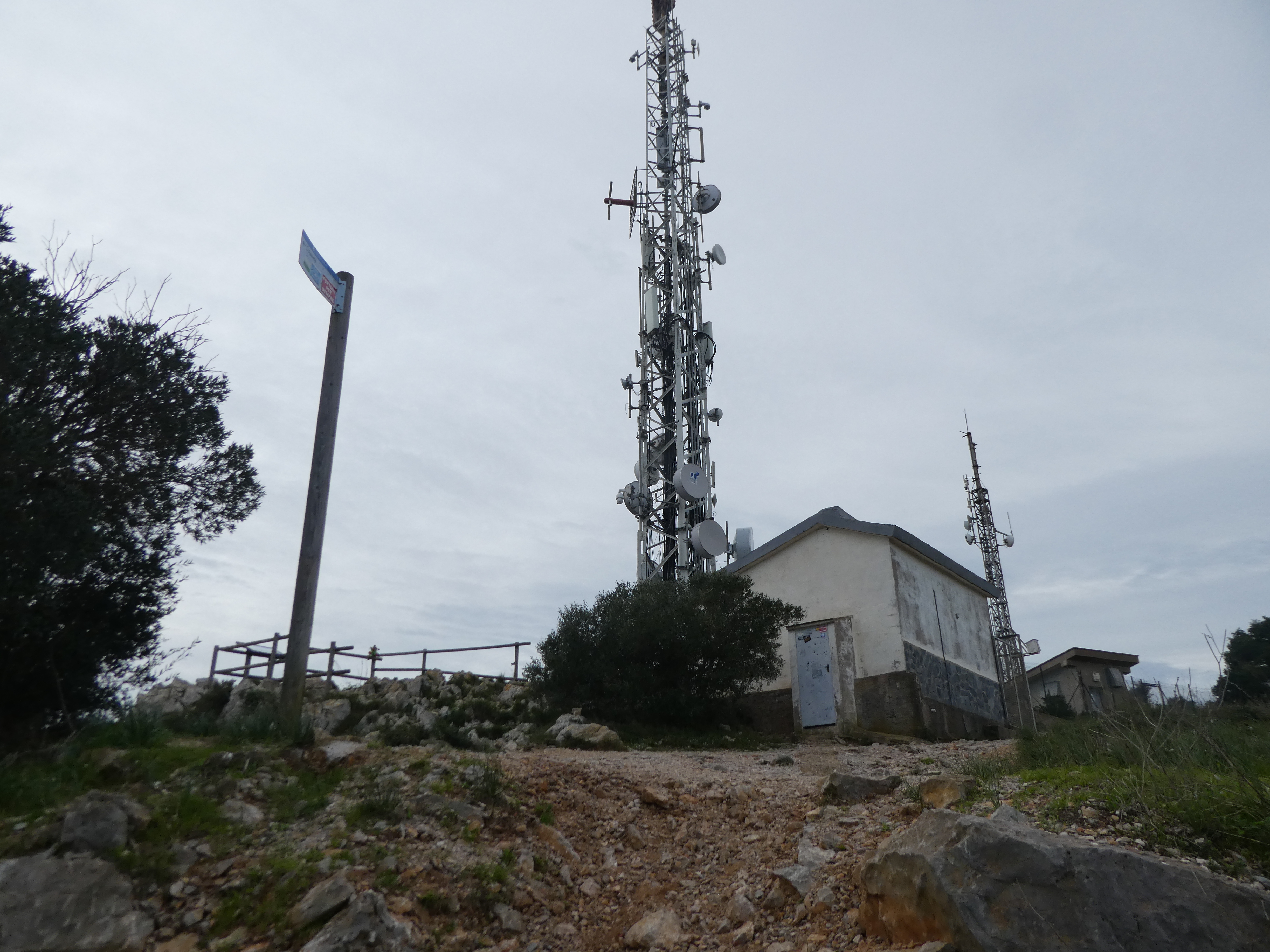 A ce croisement situé au niveau des antennes de la Roca Maura marqué par la présence d'un panneau directionnel (500 mètres après le précédent), suivre le chemin partant tout droit direction Roca Maura, balisé en vert et blanc