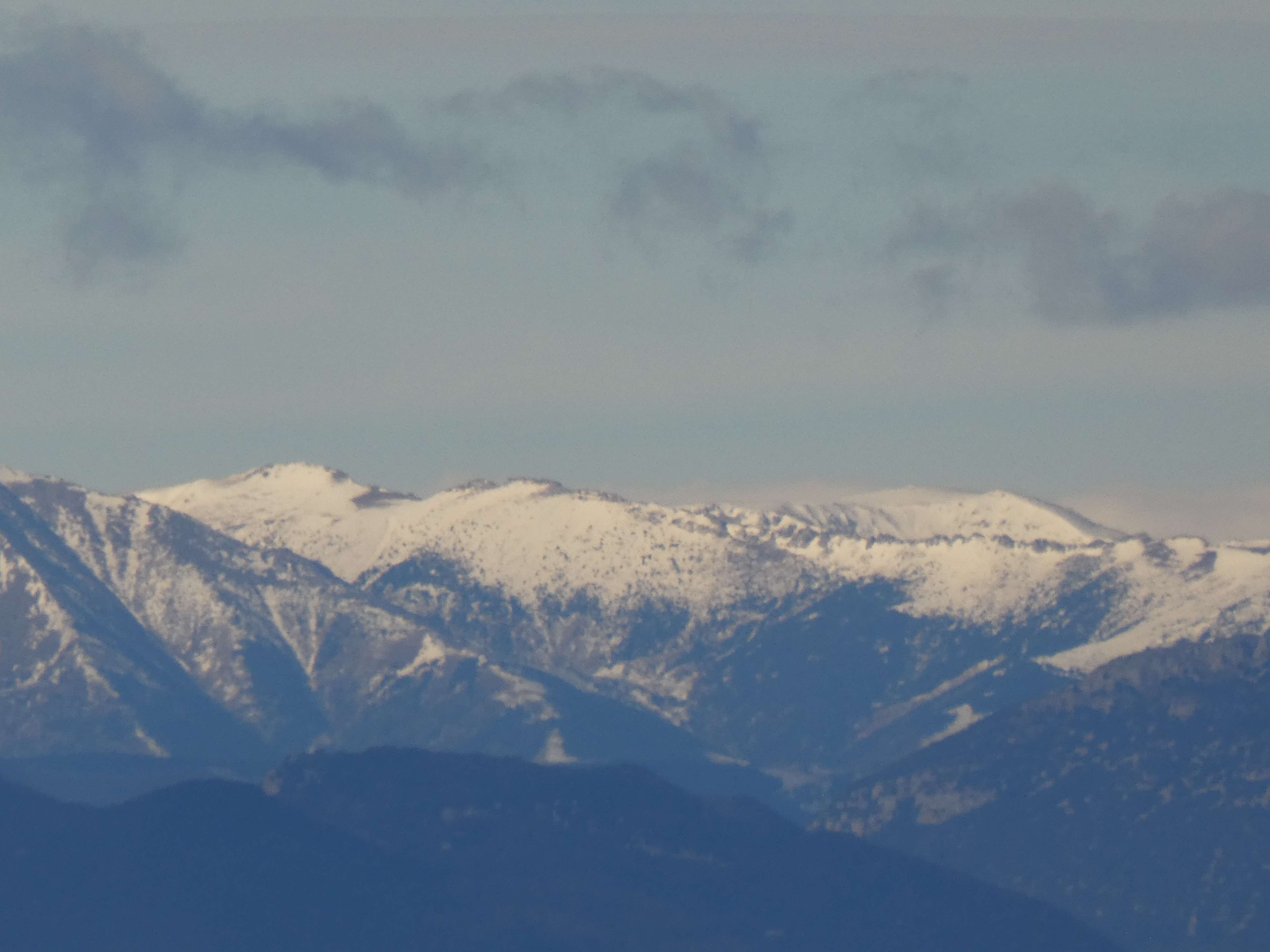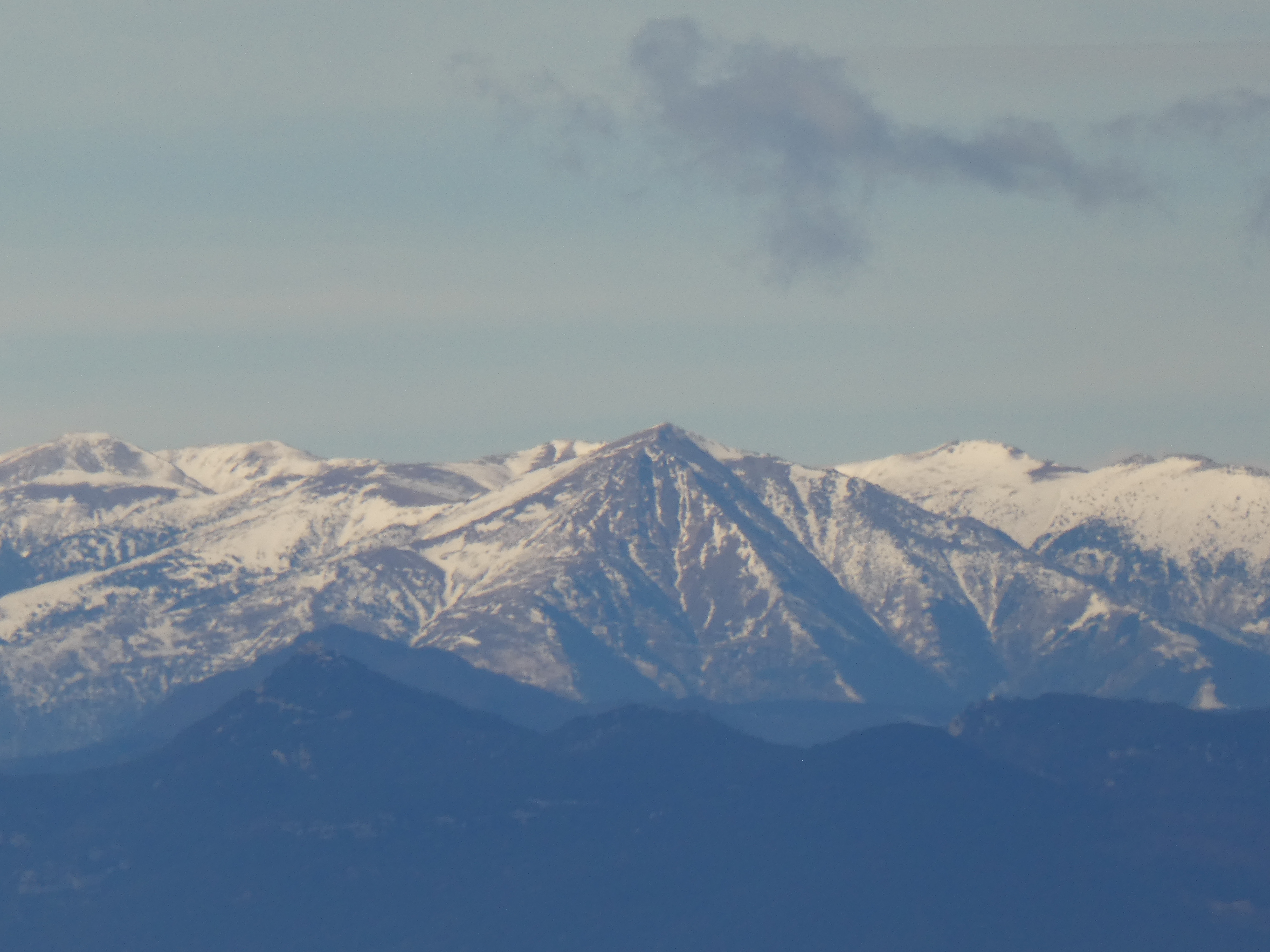 Zoom sur le Puigmal (2910 m) au centre et le Pic de Segre (2843 m) à droite