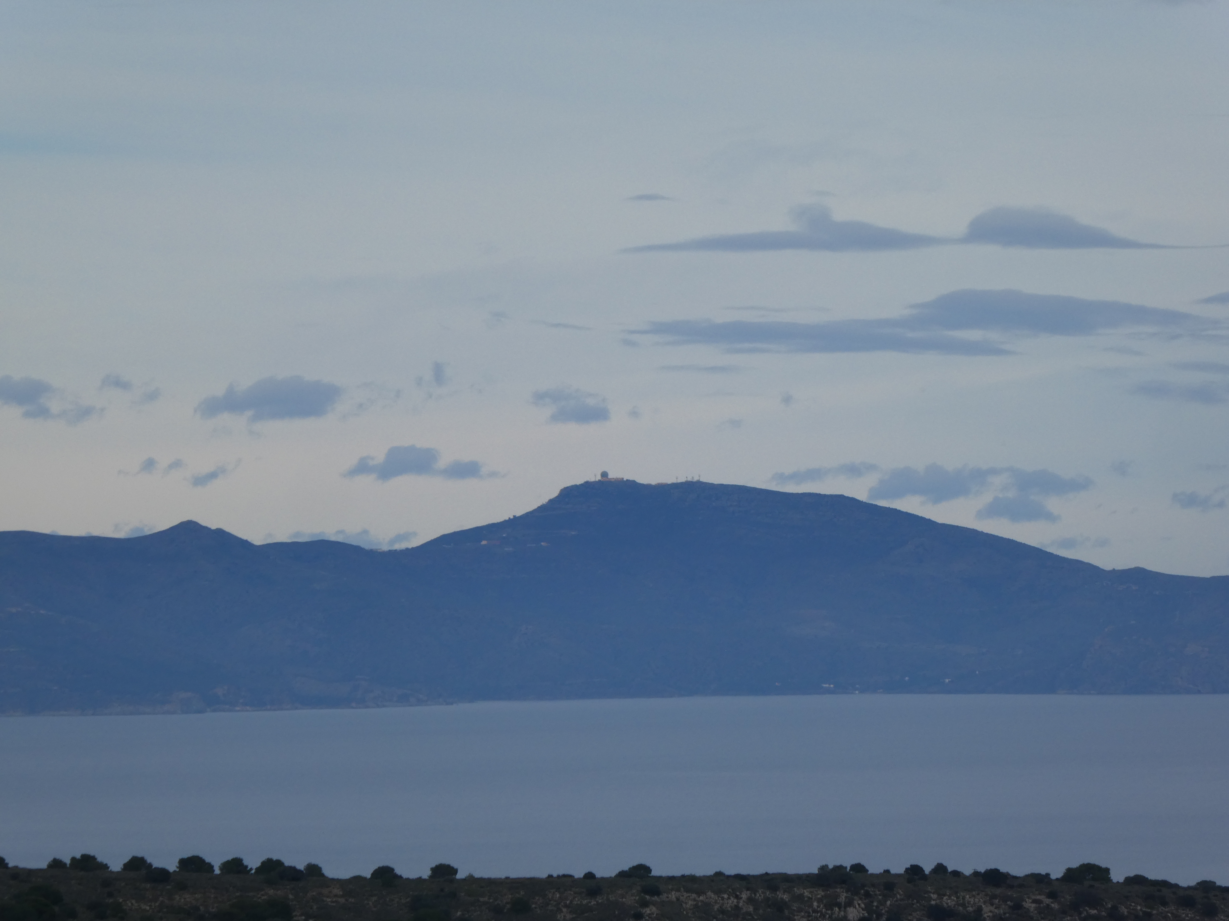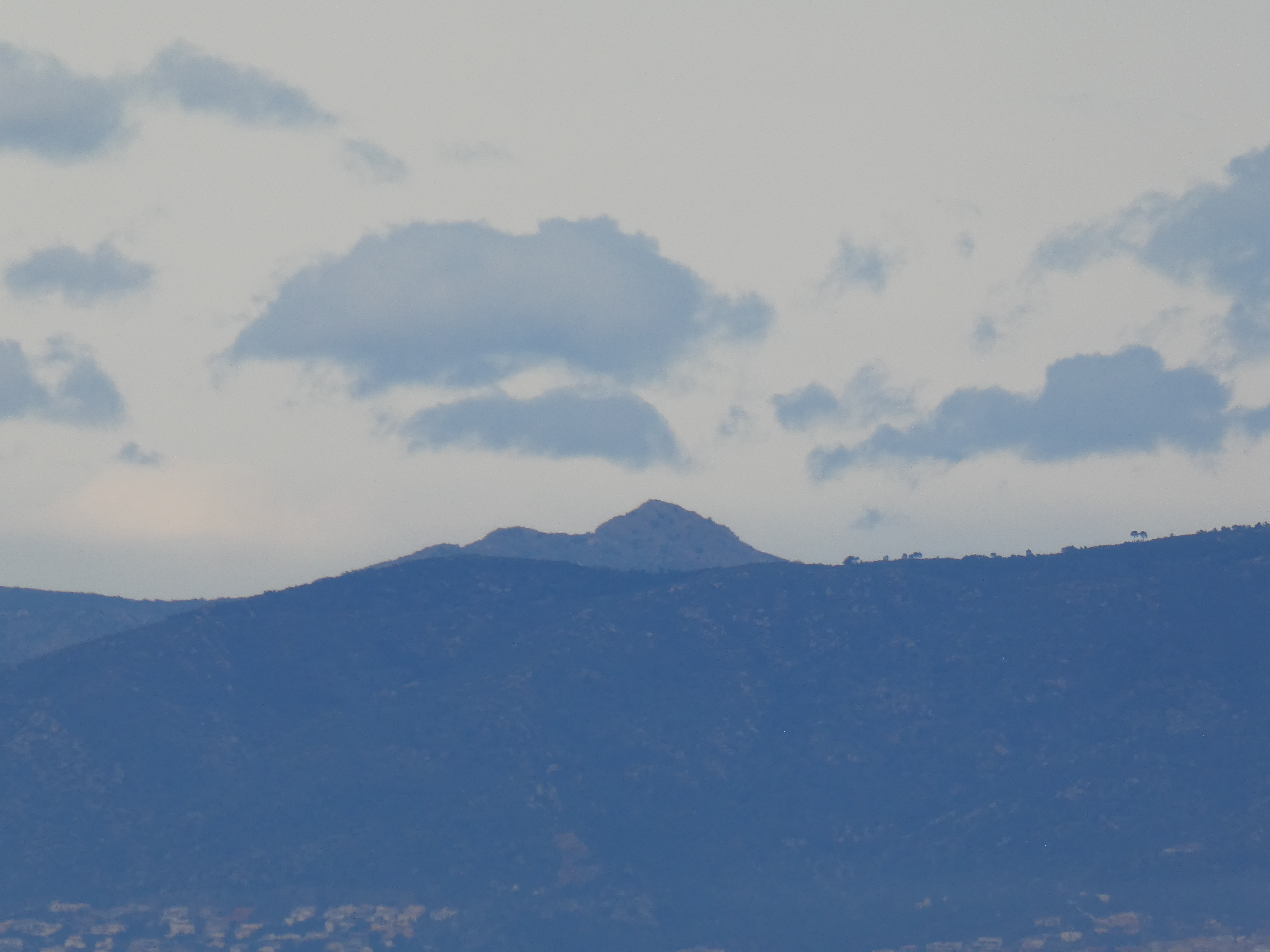 Zoom sur le Puig de la Bicoca (1445 m) à gauche et Santa Magdelena de Cambrils (1547 m) au centre et