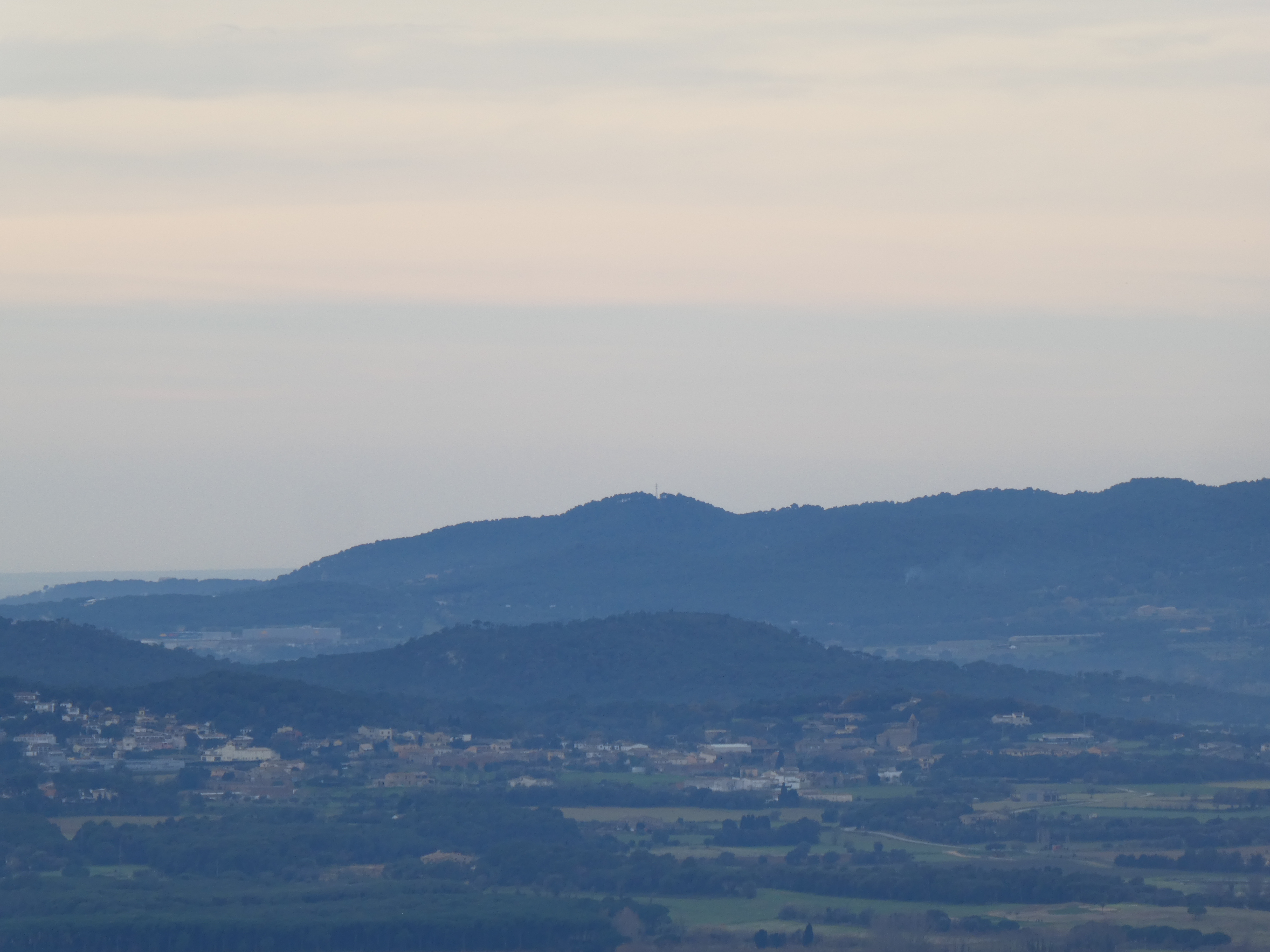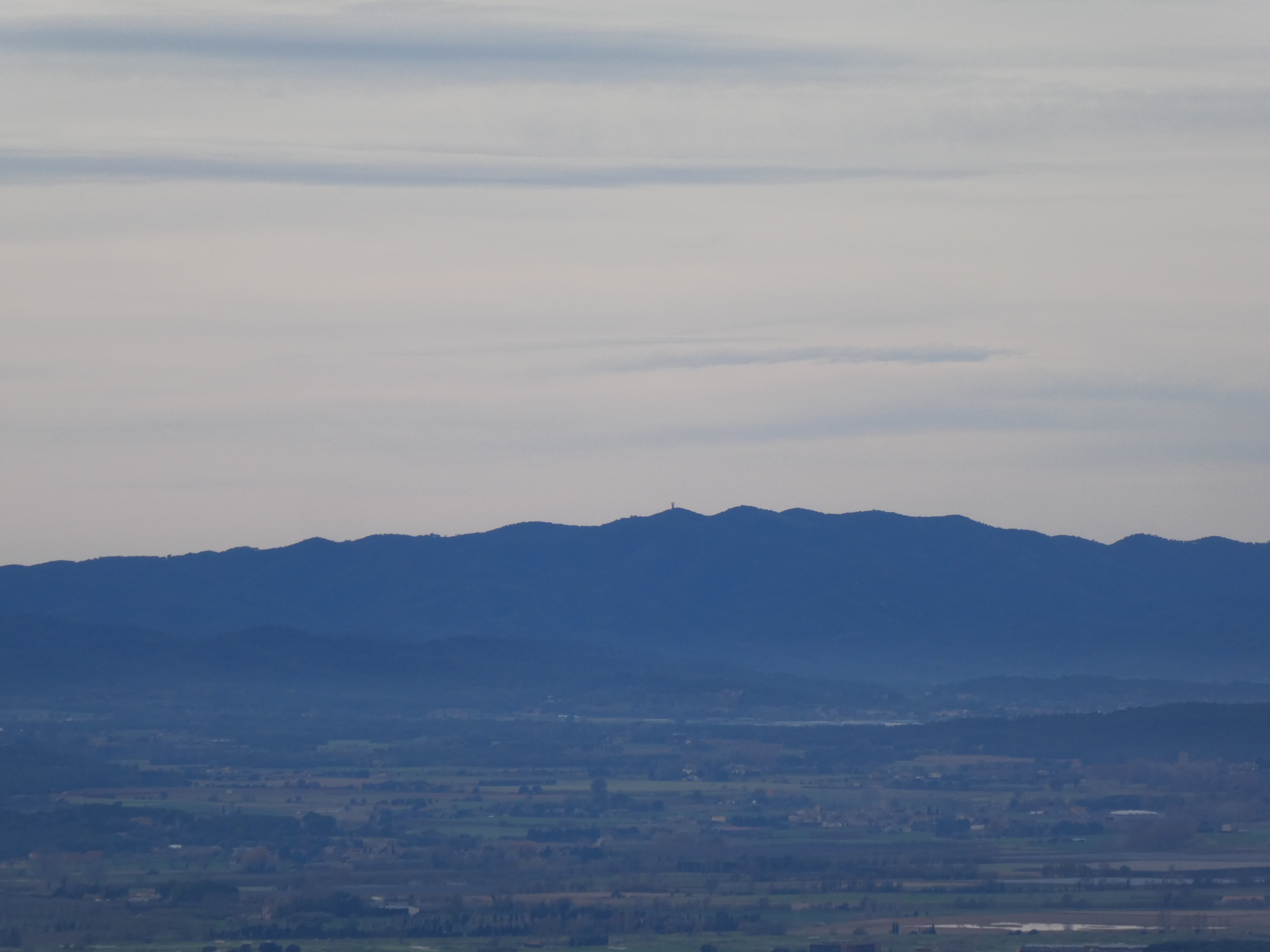 Zoom sur le massif de Montseny avec les Agudes (1706 m) et le Turó de l'Home (1706 m) au centre, et Matagalls (1697 m) à droite