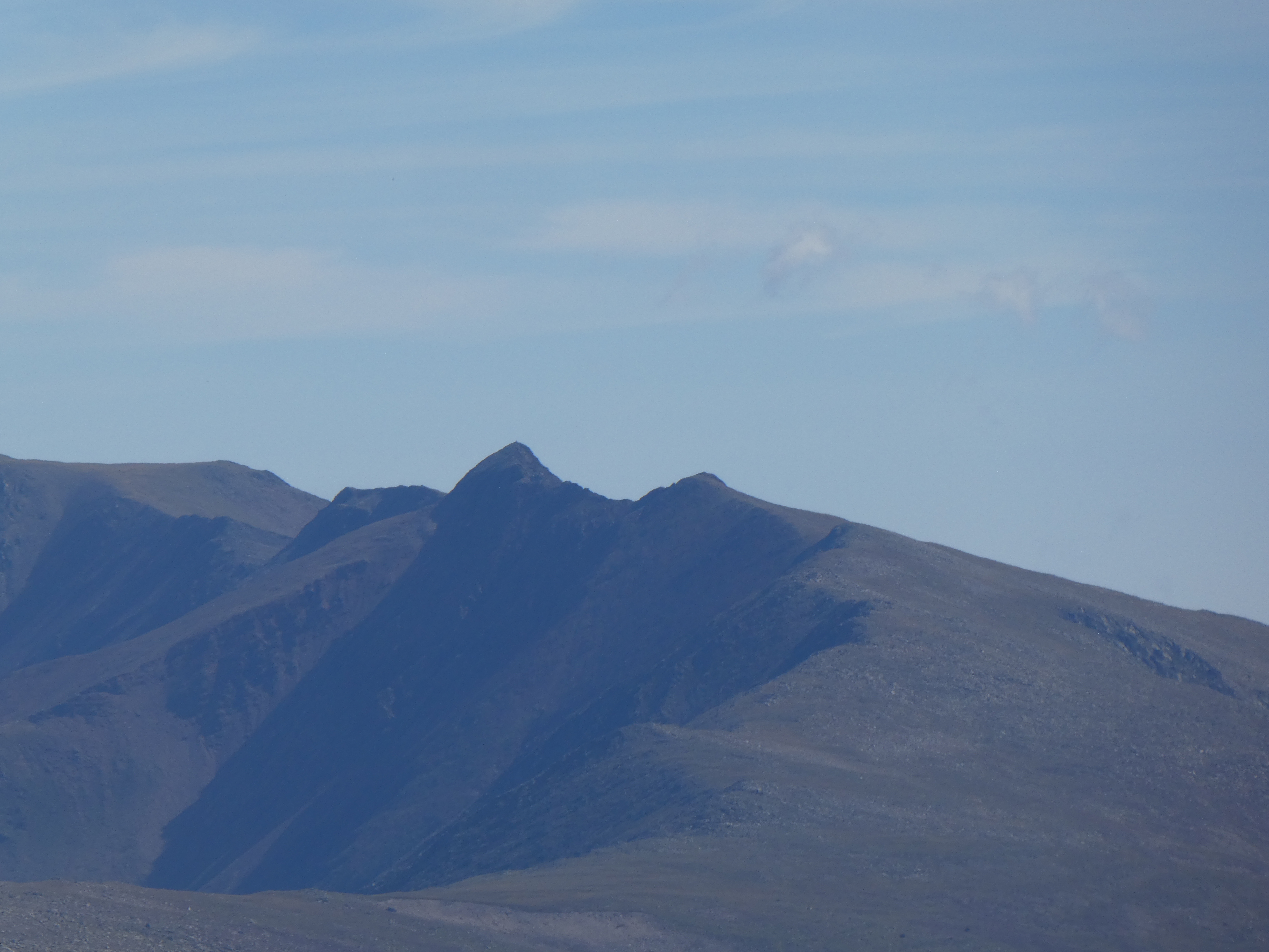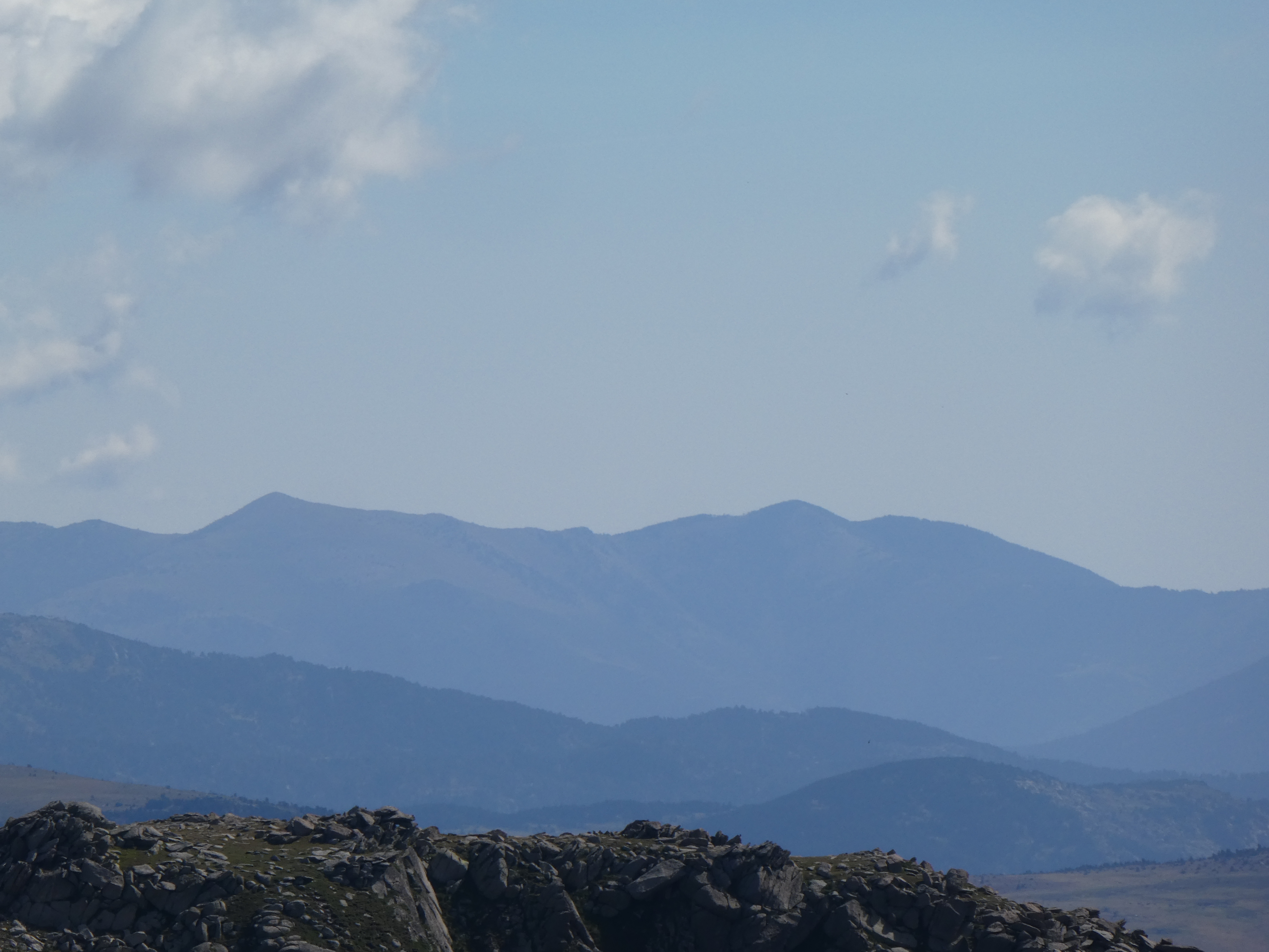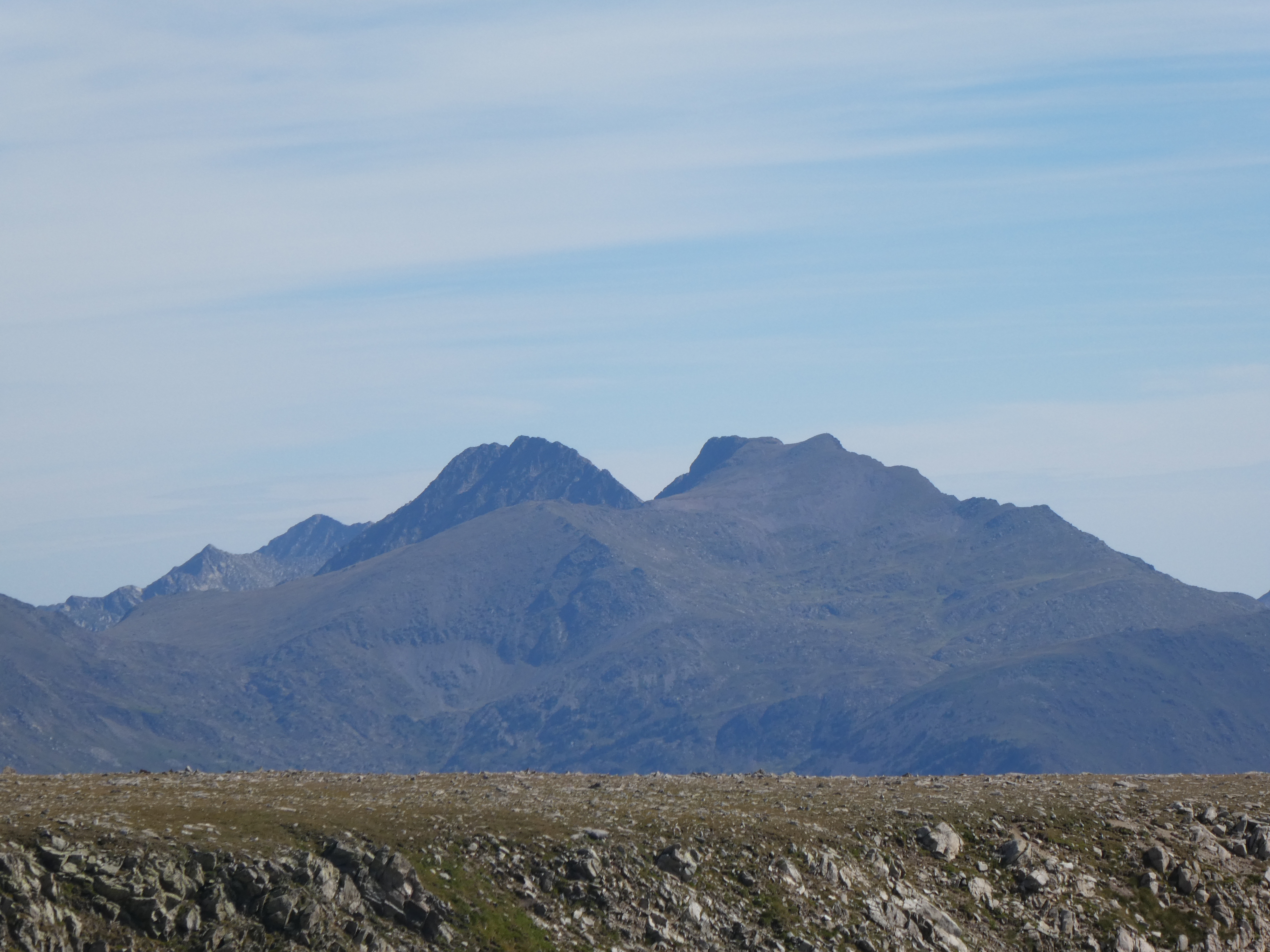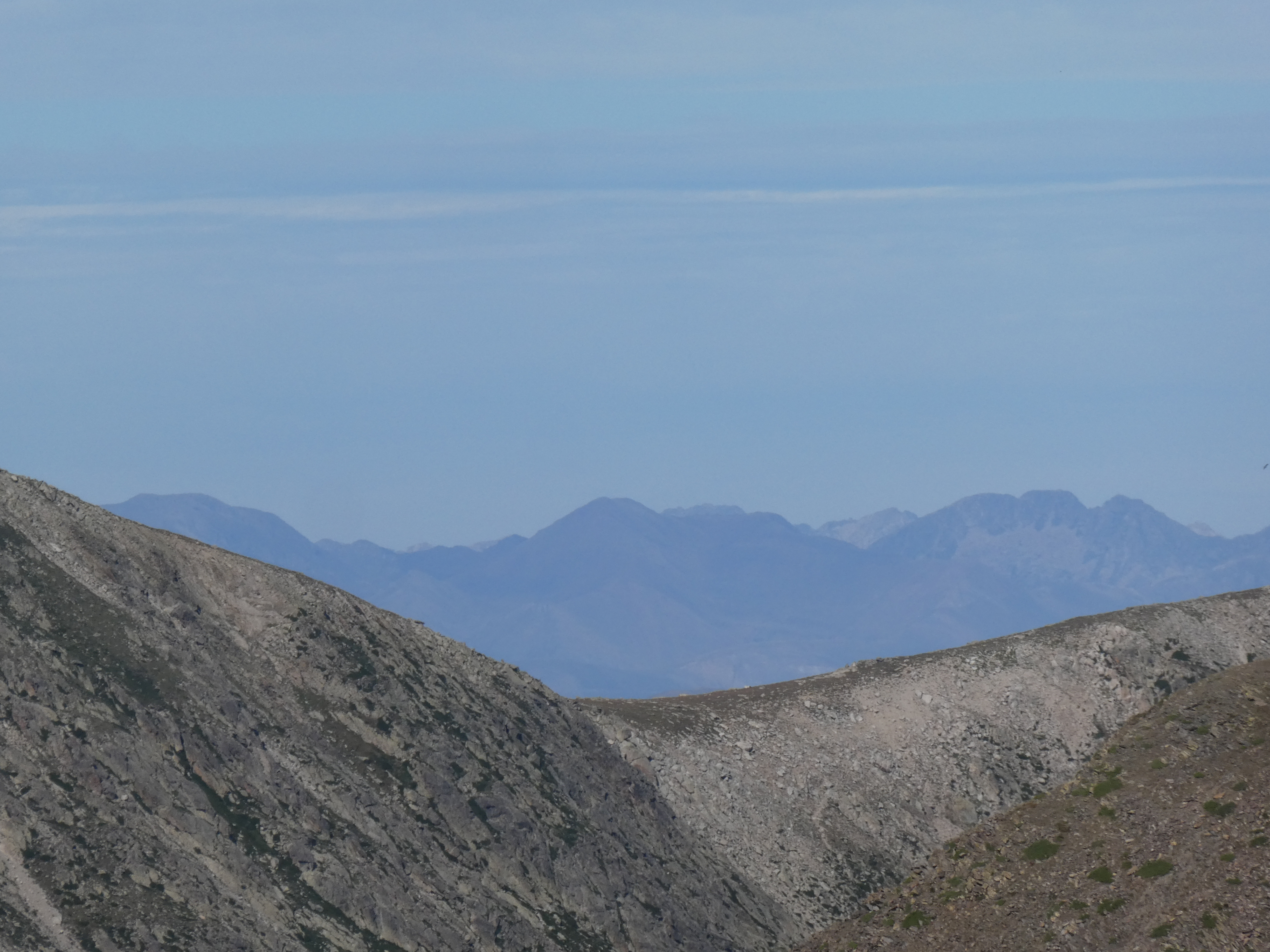 Zoom sur le Puig Carlit (2921 m) à gauche et le Puig de Solana Carnicera (2878 m) à droite