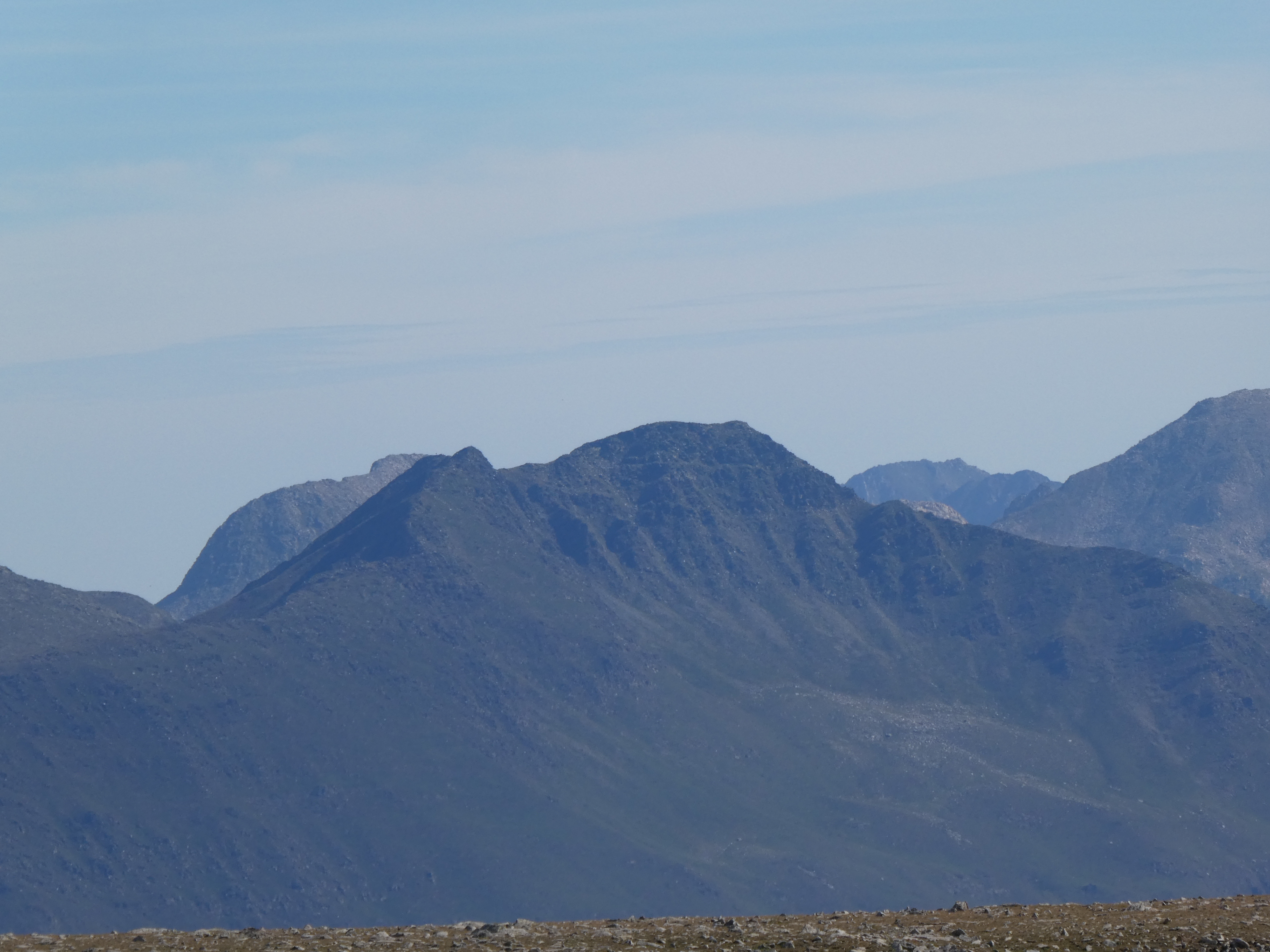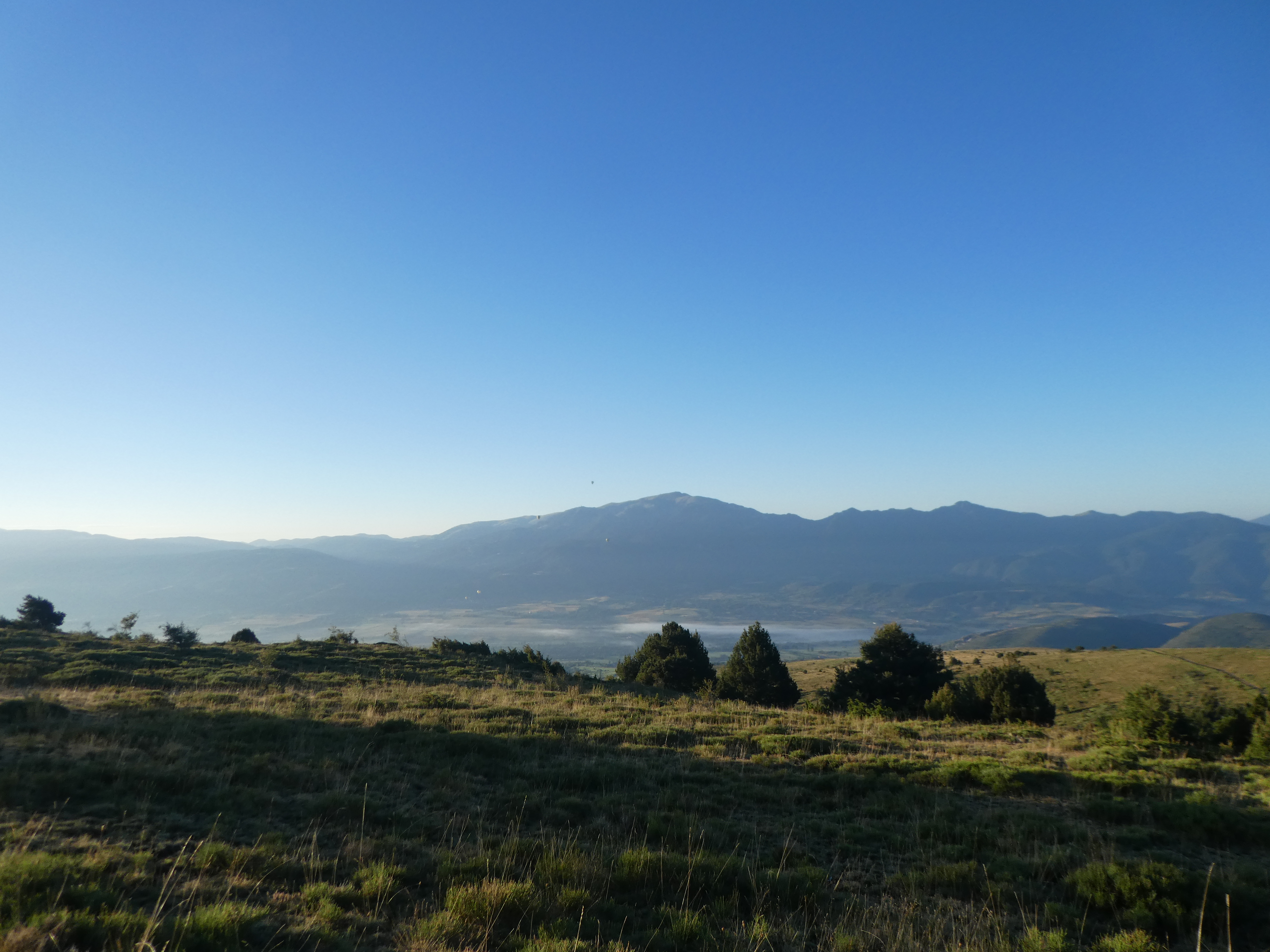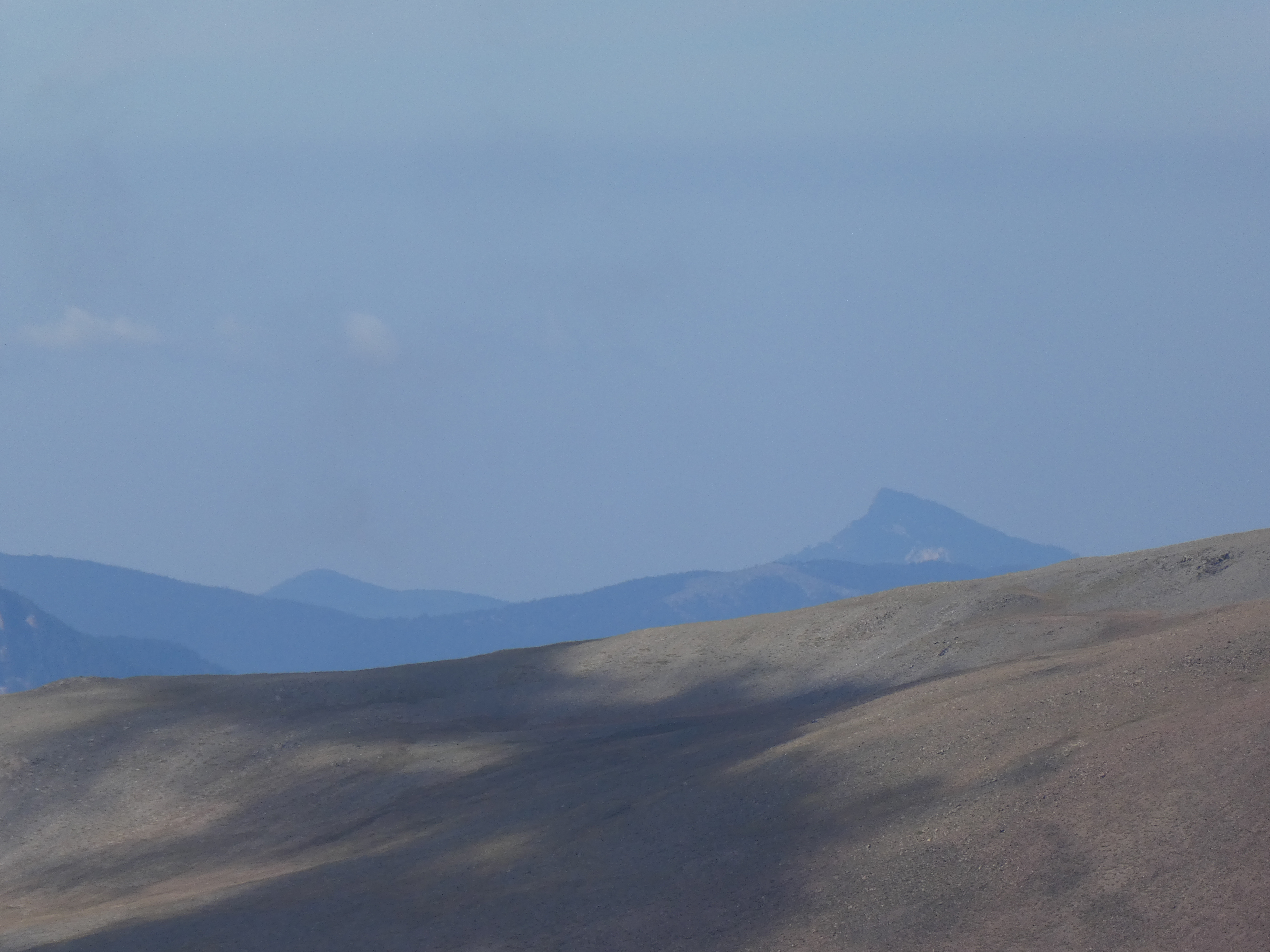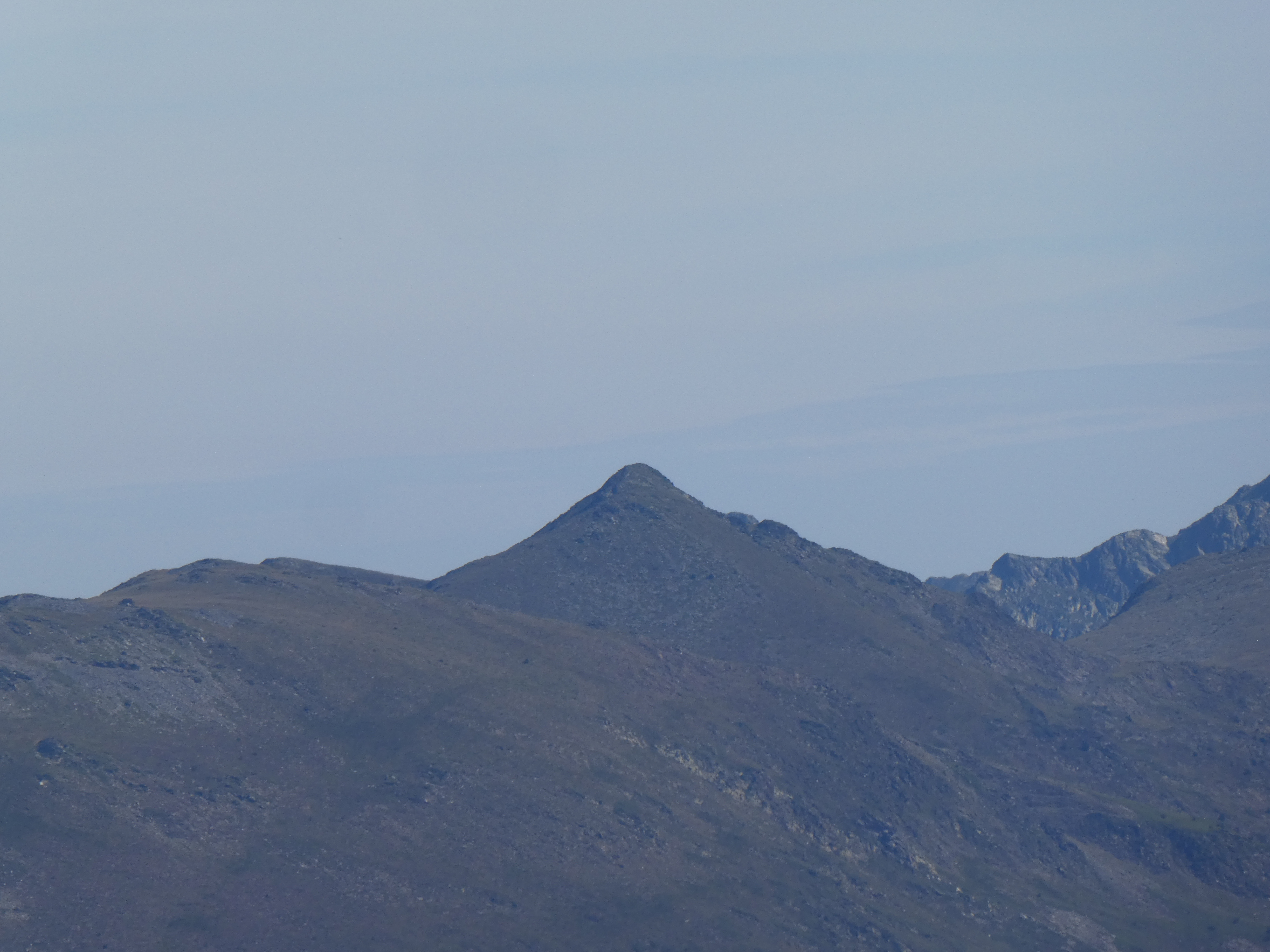 Zoom sur le Puig Carlit (2921 m) à gauche et le Puig de Solana Carnicera (2878 m) à droite