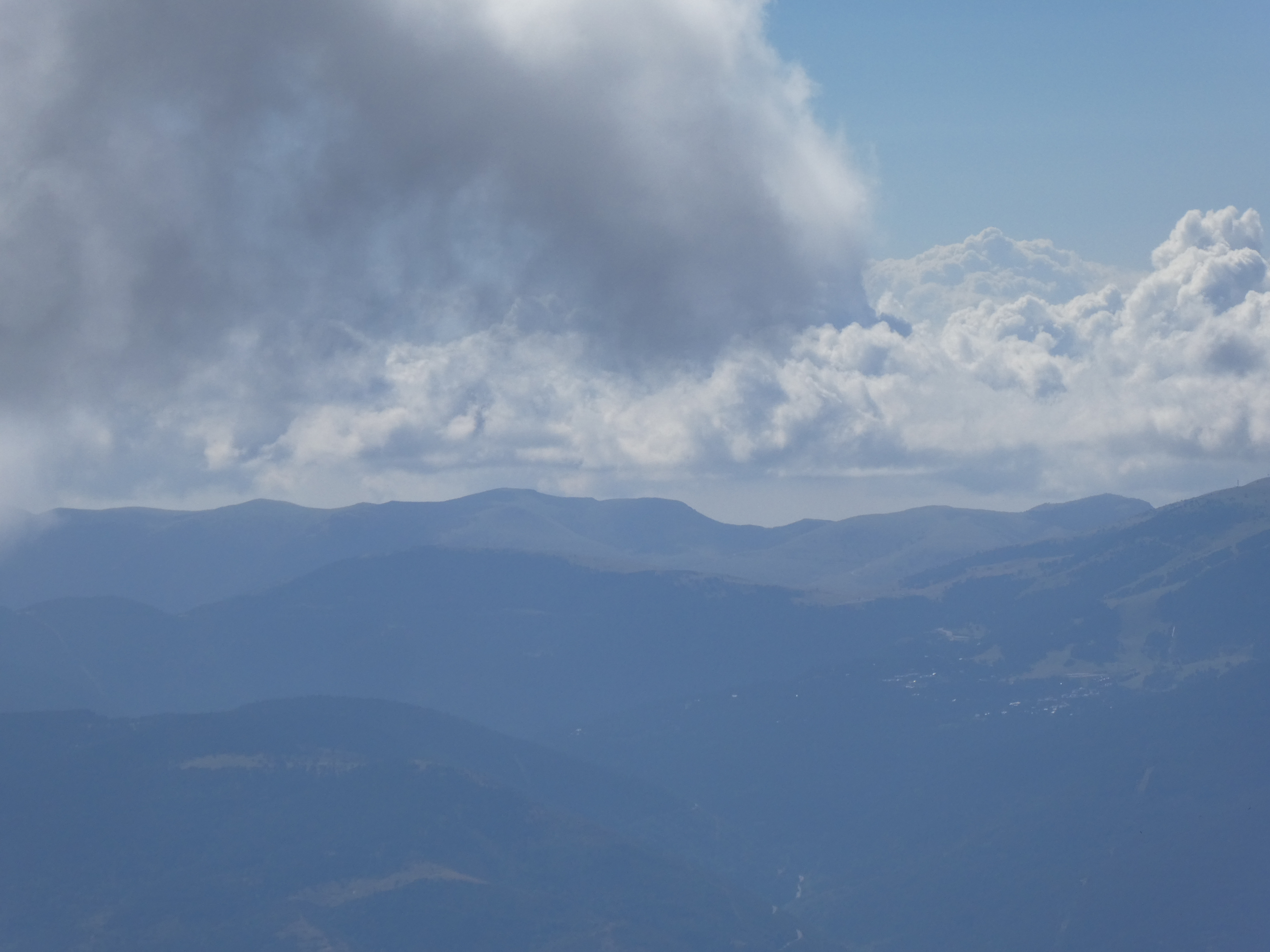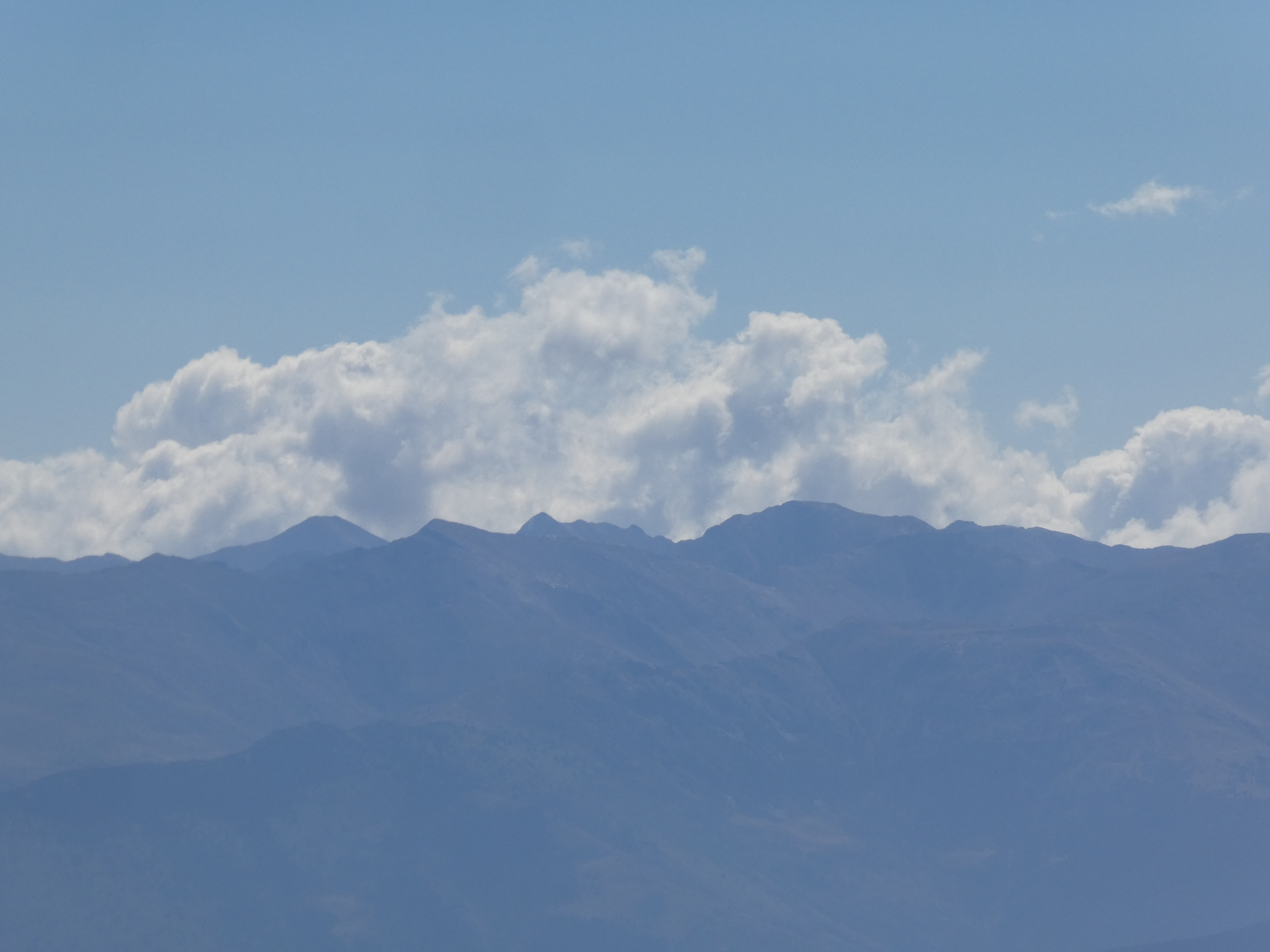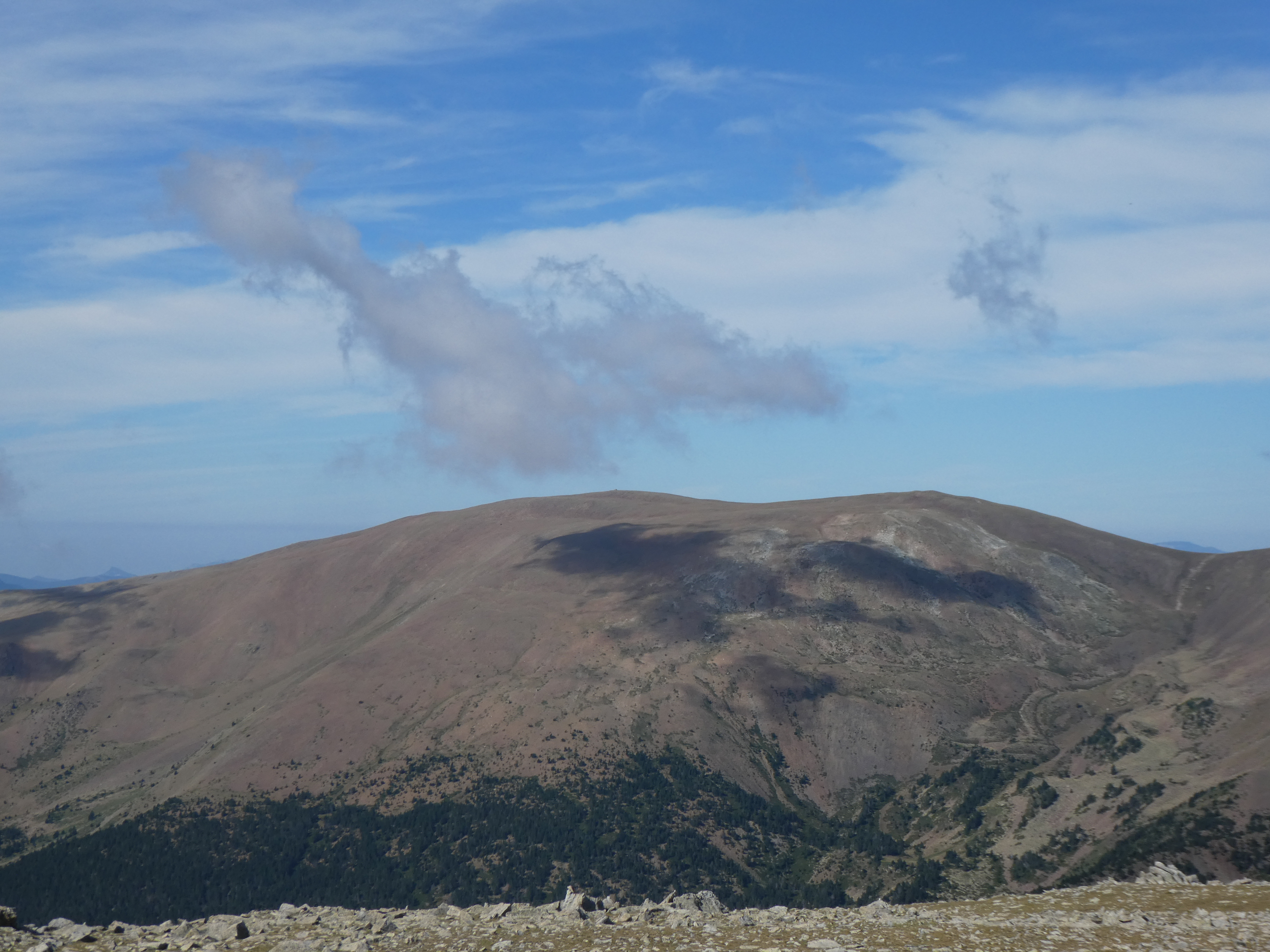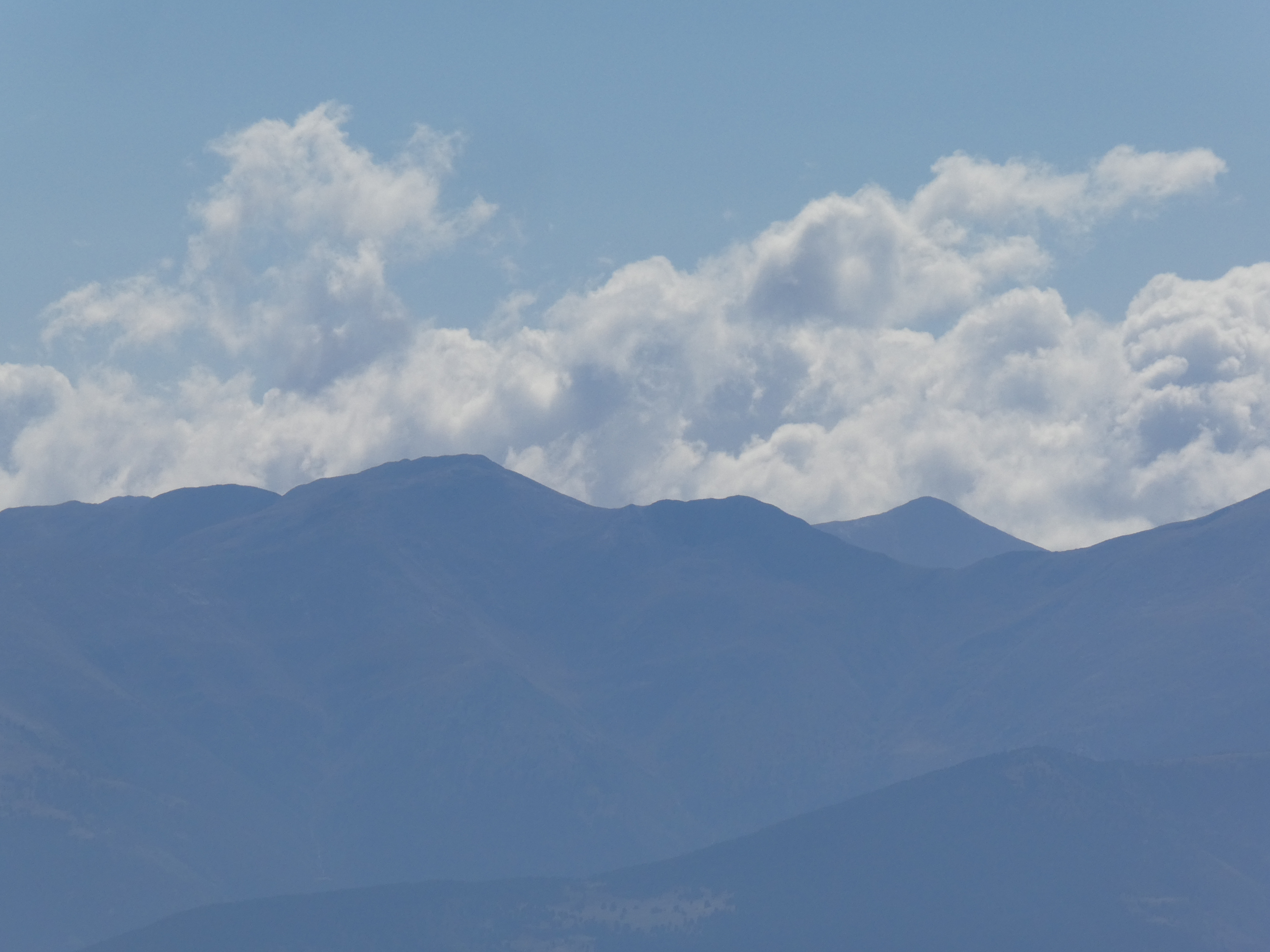 Zoom sur le Pic de Segre (2843 m) à gauche et le Puigmal (2910 m) à droite