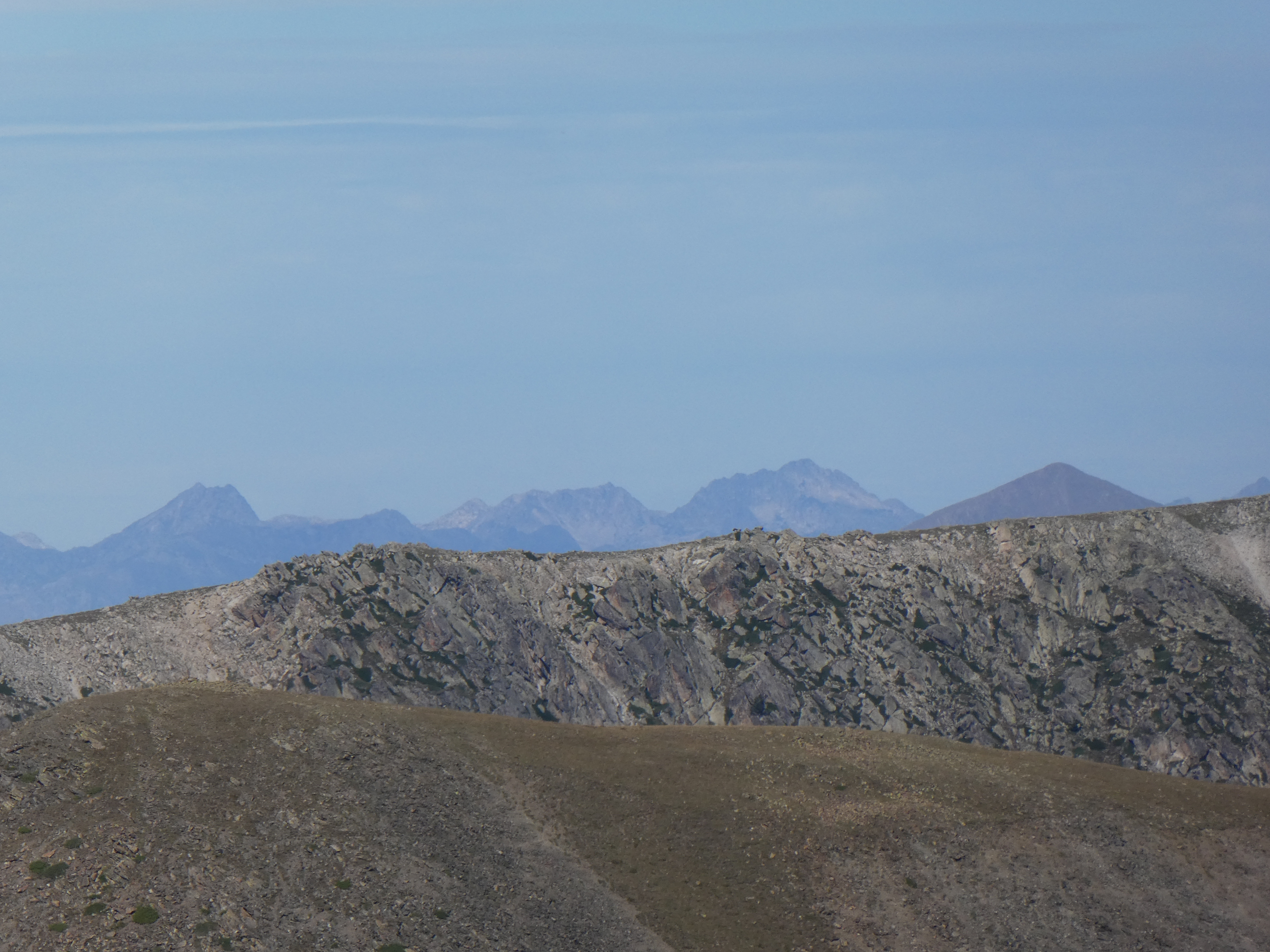 Zoom sur le Puig Pedrós (2842 m) au centre-gauche et le Puig de Coma d'Or (2826 m) au centre-droit