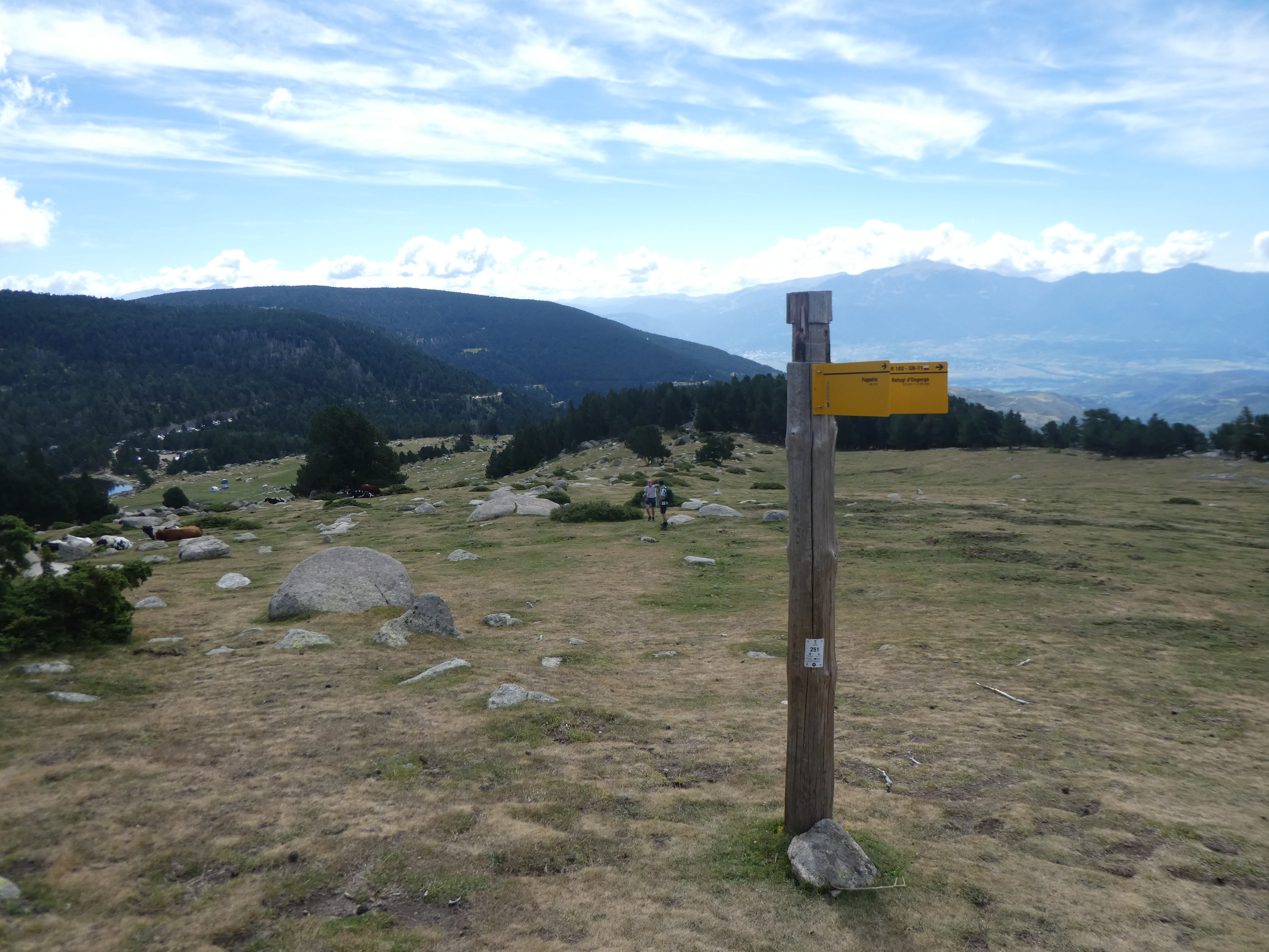 A ce croisement marqué par la présence d'un panneau directionnel (800 mètres après le précédent), suivre le chemin partant tout droit direction Estany de Malniu, balisé sporadiquement en jaune n°120