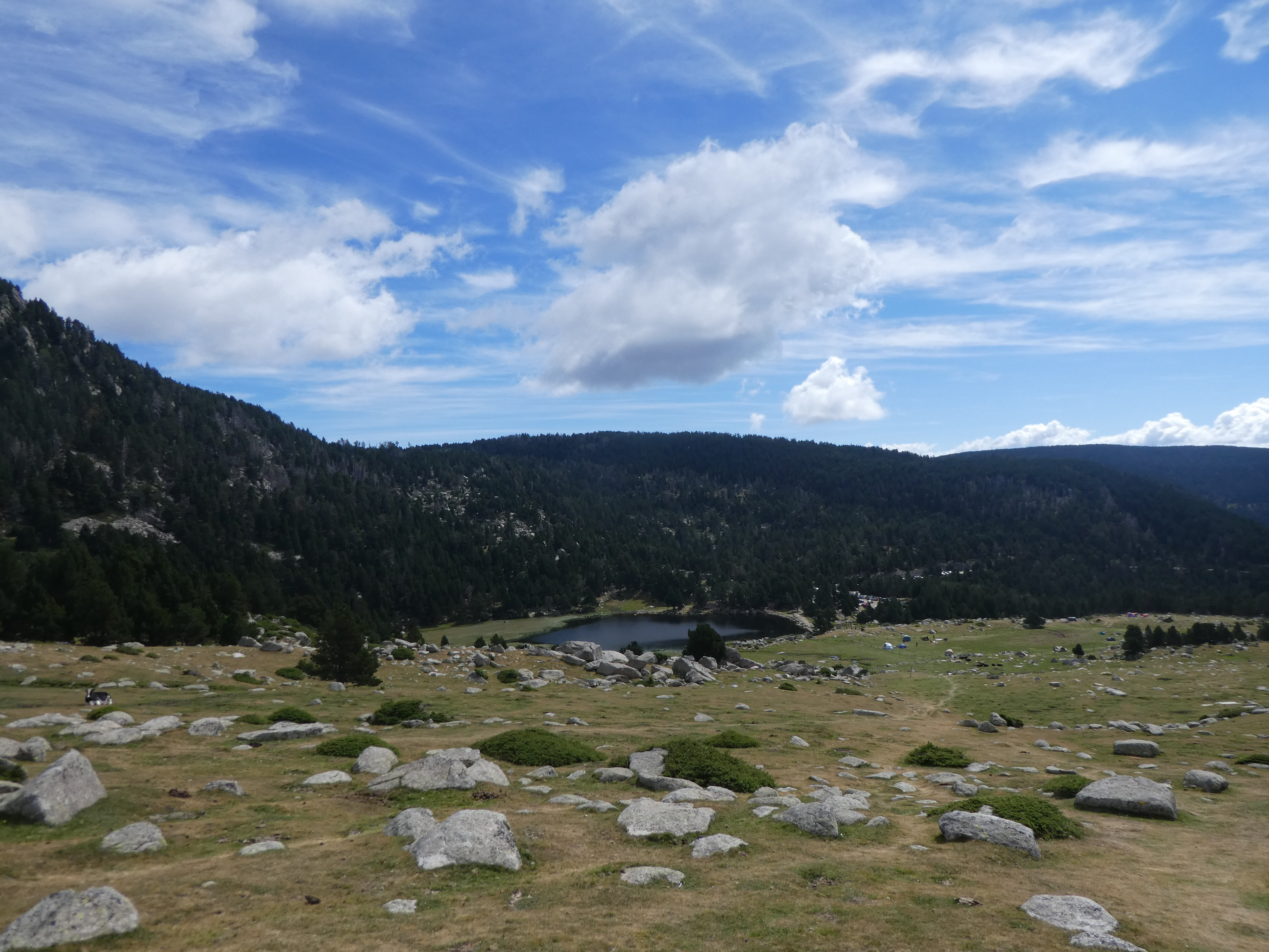 A ce croisement situé au niveau de l'Estany de Malniu (300 mètres après le précédent), suivre le chemin partant tout droit puis celui partant sur la gauche 25 mètres plus loin et contournant l'Estany de Malniu par l'Ouest direction Puigpedrós, aucun balisage dorénavant