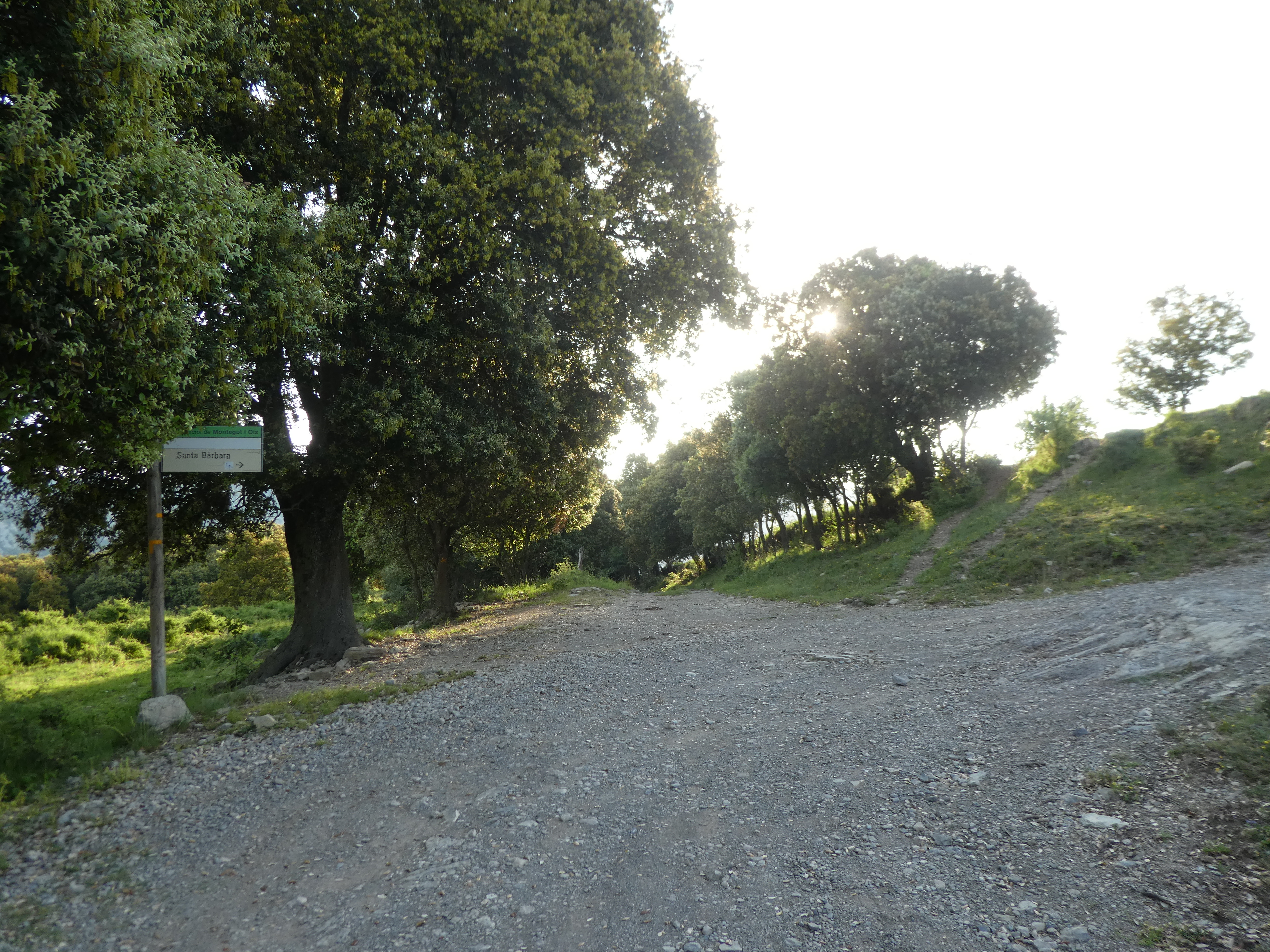 A ce croisement avec la piste menant à l'Església Santa Bàrbara de Pruneres marqué par la présence d'un panneau directionnel (50 mètres après le lieu-dit "Mirador de la Sala"), suivre cette dernière partant sur la droite pour faire un aller-retour vers l'église direction Església de Santa Bàrbara, balisé en jaune