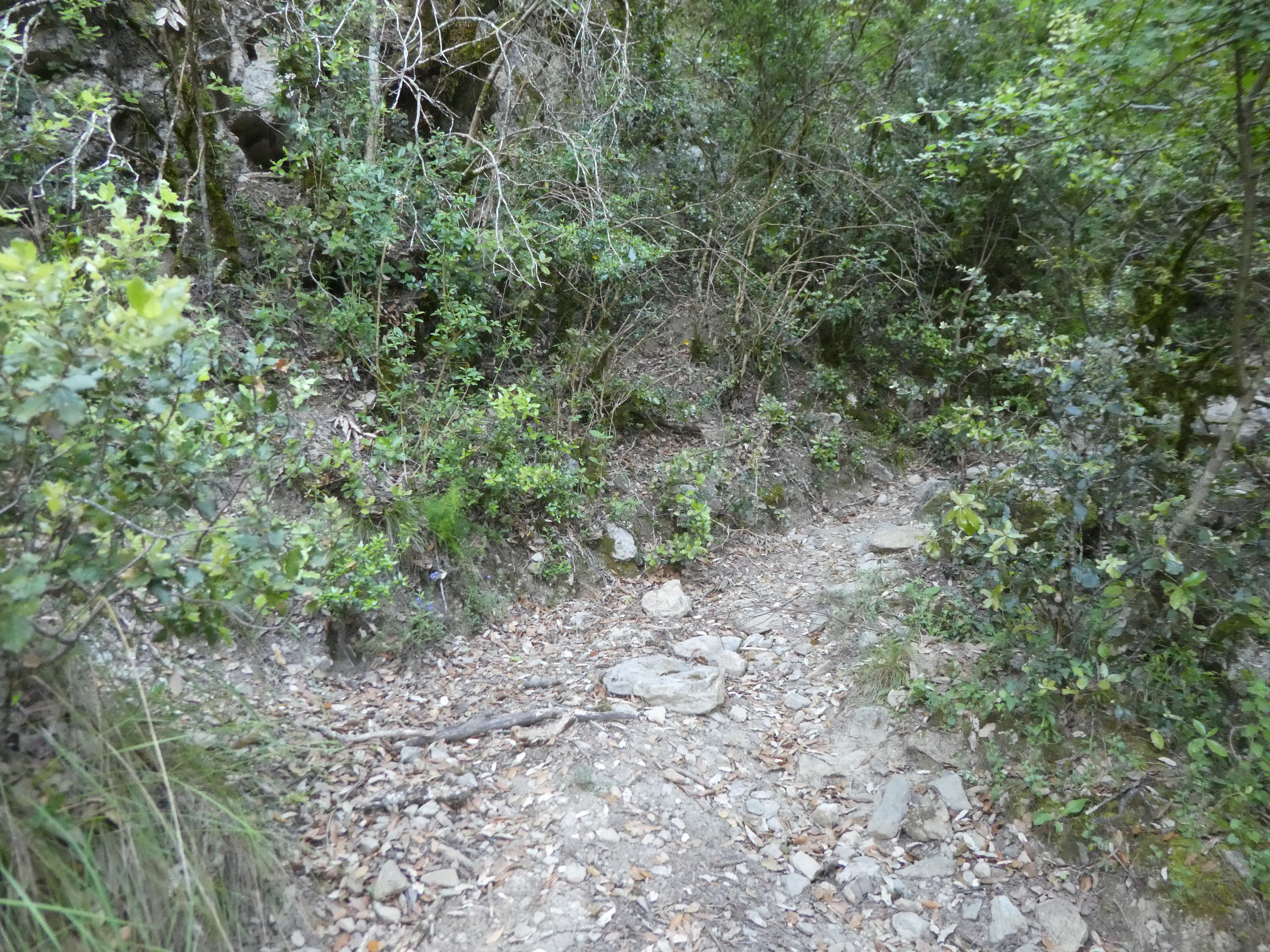 Quelques passages abrupts sur le sentier de descente vers le hameau de Talaixà : attention à ne pas glisser !
