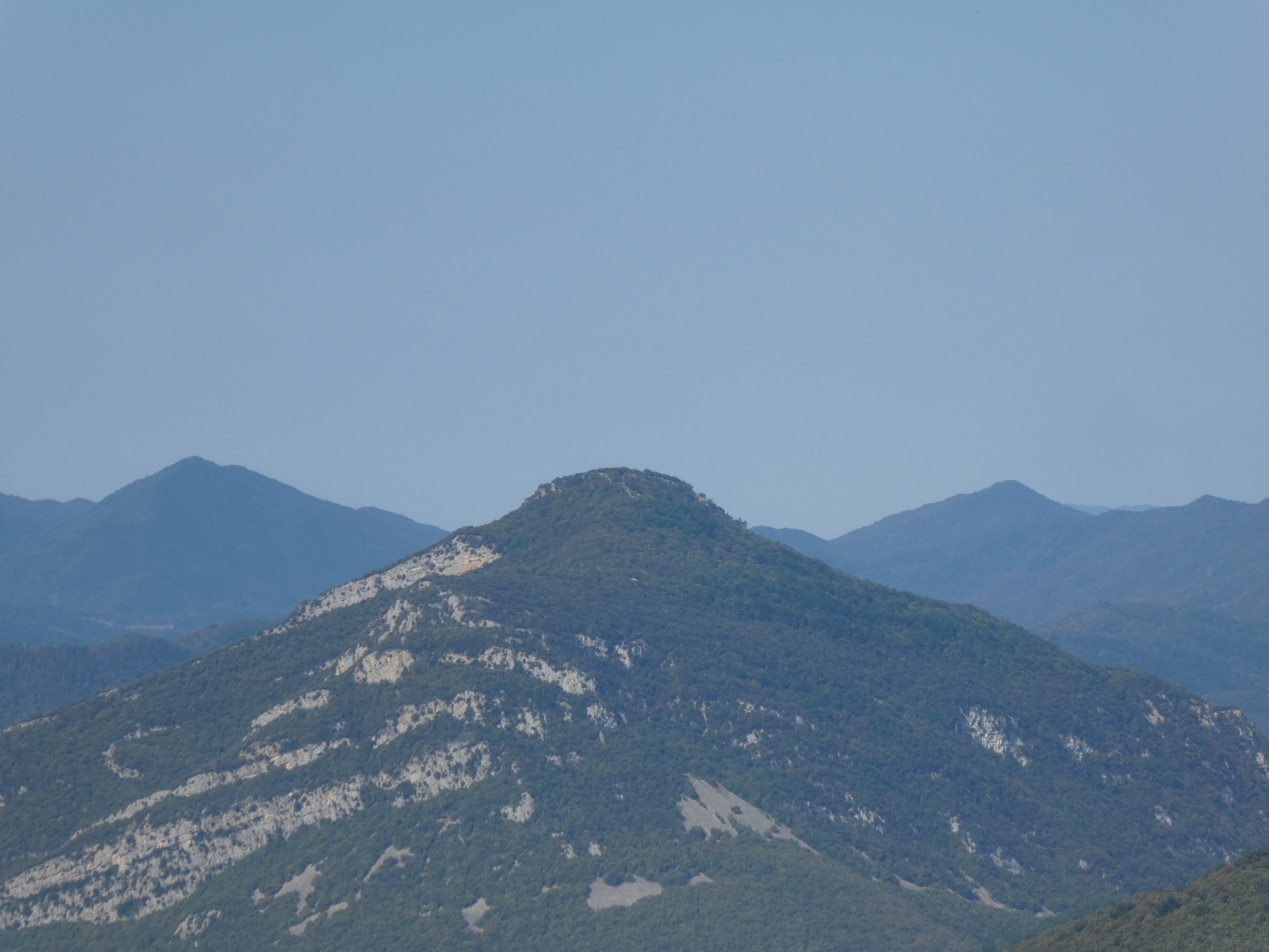 Zoom sur Santa Magdalena de Cambrils (1547 m) au centre-gauche et Milany (1529 m) à droite