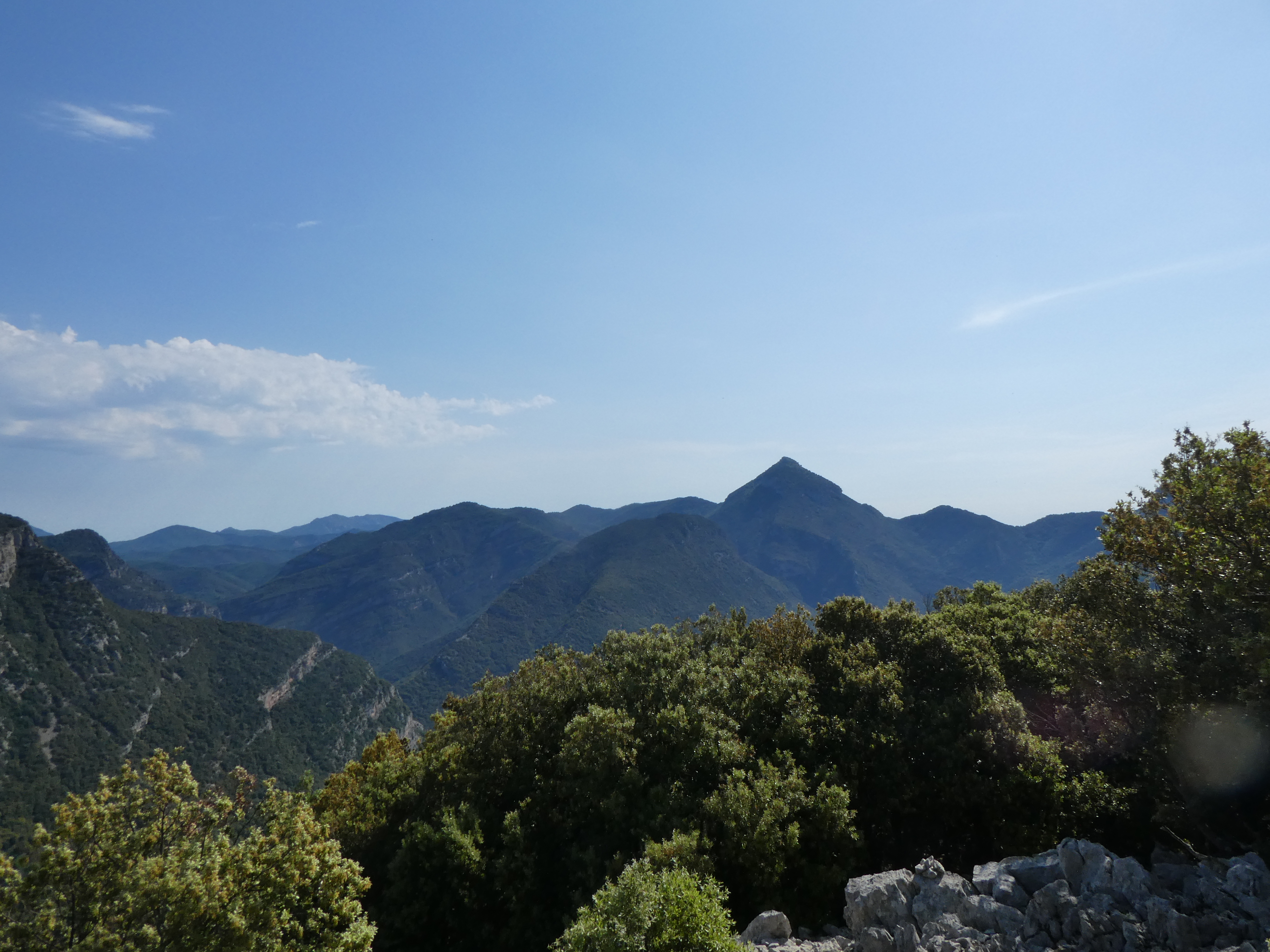 Zoom sur le Puig Cubell (1485 m) à gauche et le Puig de la Bicoca (1445 m) à droite
