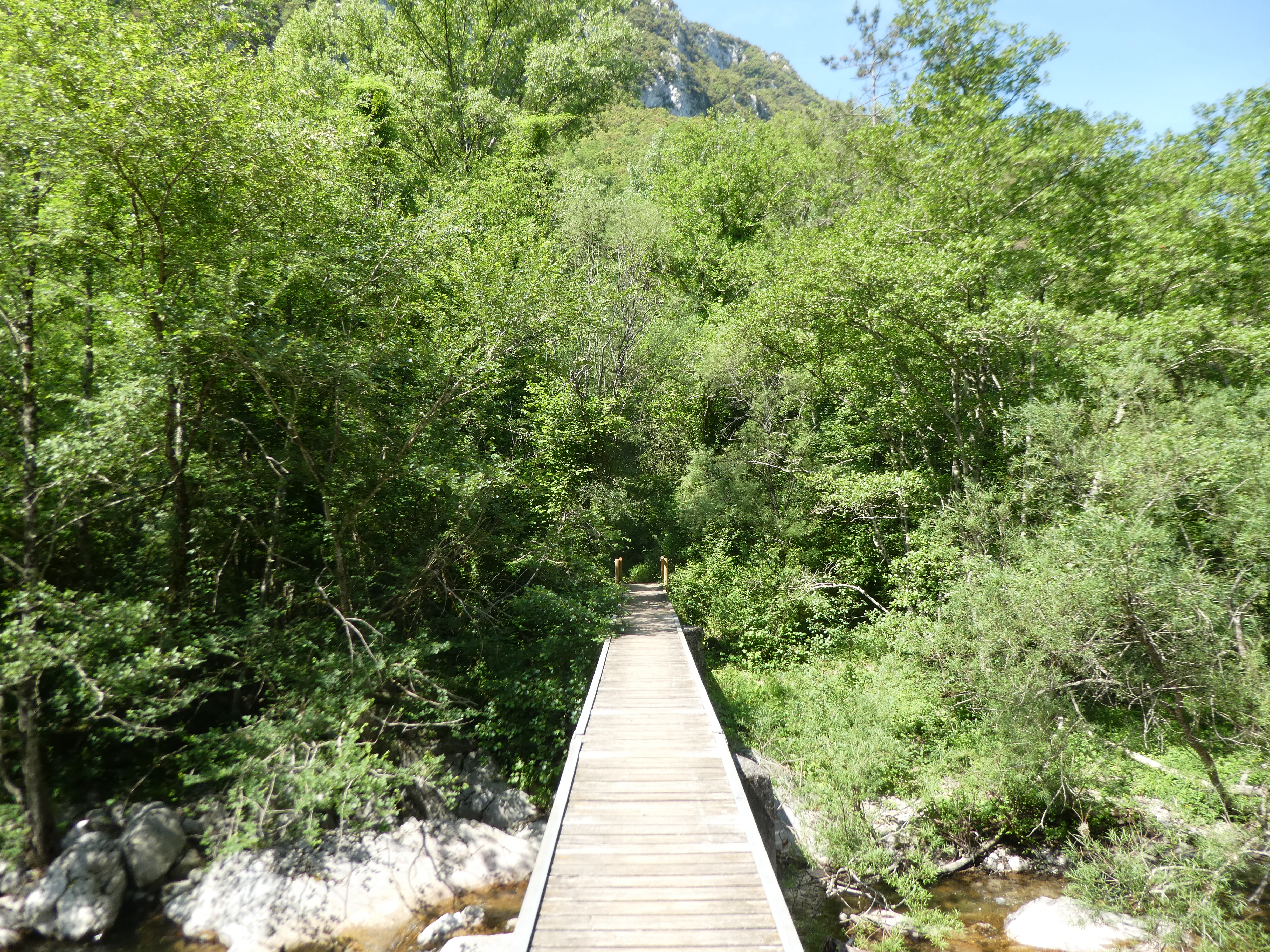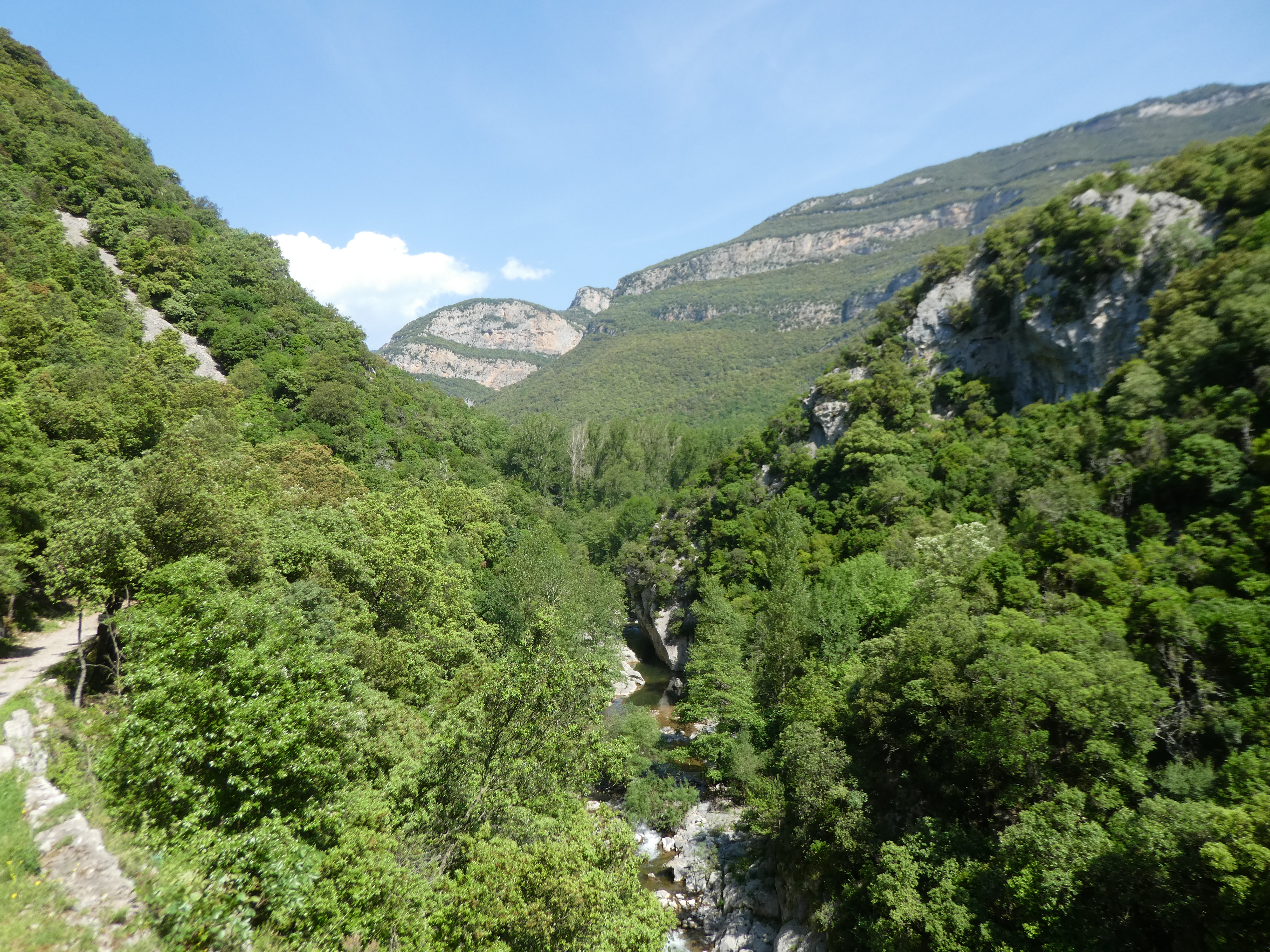Pont Trencat (375 m) : suivre la piste partant tout droit direction Oix, balisé en jaune