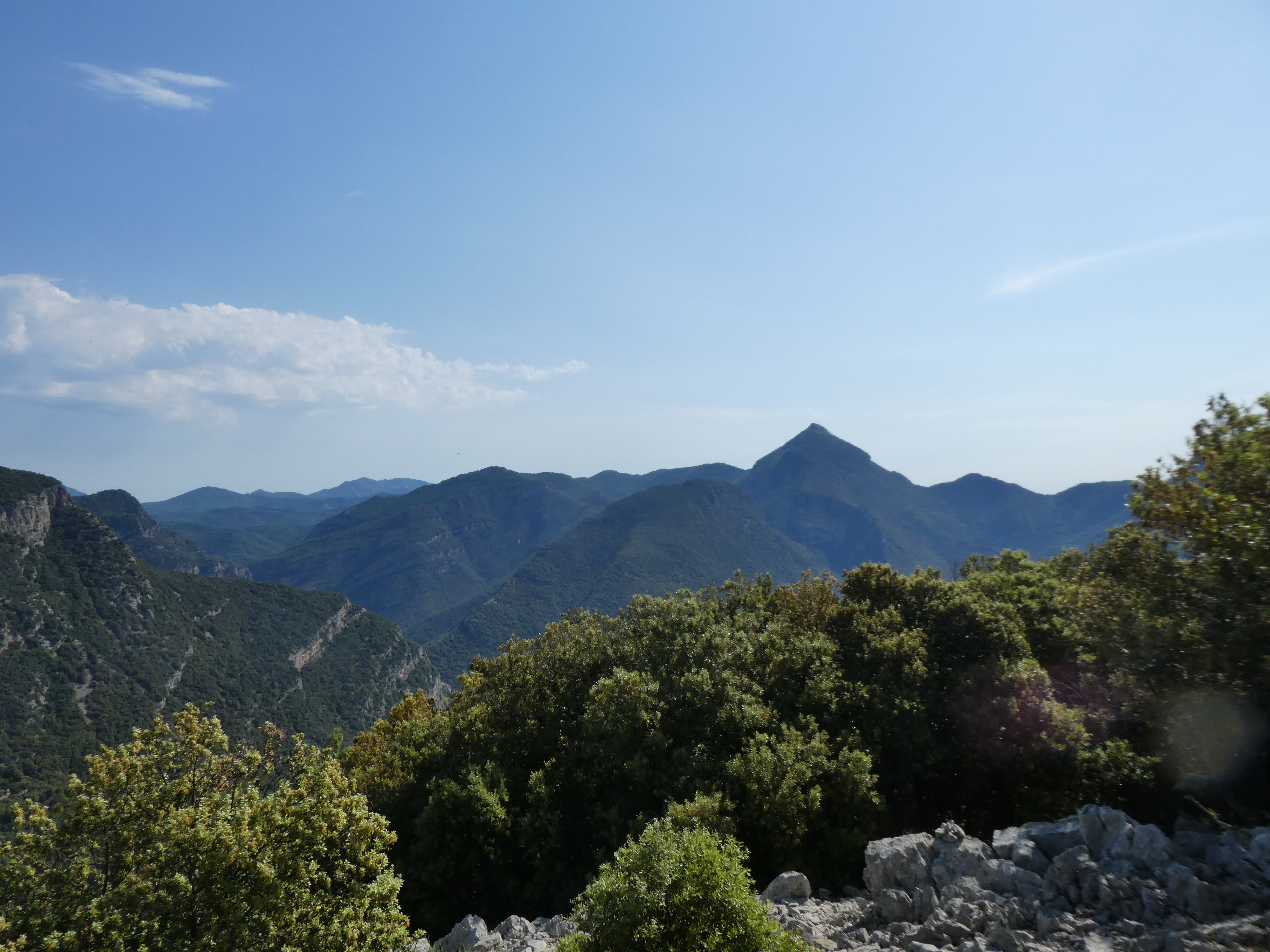 Vue au loin sur le massif de Cabrera et du Puigsacalm