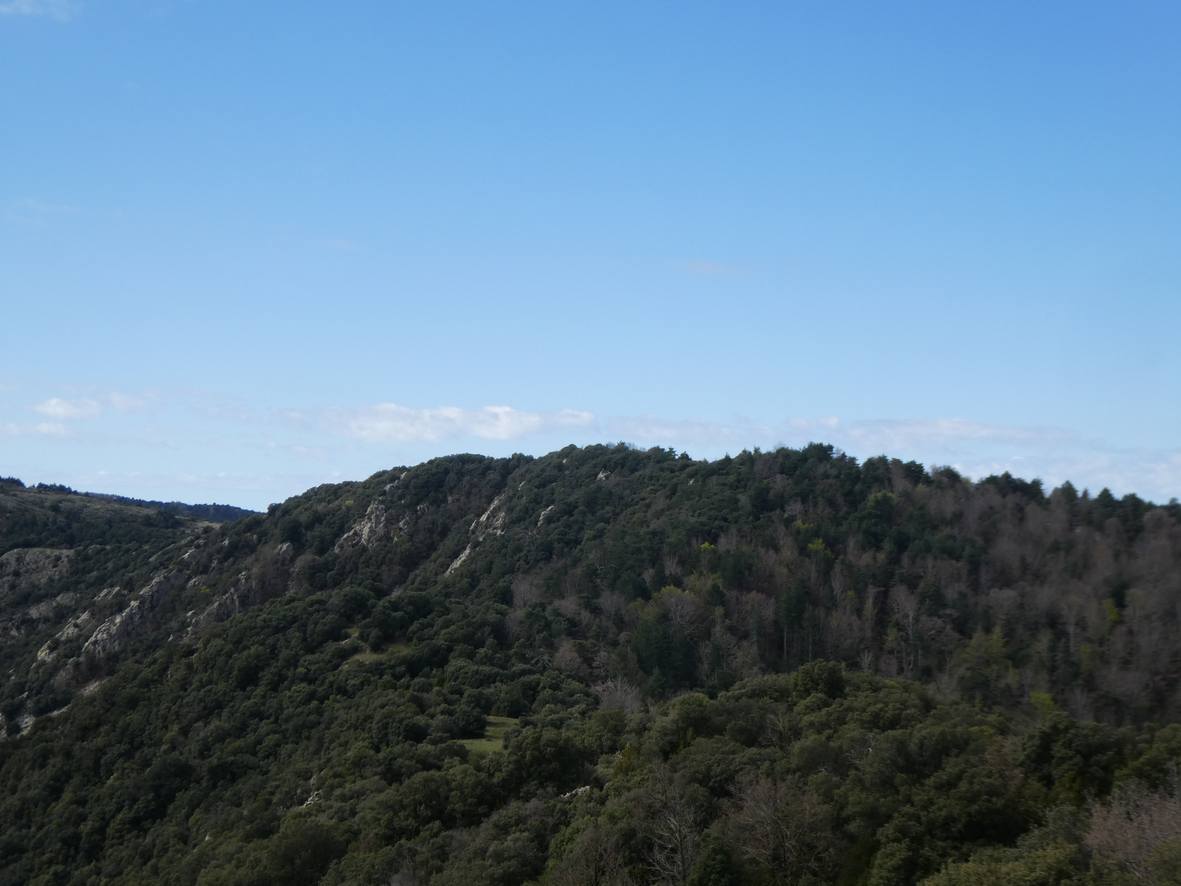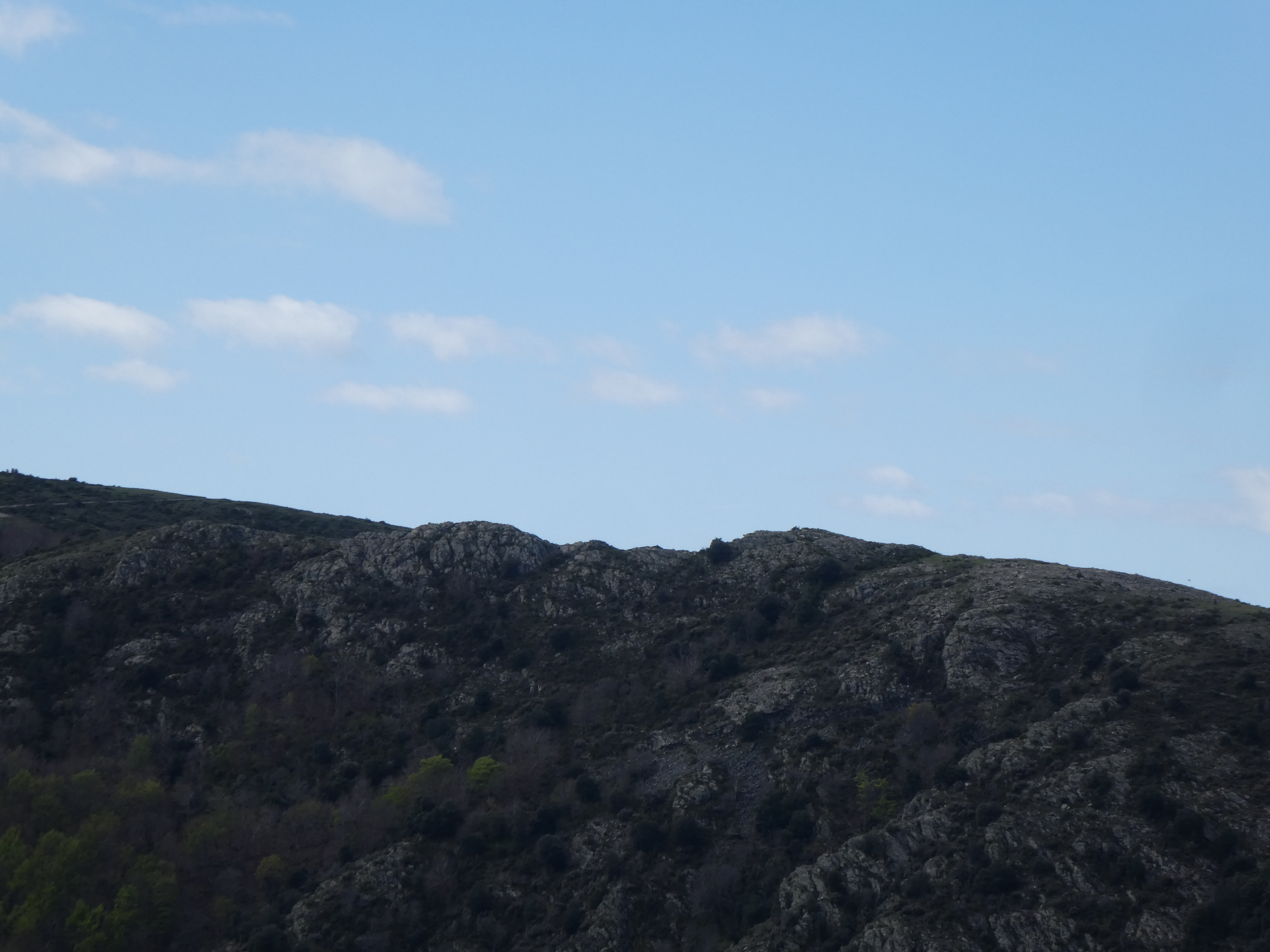 Zoom sur le Puig d'Arques (532 m) à gauche et le Puig Aldric (421 m) à droite