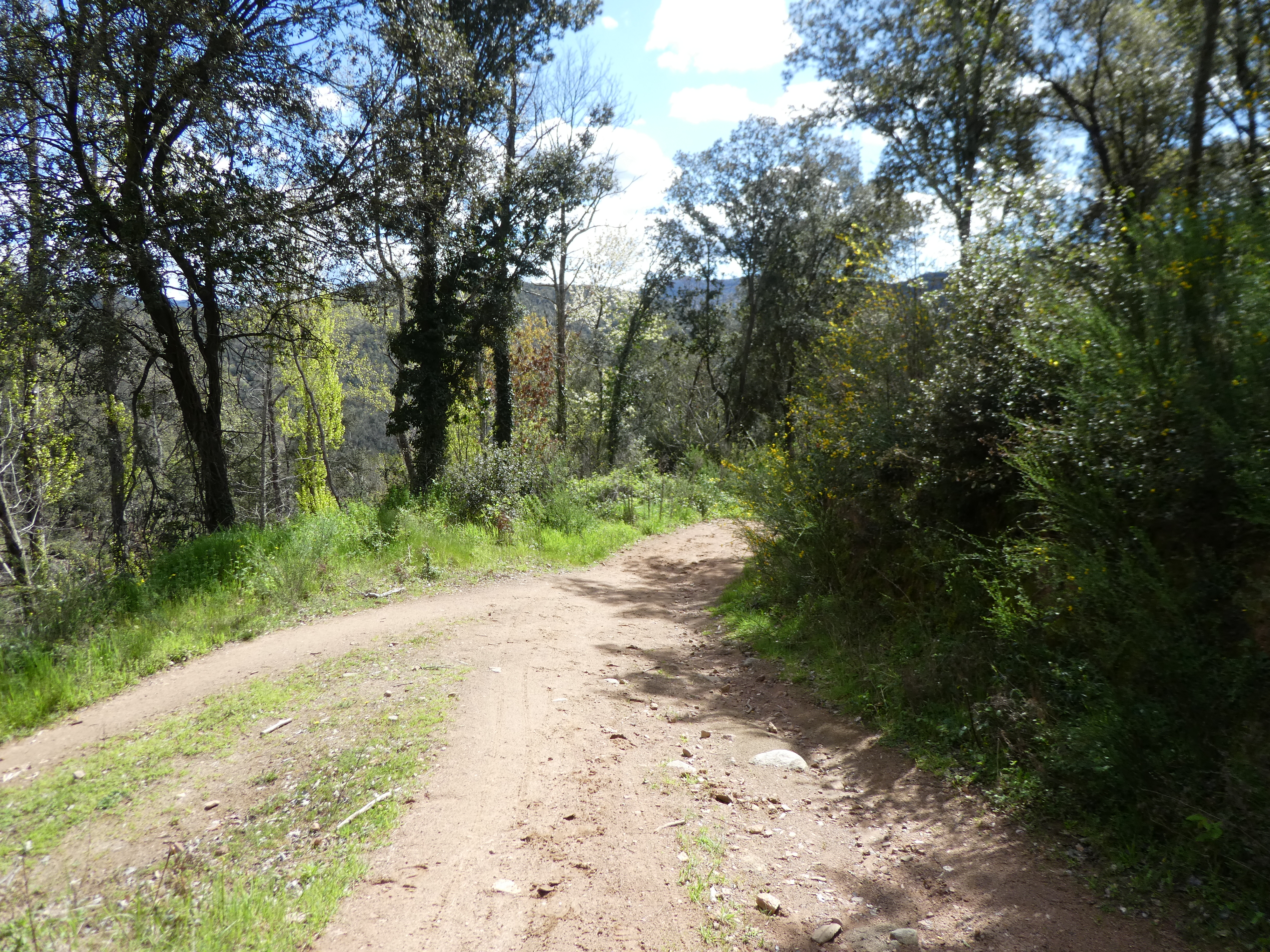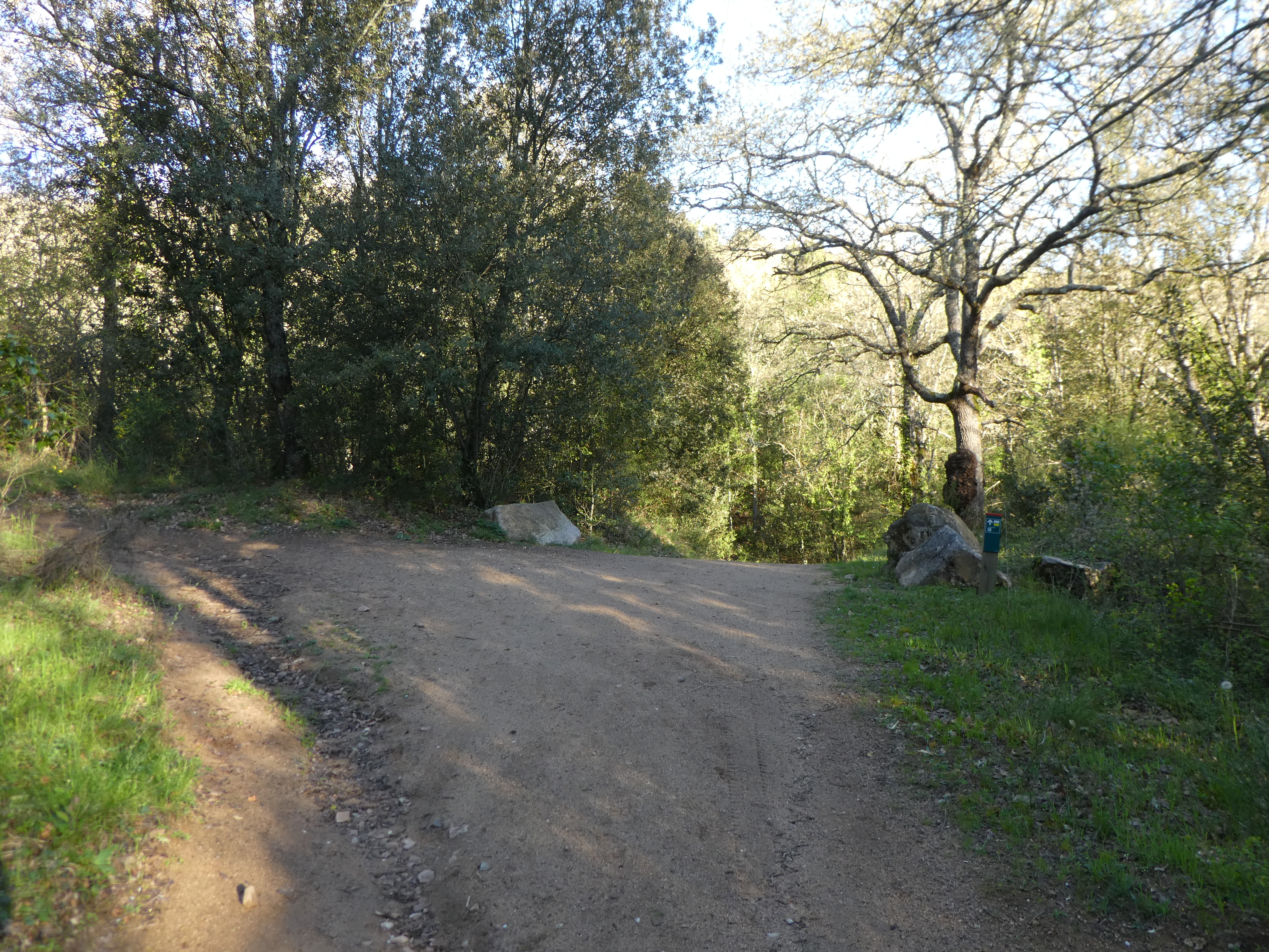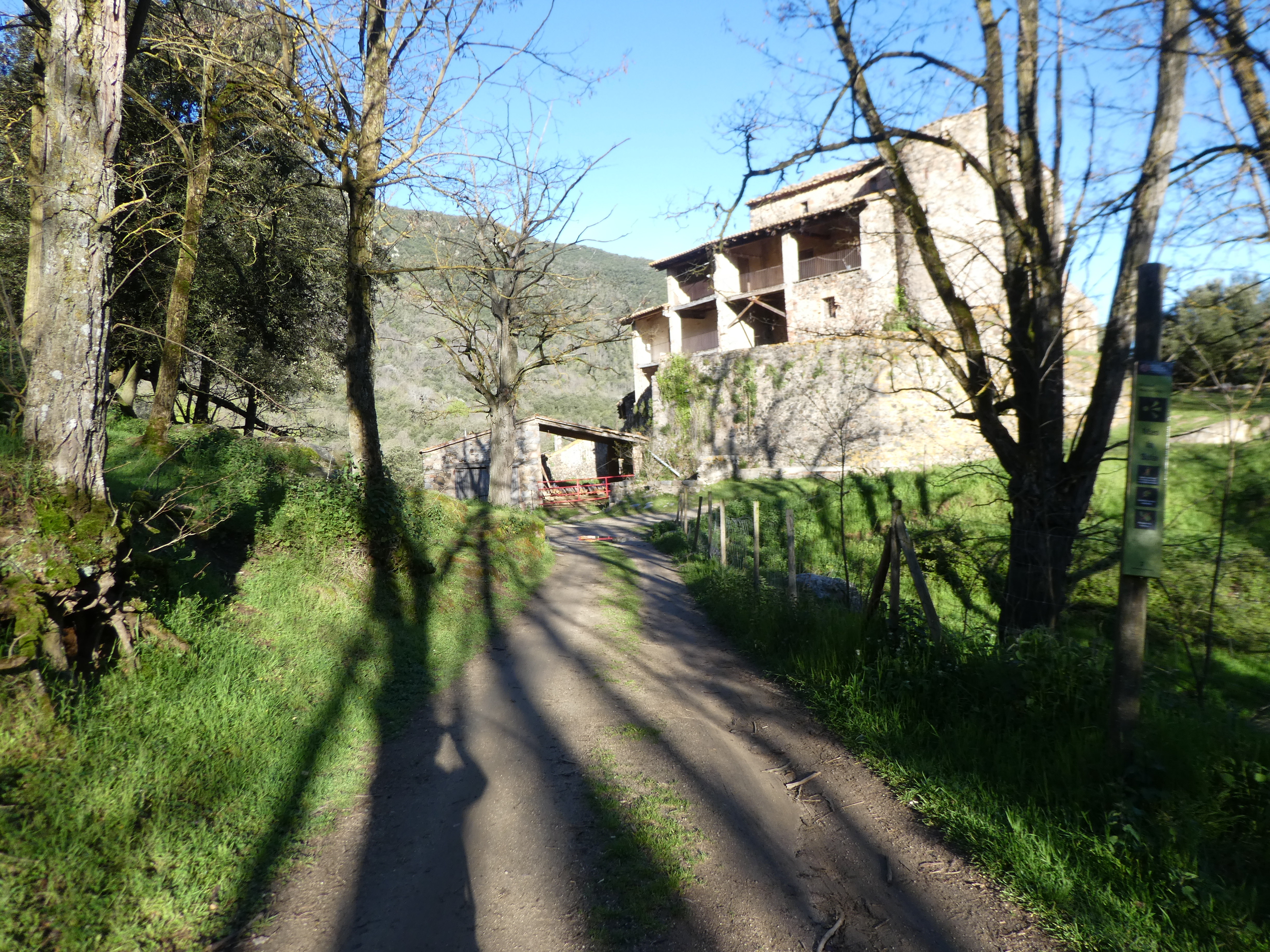 Mas la Sala (746 m) : suivre le chemin partant tout droit puis celui partant sur la droite quelques mètres plus loin et contournant la propriété du Mas la Sala direction Gorg Negre, aucun balisage dorénavant