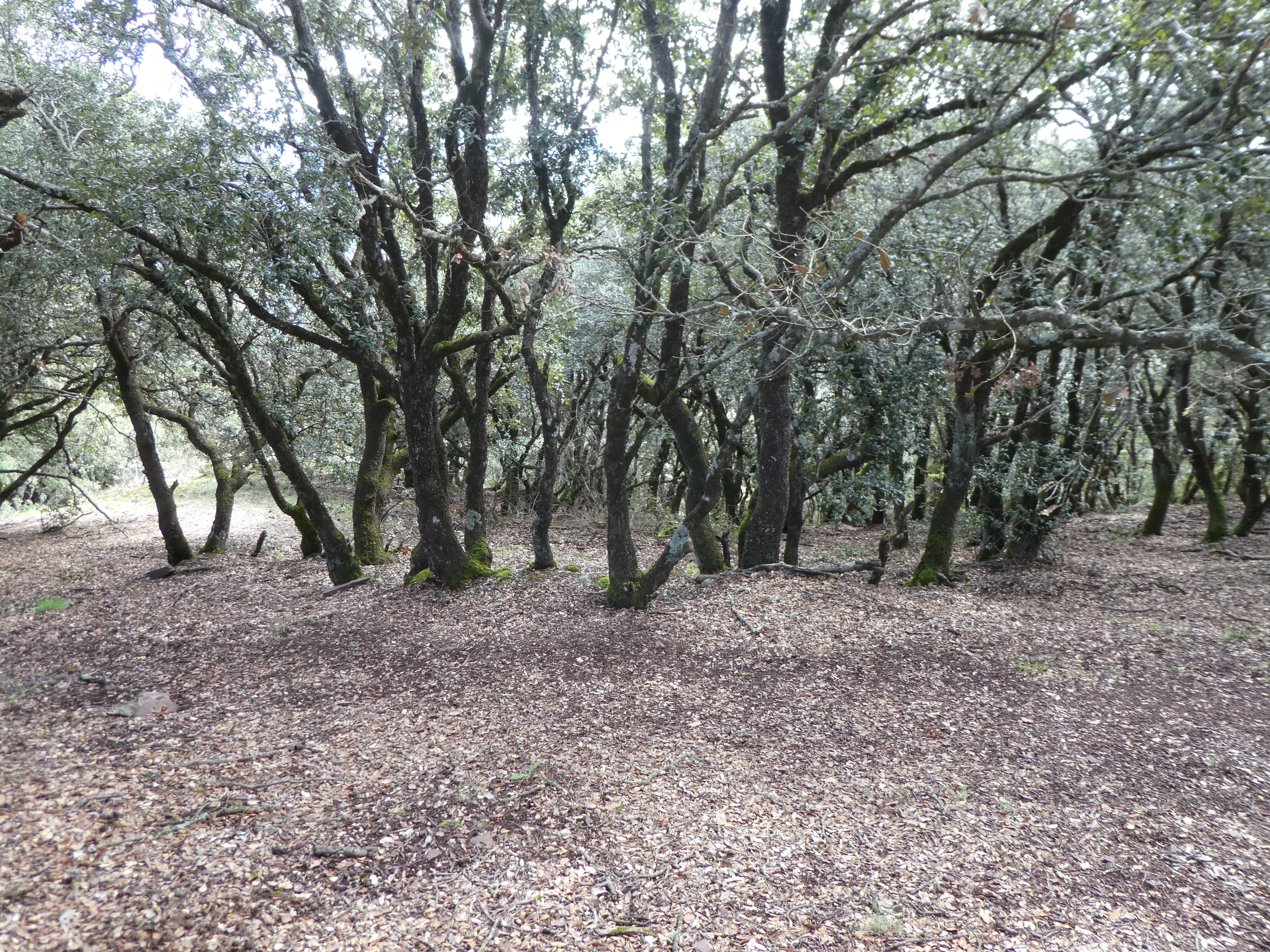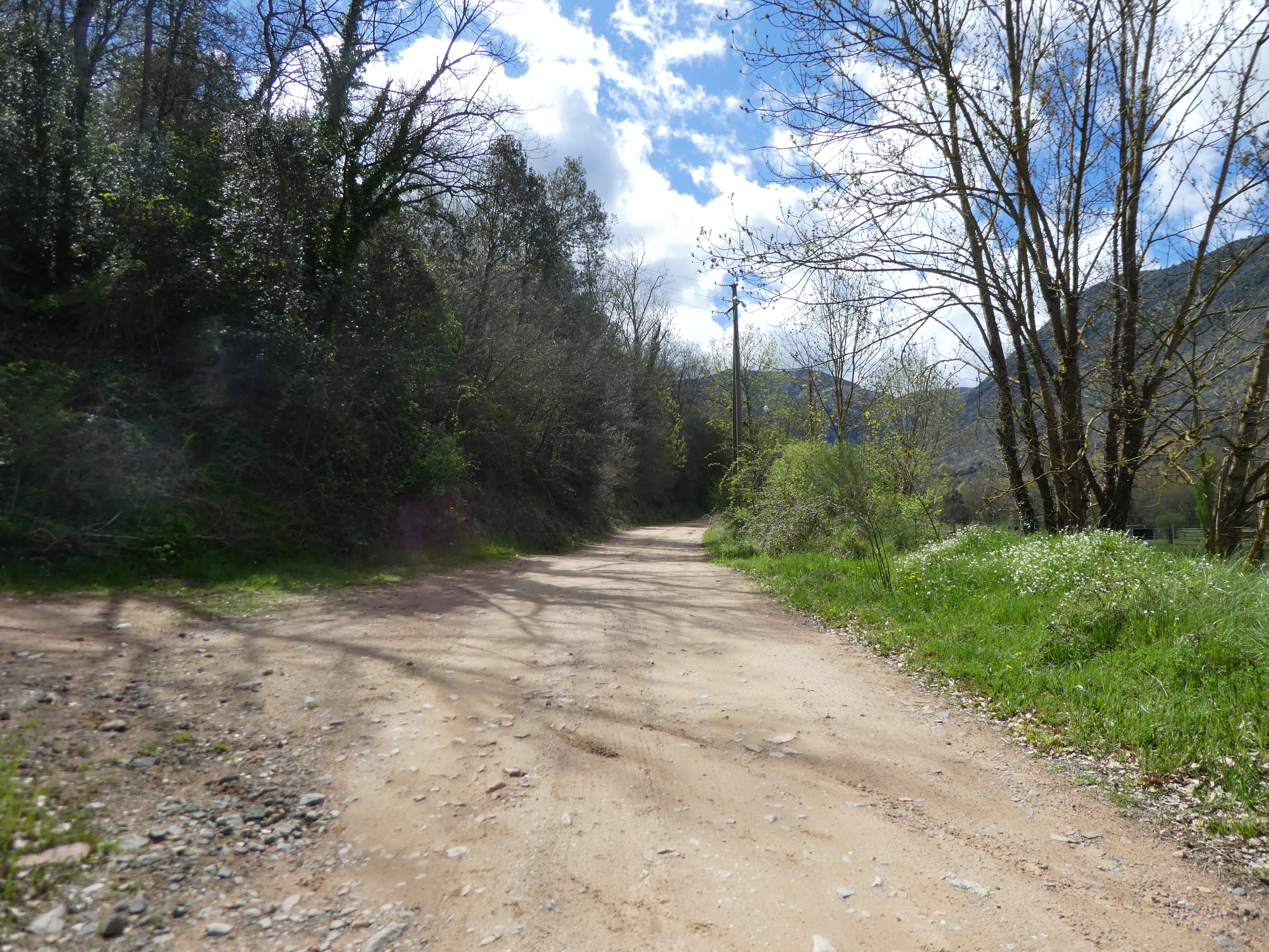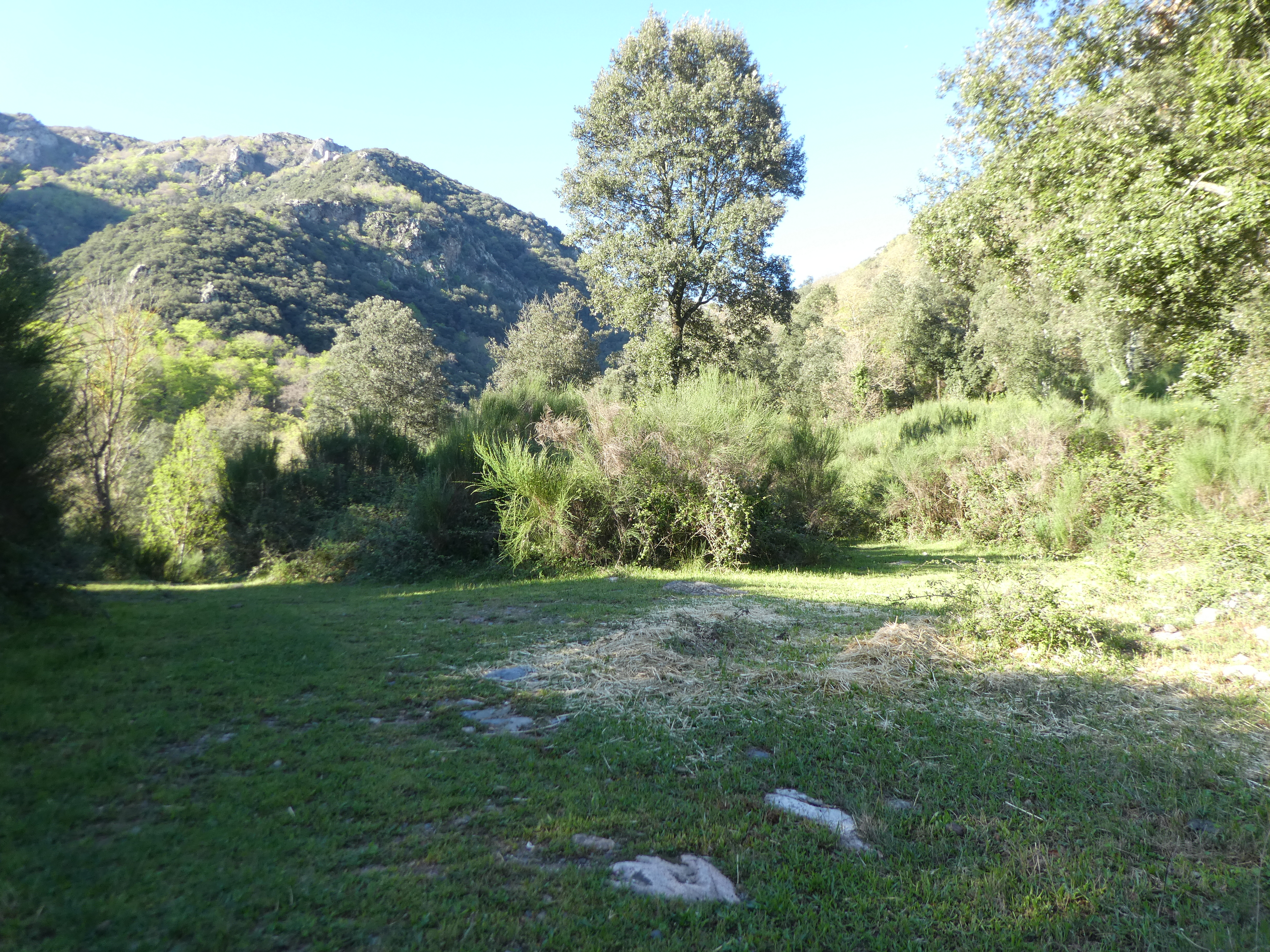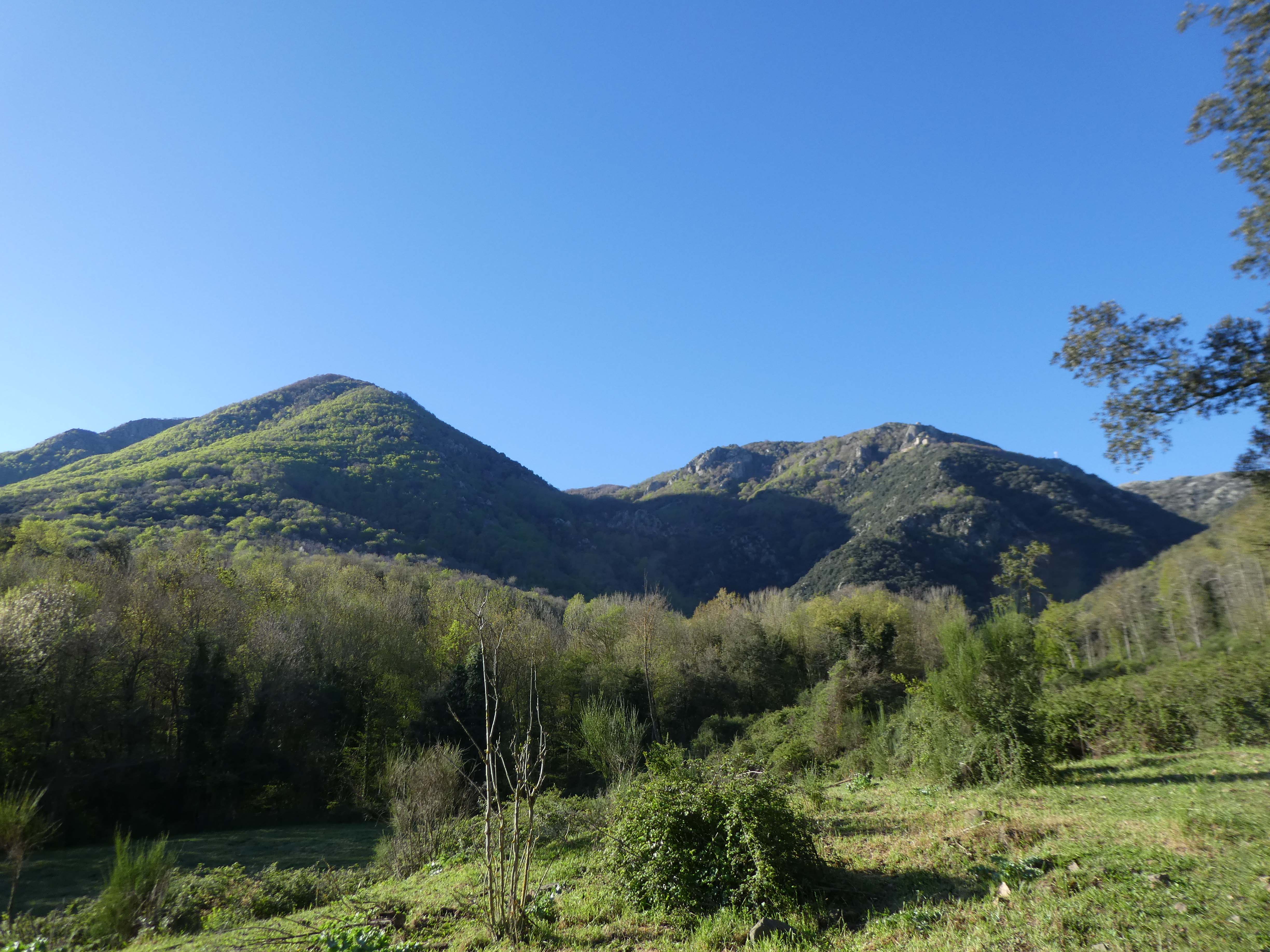 Mas la Sala (746 m) : suivre le chemin partant tout droit puis celui partant sur la droite quelques mètres plus loin et contournant la propriété du Mas la Sala direction Gorg Negre, aucun balisage dorénavant