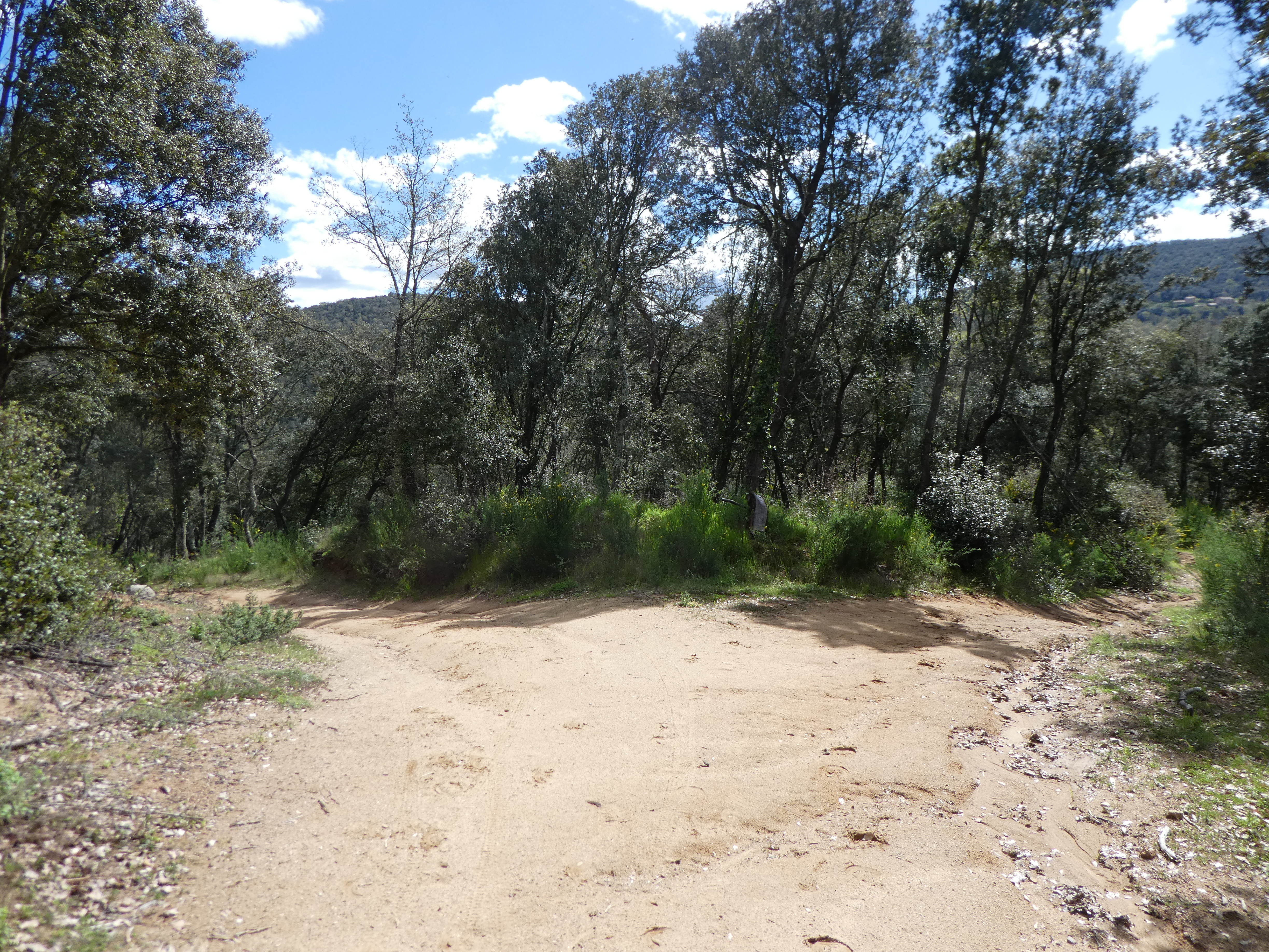 A ce croisement peu marqué avec le chemin menant au Serrat de l'Oriol (800 mètres après avoir quitté le Turó del Pou d'en Sala), suivre ce dernier partant sur la gauche direction Serrat de l'Oriol