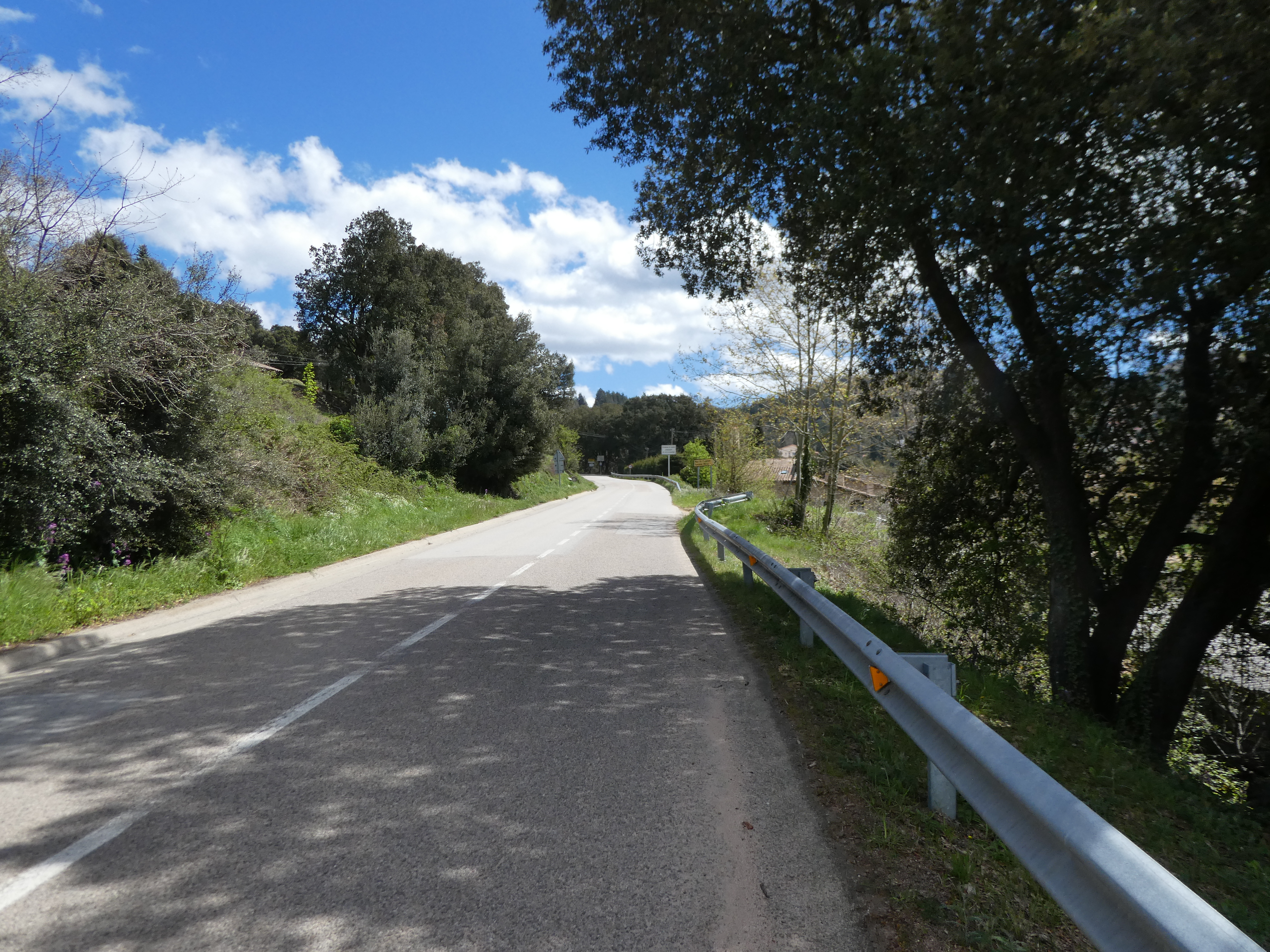 A ce croisement avec la route menant à la GI-520 (50 mètres après le précédent rond-point), suivre cette dernière partant sur la droite puis la GI-520 partant tout droit 25 mètres plus loin direction Viladrau