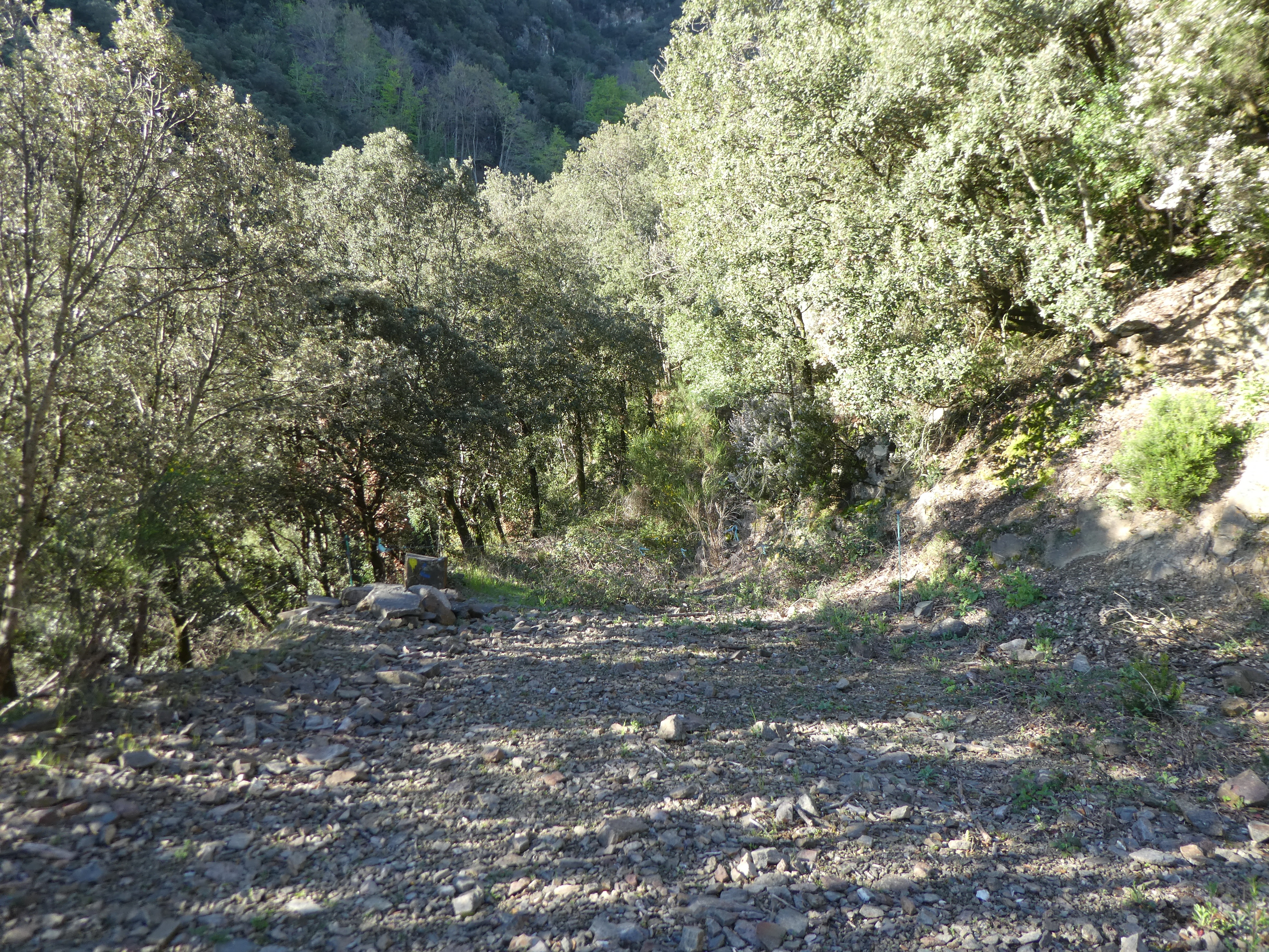 A ce croisement avec le chemin menant au Turó de la Terma d'en Planes (200 mètres après le Collet de Sant Miquel), suivre ce dernier partant sur la droite direction Turó de la Terma d'en Planes, aucun balisage dorénavant