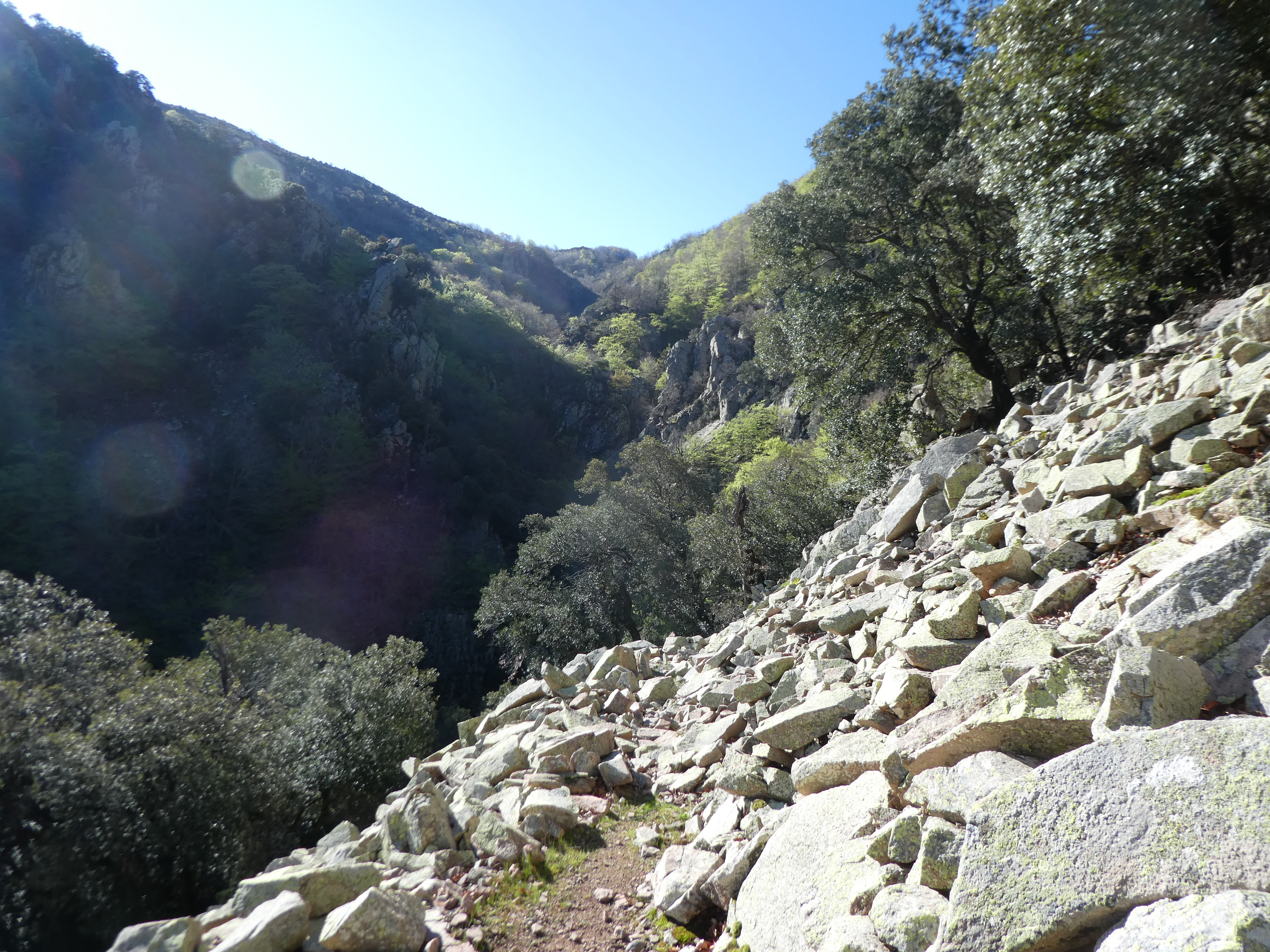 A ce croisement avec le sentier menant au Gorg Negre (300 mètres après le précédent), suivre ce dernier partant tout droit pour faire un court aller-retour vers la cascade direction Gorg Negre, aucun balisage dorénavant (attention, descente raide et glissante si terrain humide)