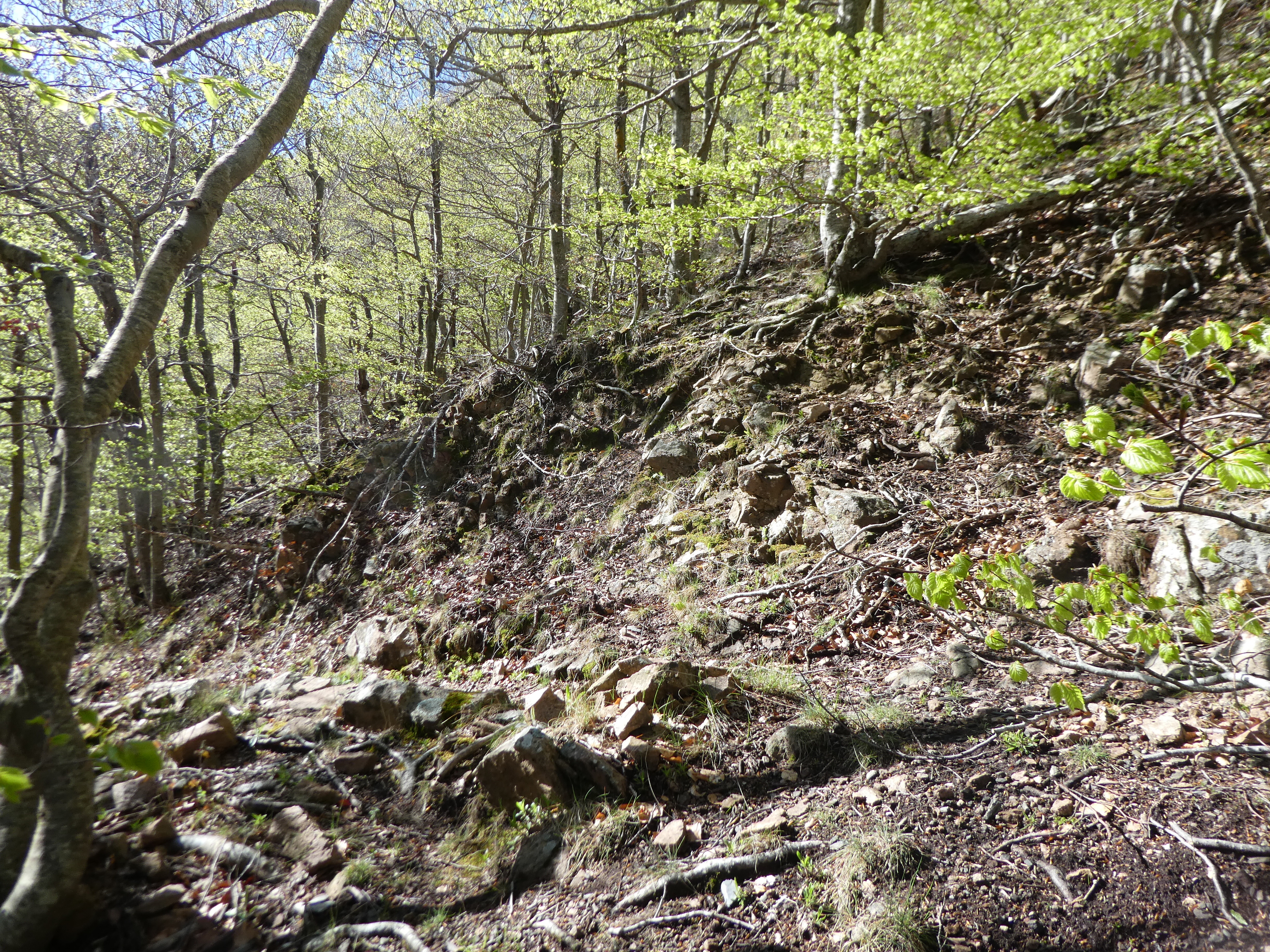 - Descente raide sur le sentier menant au Gorg Negre (peut devenir glissante si terrain humide !)