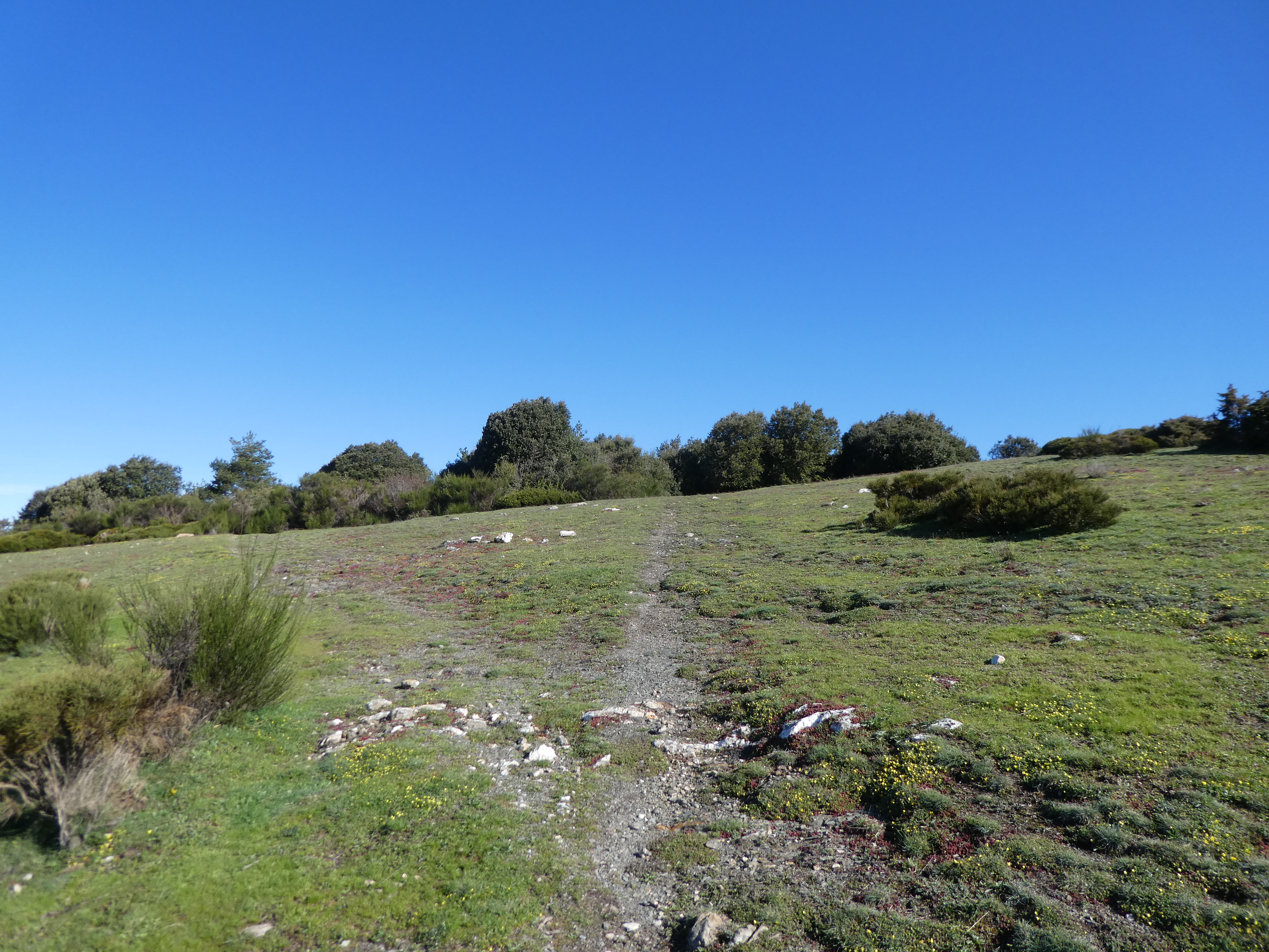 Le sentier mal tracé menant au Turó de les Queredes passant au plus près de la ligne de crête
