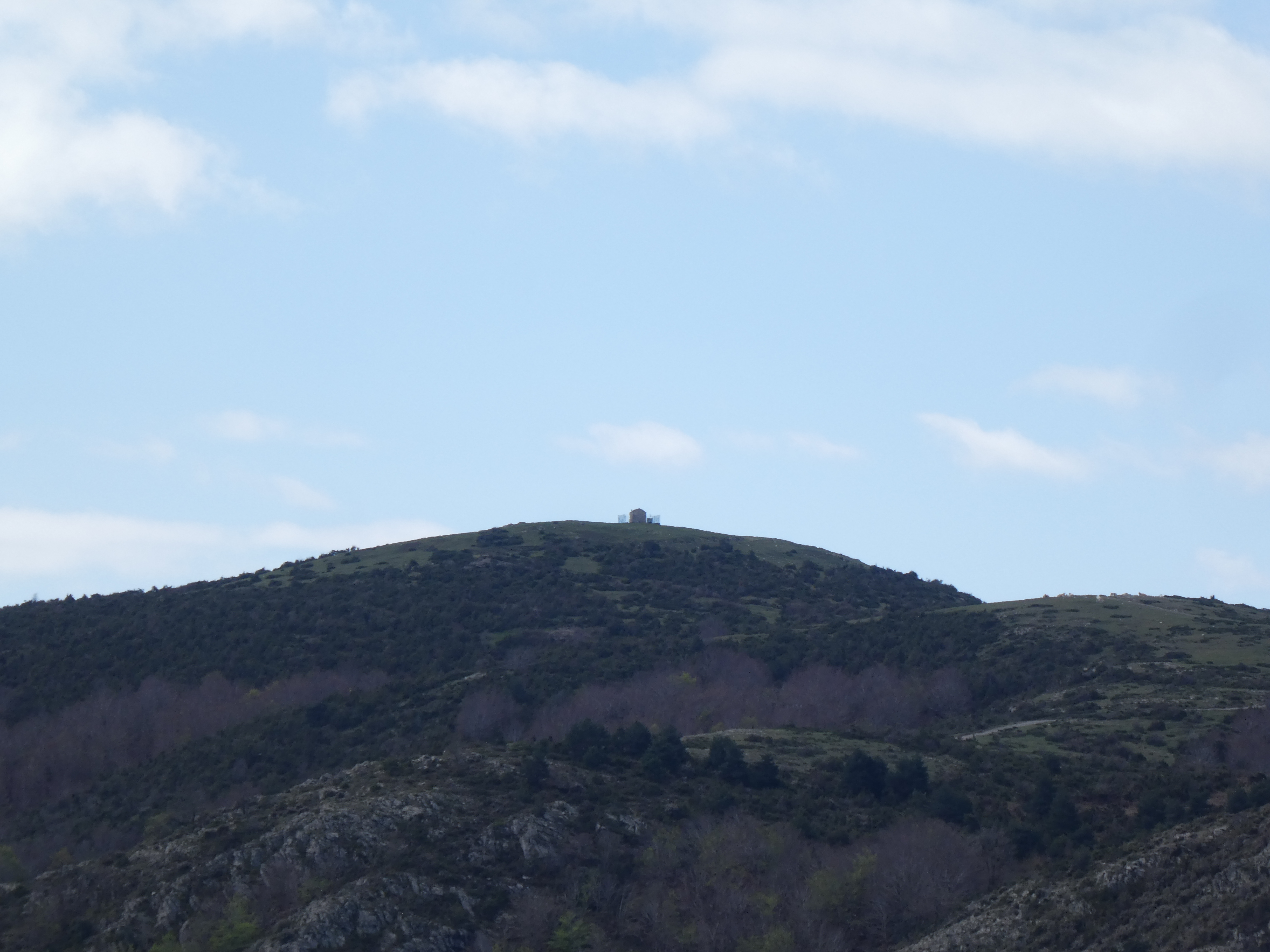 Zoom sur la Mare de Déu del Mont (1124 m) à gauche et le Puig Neulós (1256 m) à droite