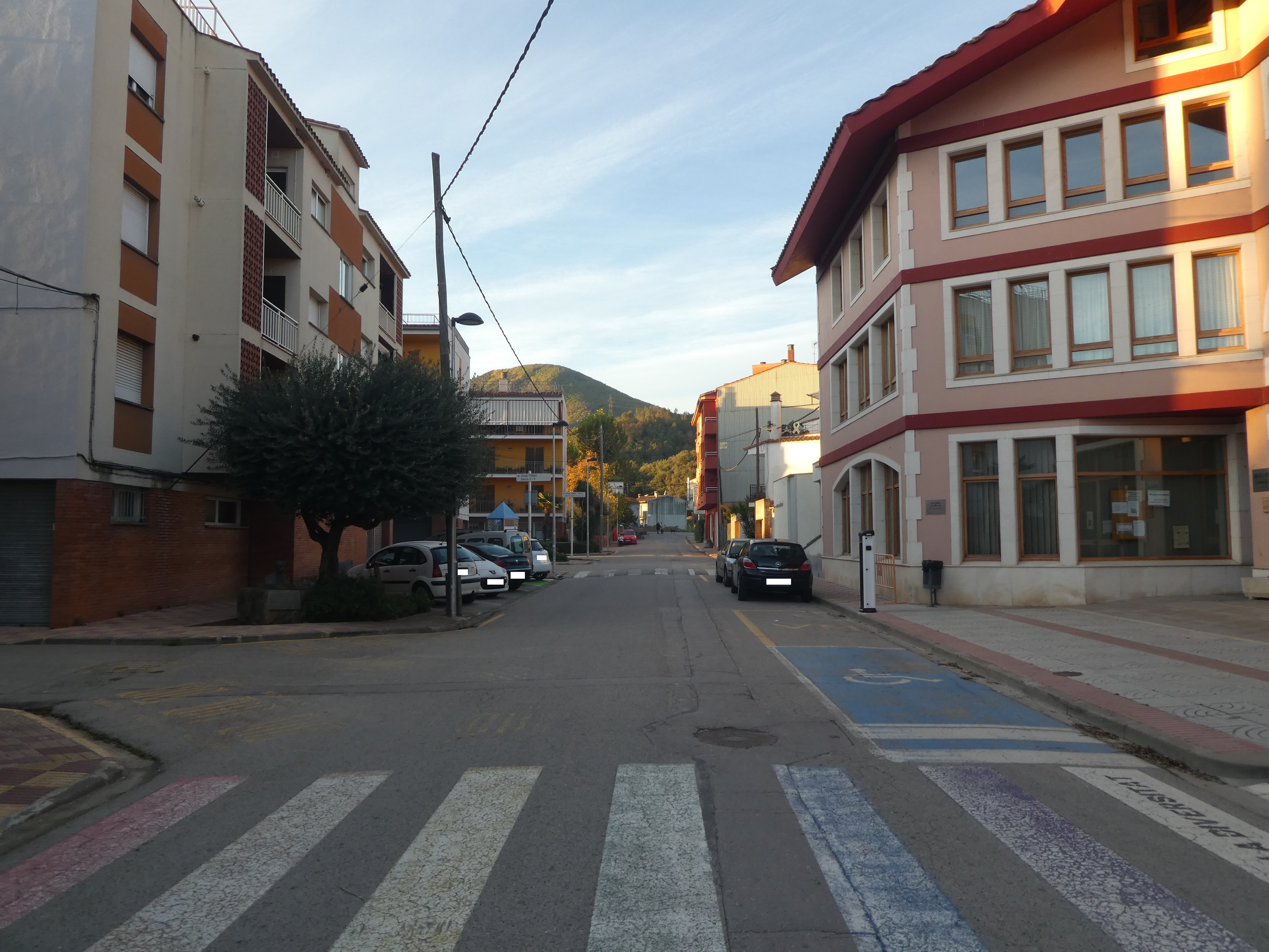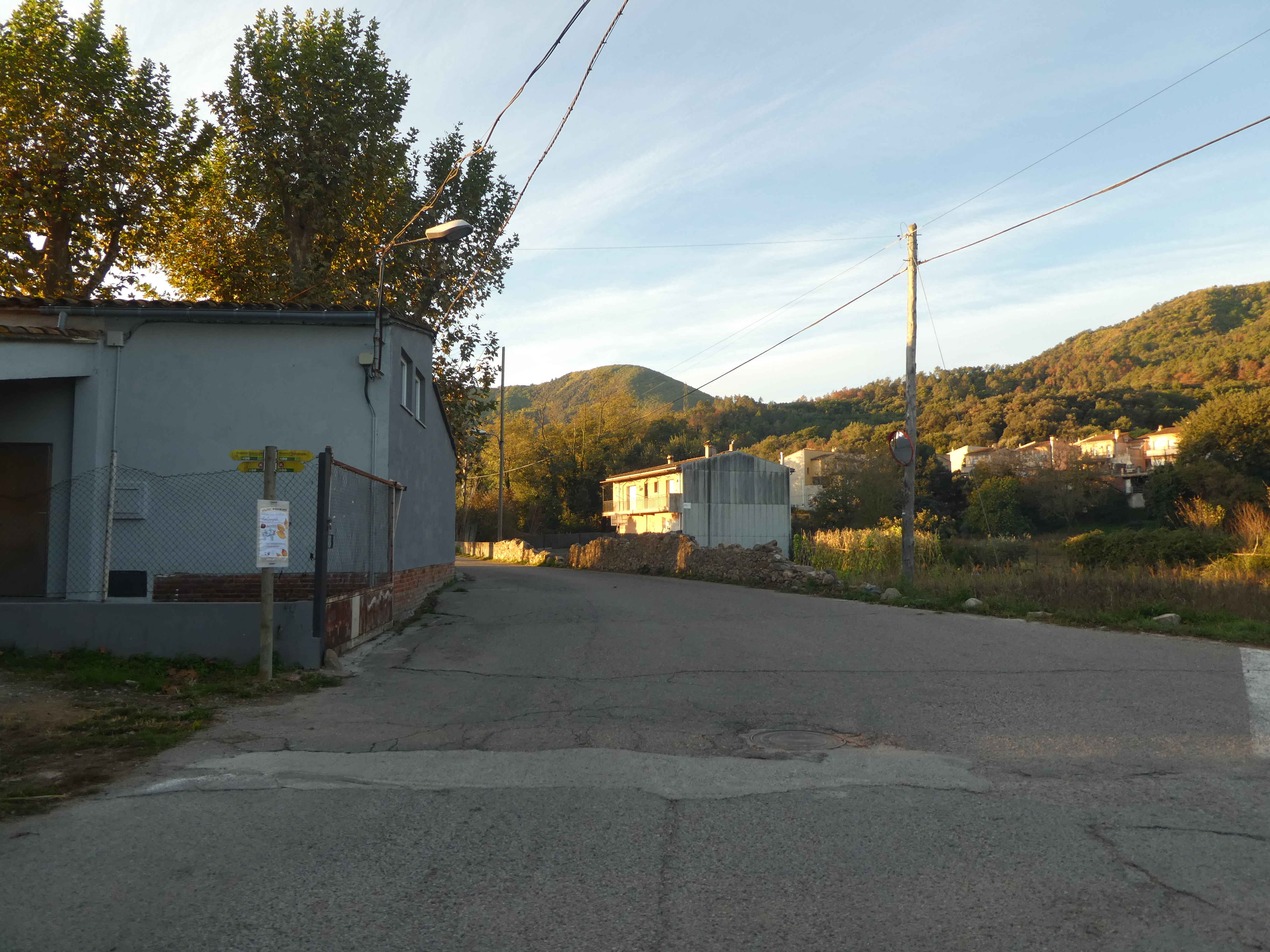 A cette intersection avec la rue venant de la mairie de la Cellera de Ter (300 mètres après la précédente), suivre cette dernière sur la gauche direction la Cellera de Ter - Ajuntament, aucun balisage dorénavant