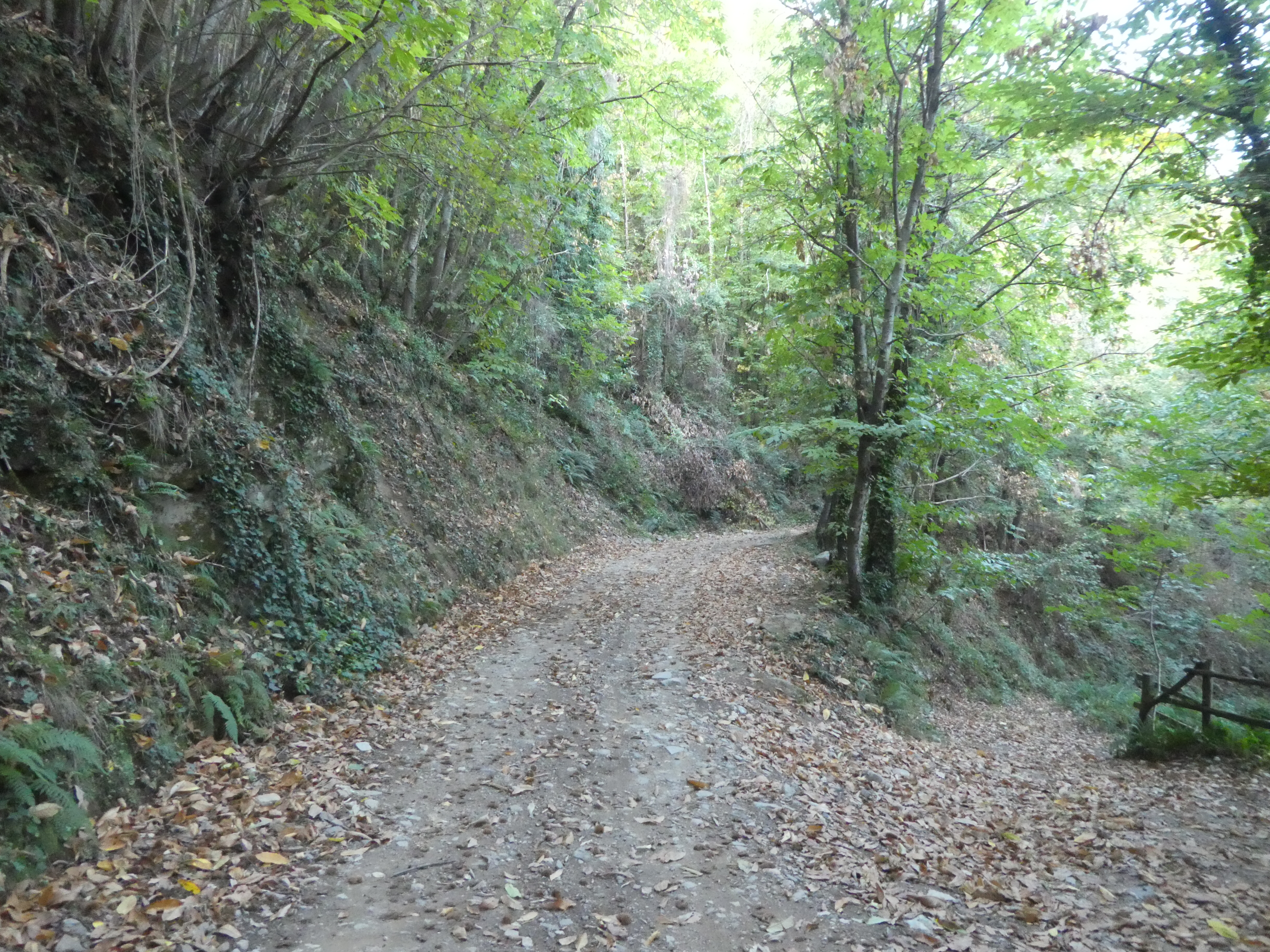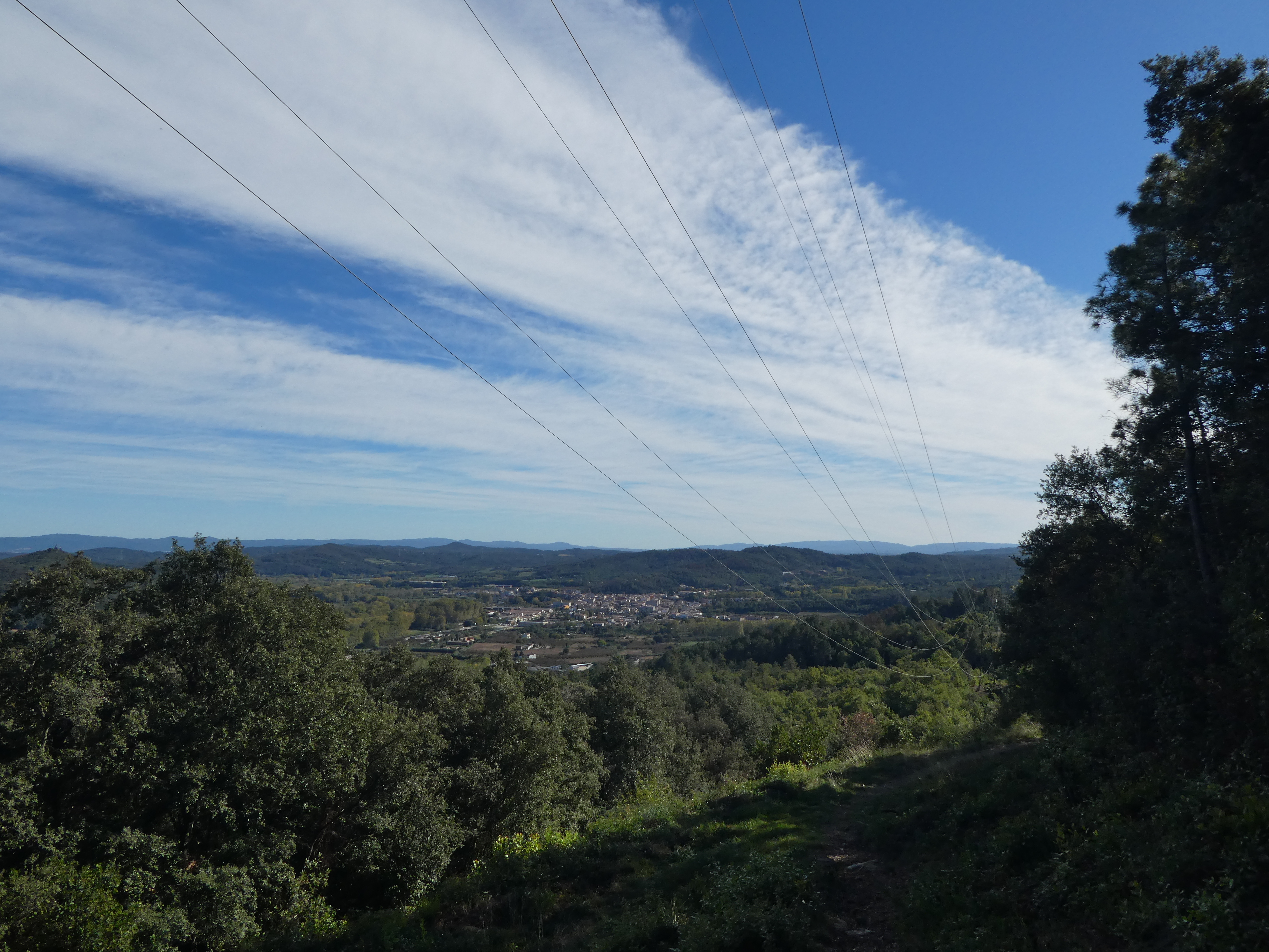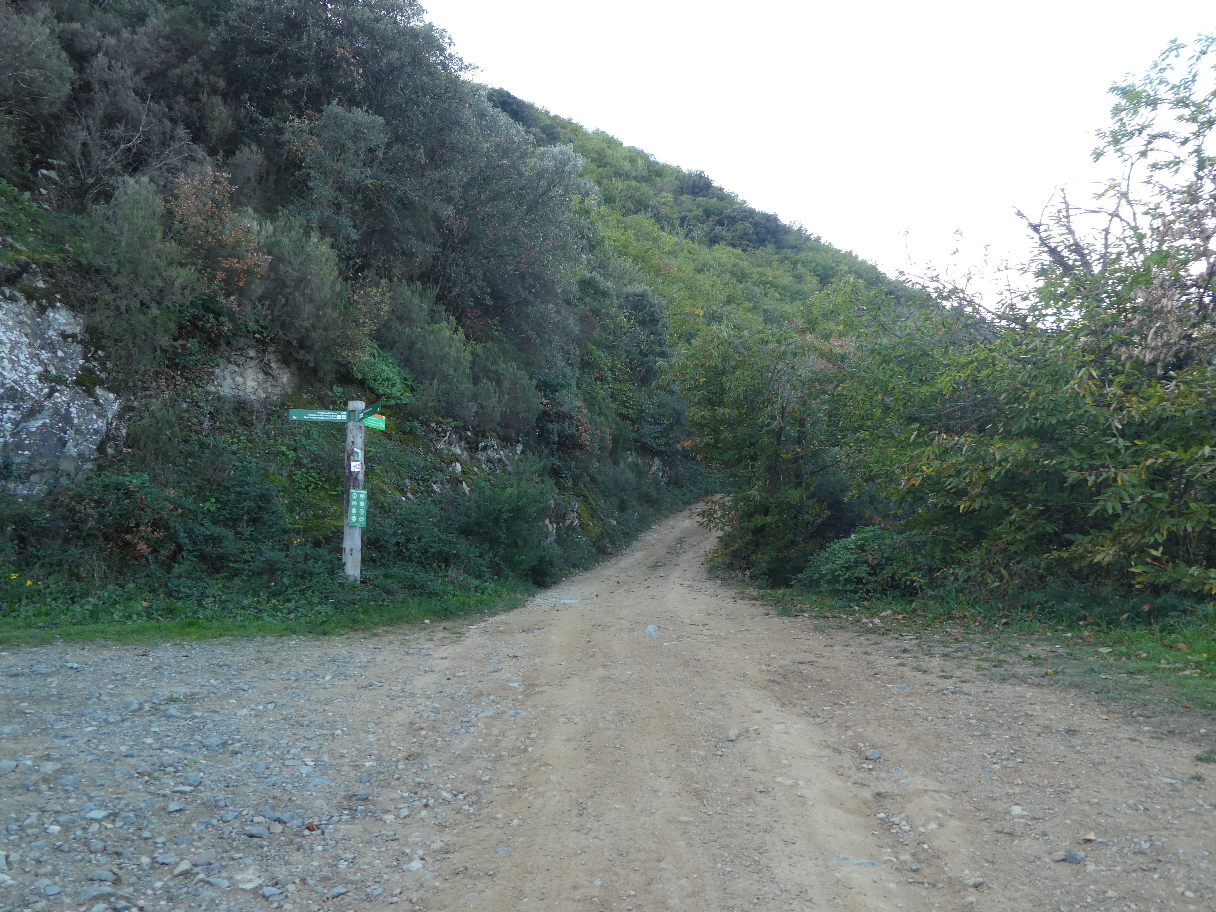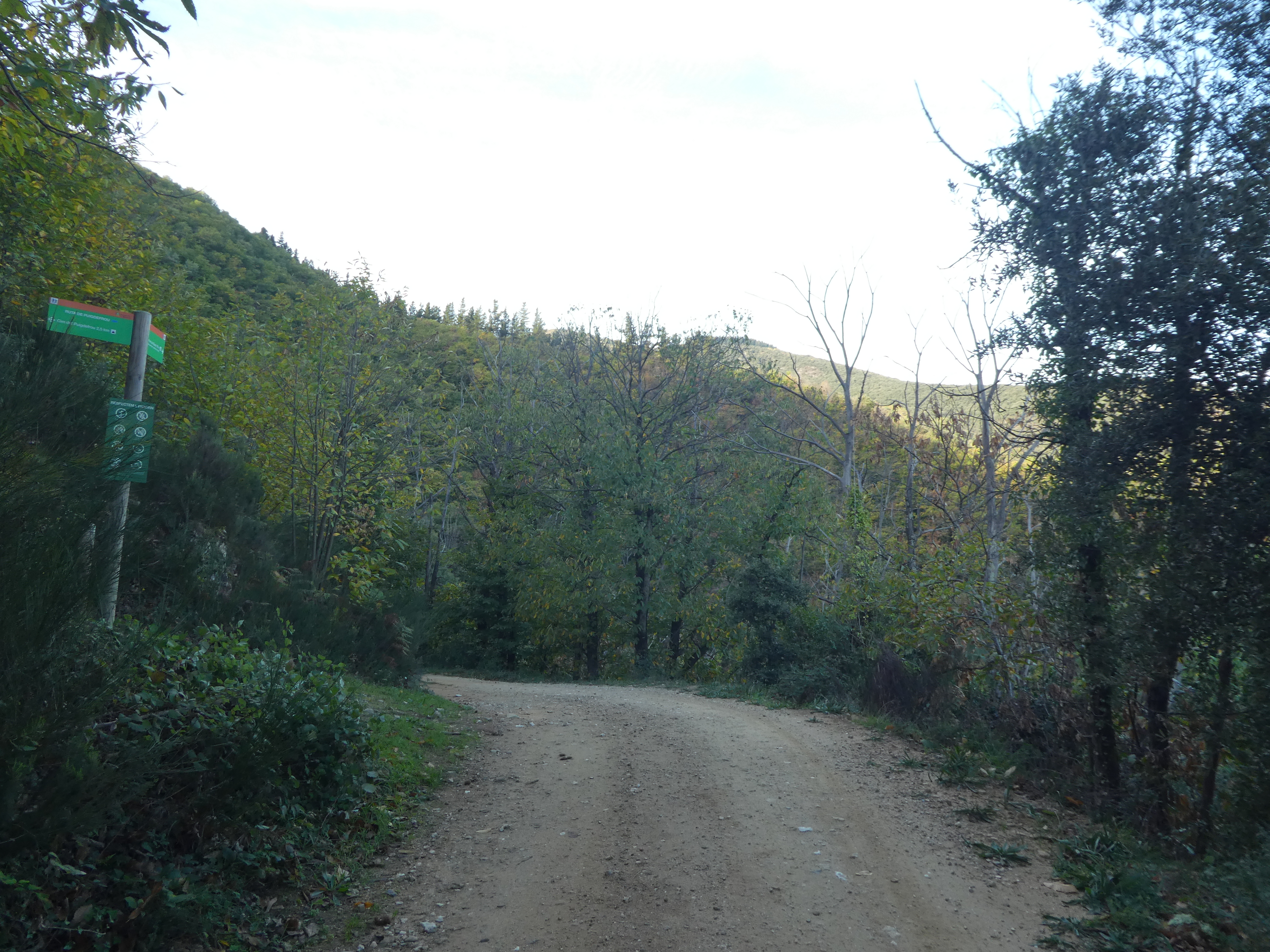 A ce croisement où le balisage vert et blanc se sépare de celui en bleu (200 mètres après le précédent), suivre le chemin descendant sur la gauche direction la Cellera de Ter, balisé uniquement en bleu dorénavant