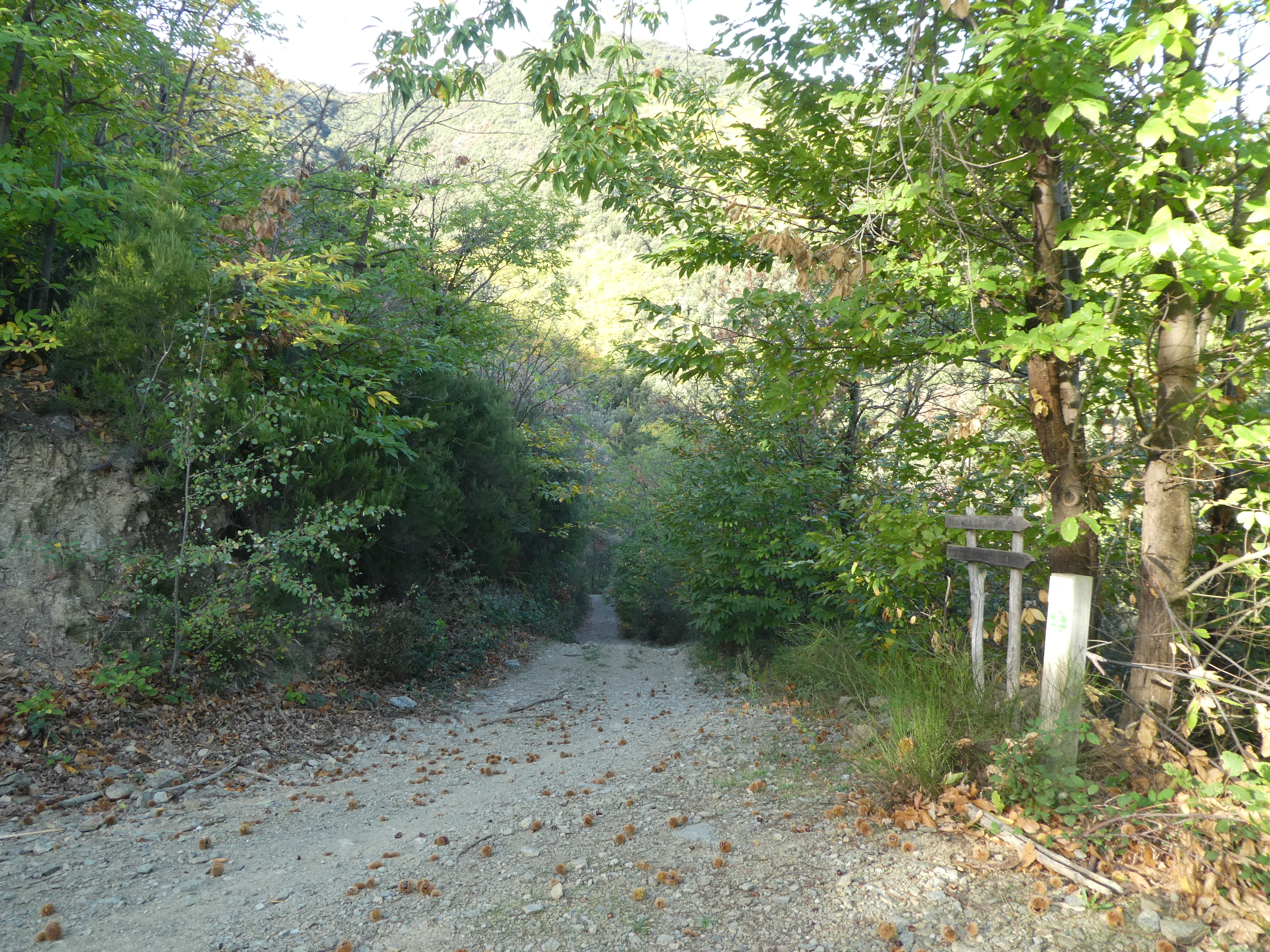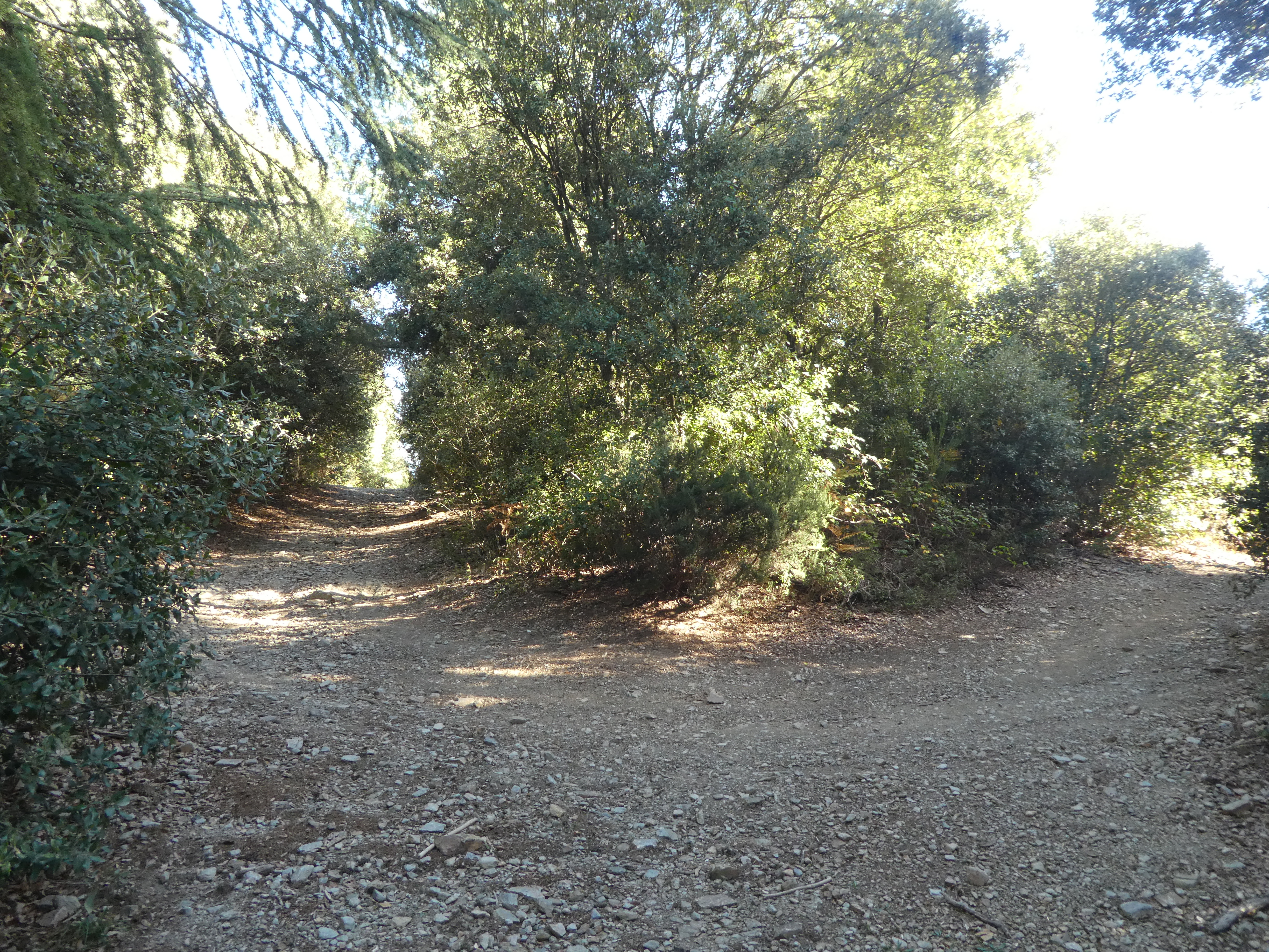 A ce croisement avec le sentier précédemment quitté (25 mètres après avoir quitté Sant Gregori), suivre ce dernier sur la droite direction Serra de Turonell