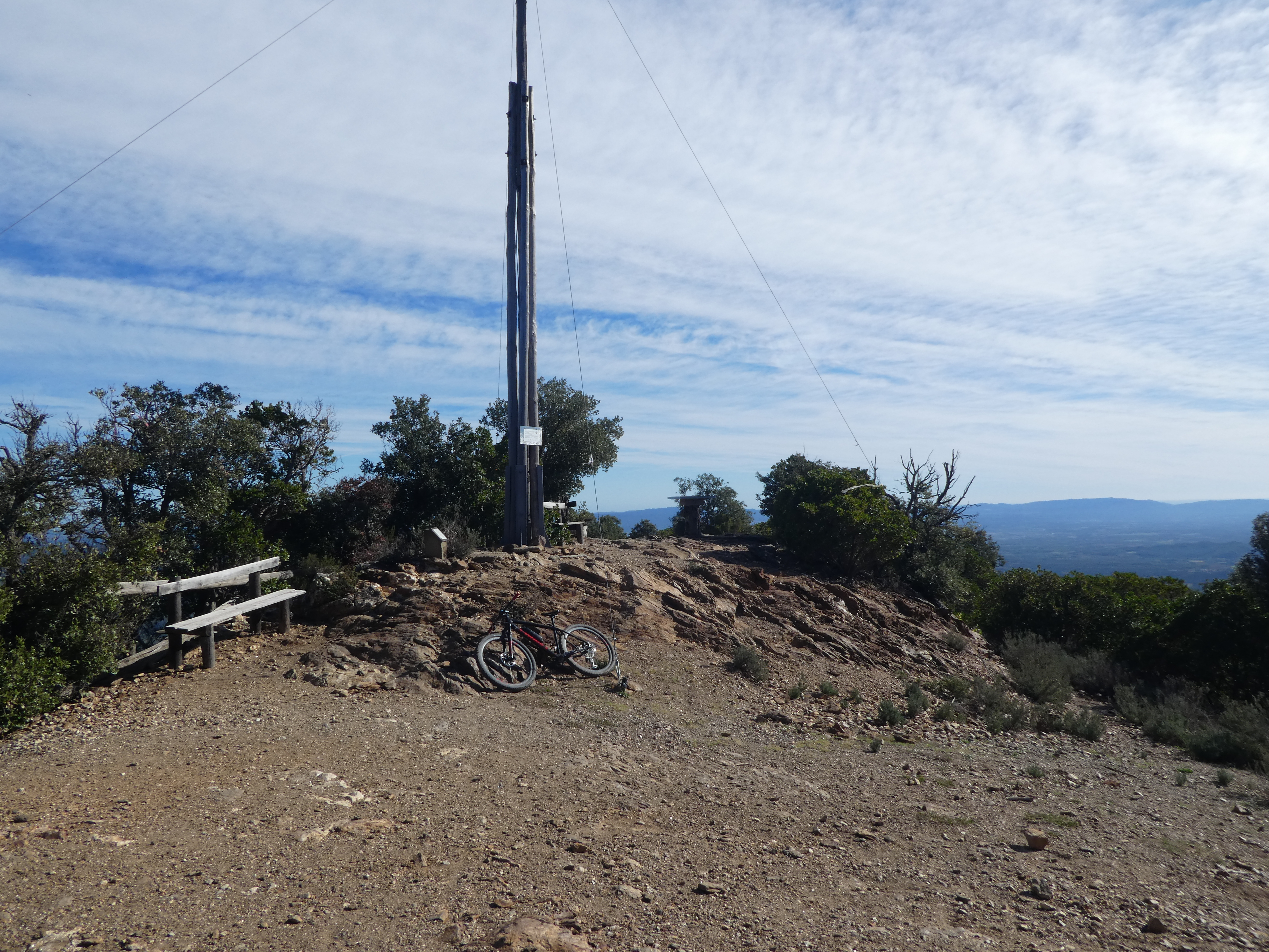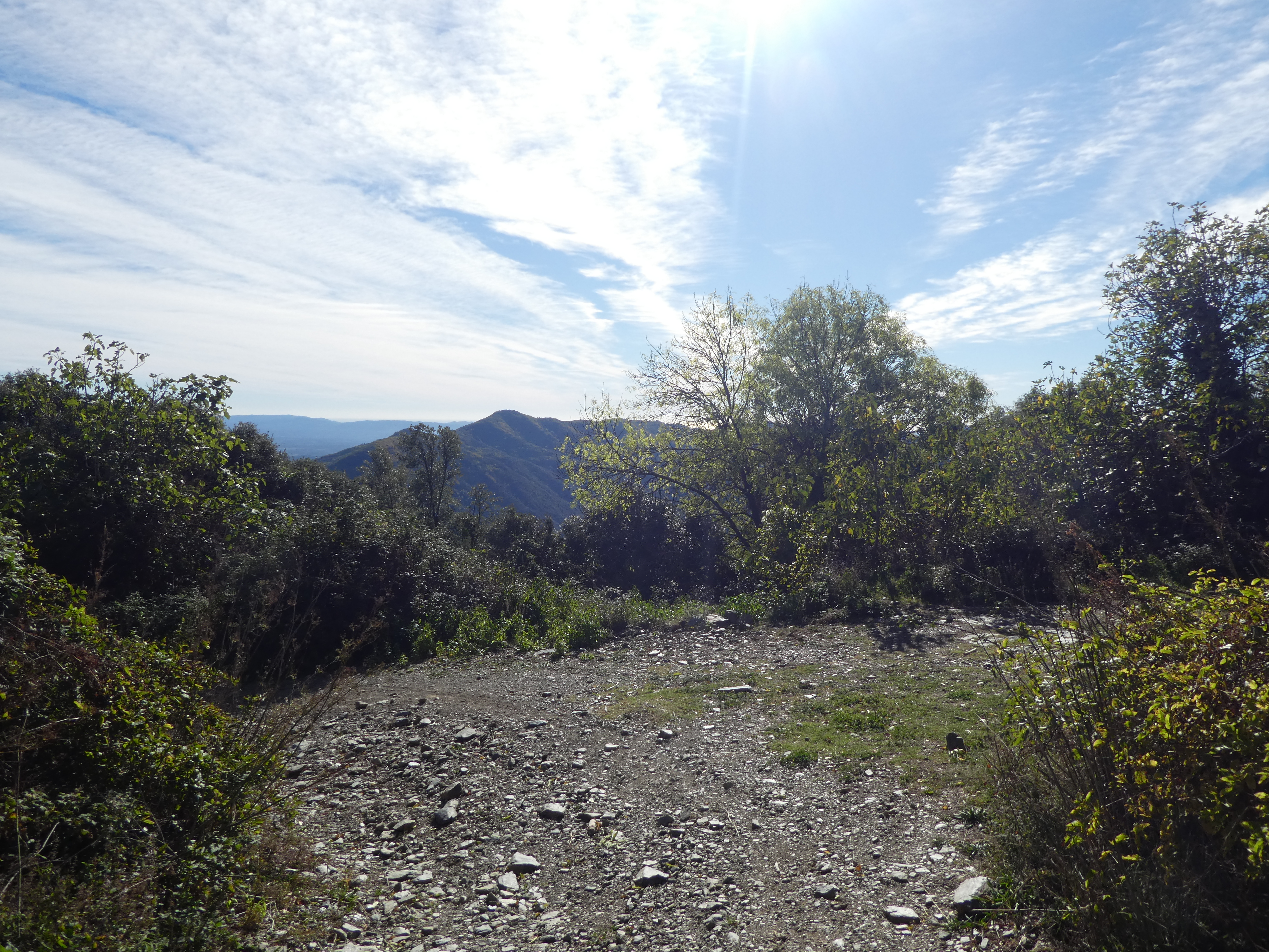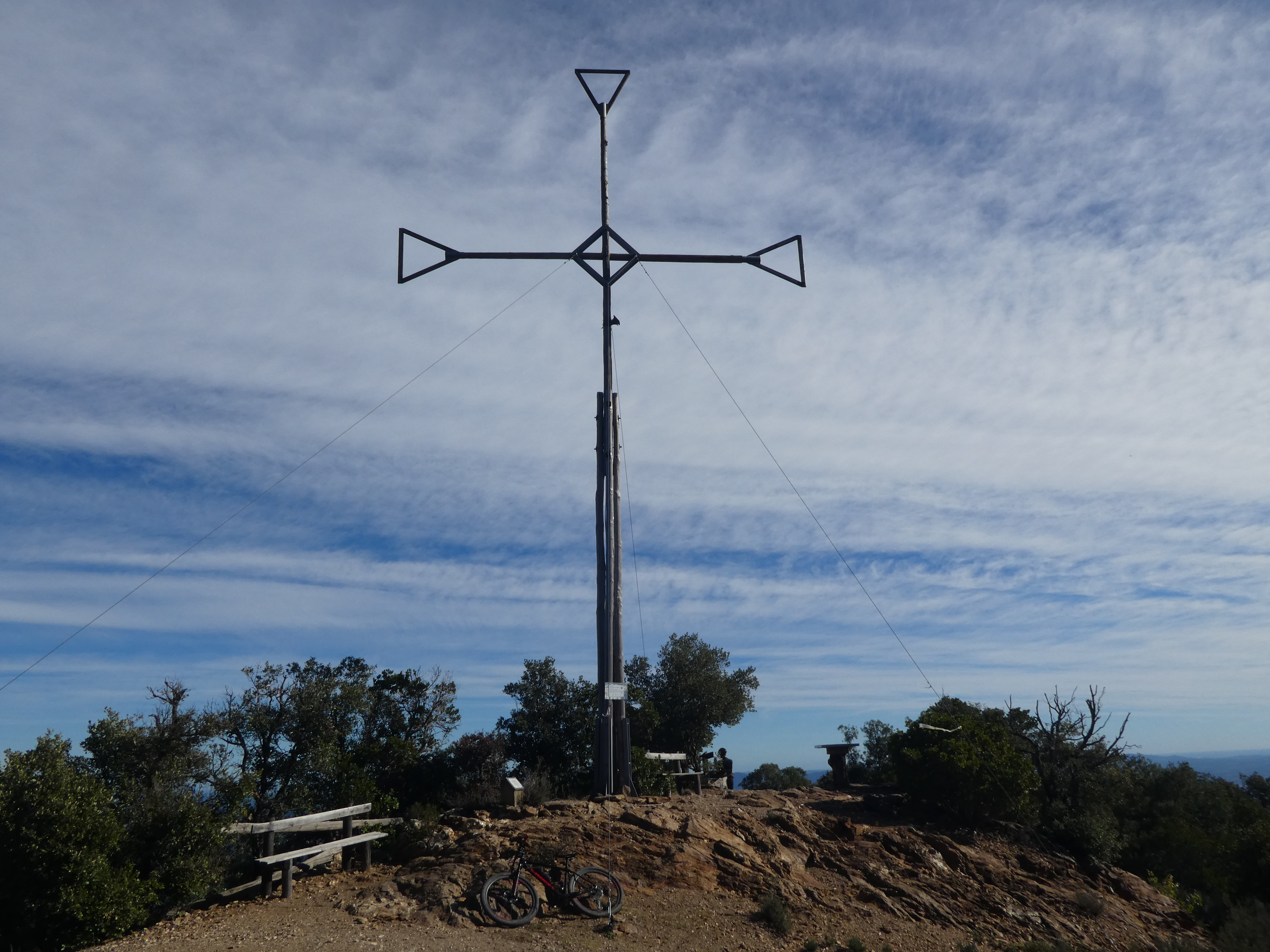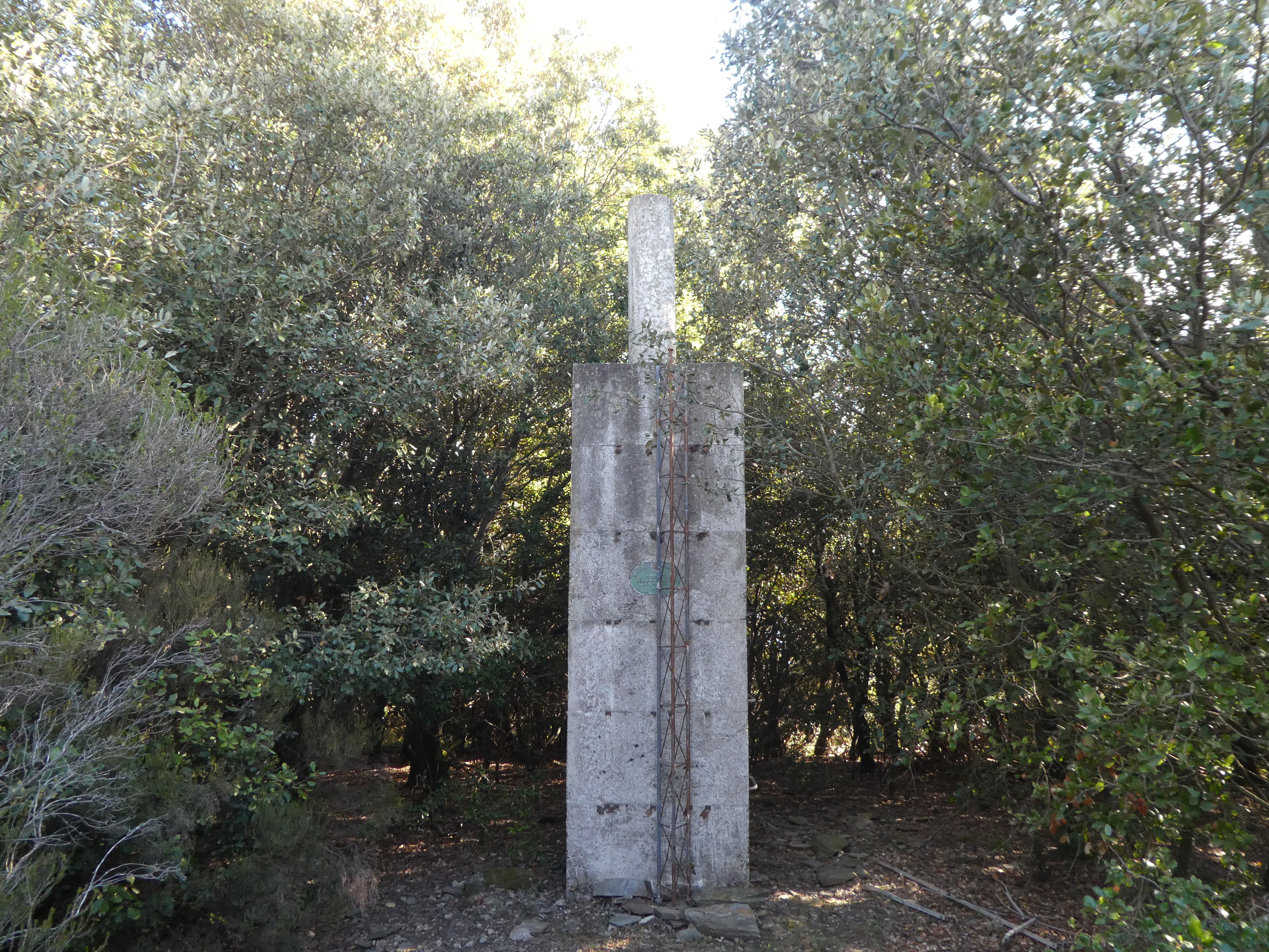 Dès que le point culminant du sentier est atteint (100 mètres après le précédent croisement), naviguer à vue sur la gauche à travers la végétation sur une vingtaine de mètres pour trouver la borne IGN du sommet direction Sant Gregori (situé à une vingtaine de mètres du sentier)