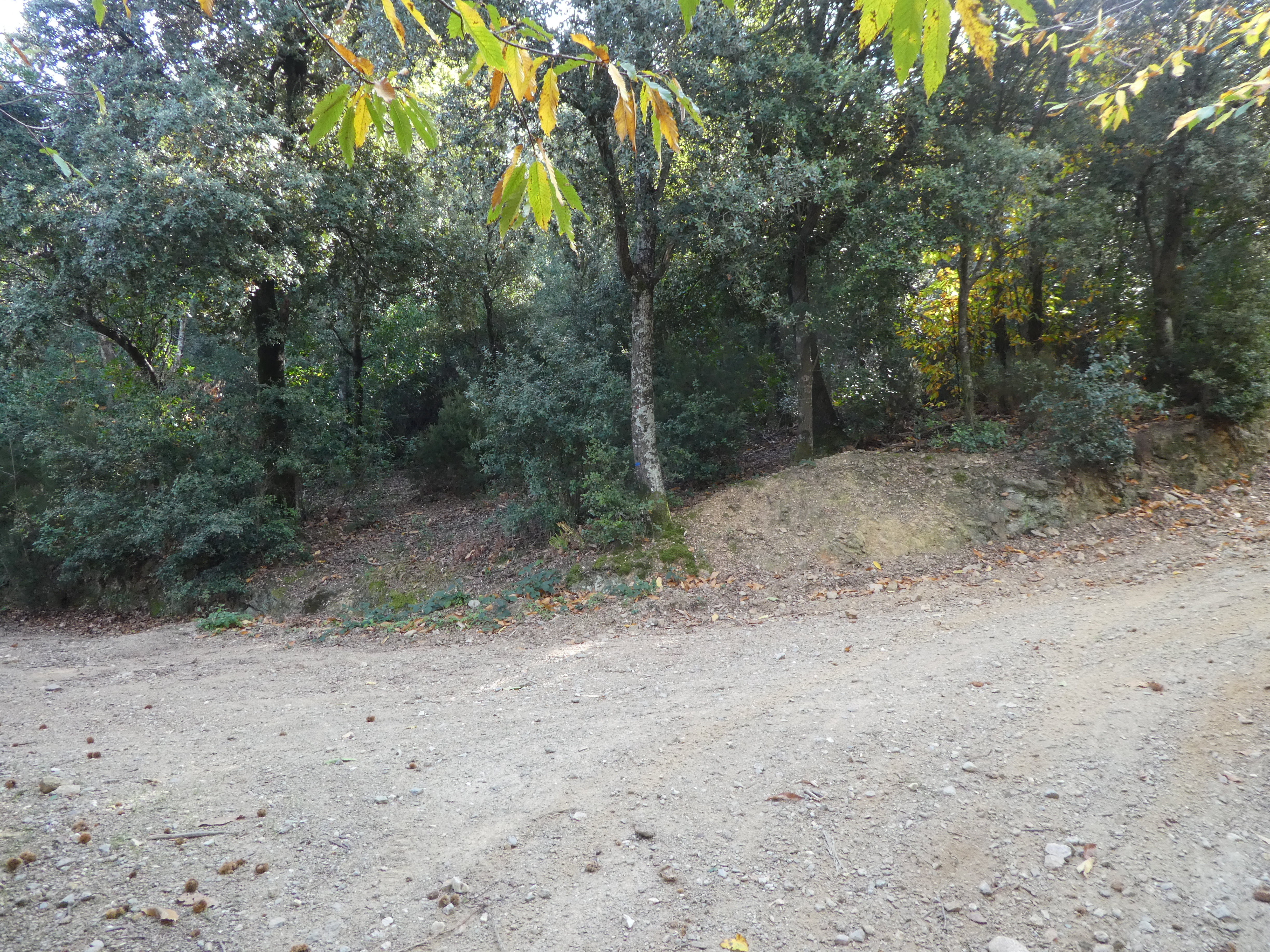 A ce croisement situé au niveau de la Font del Bassi (150 mètres après le précédent), suivre la piste partant tout droit direction Serra de Turonell, balisé sporadiquement en balises VTT n°25