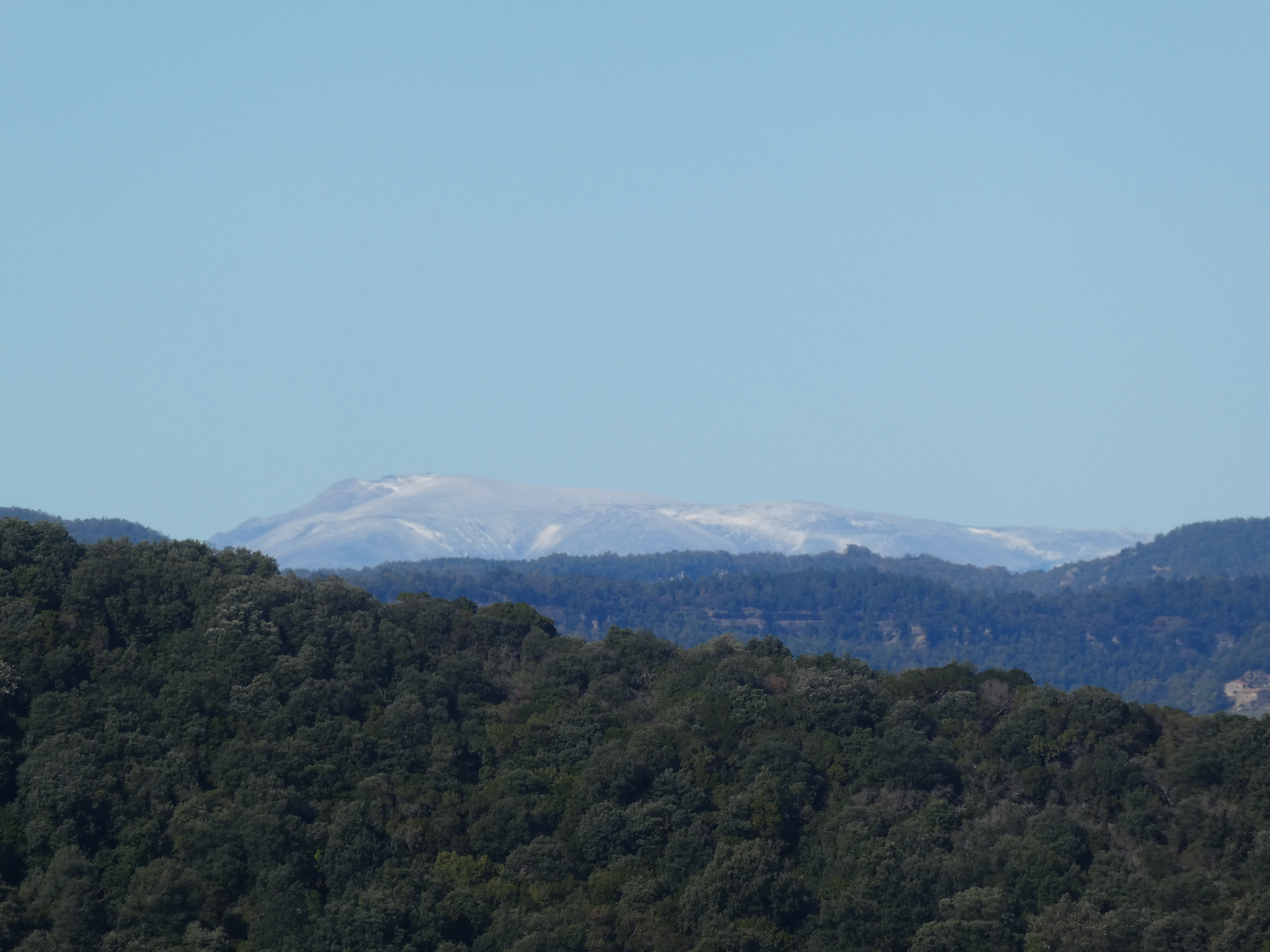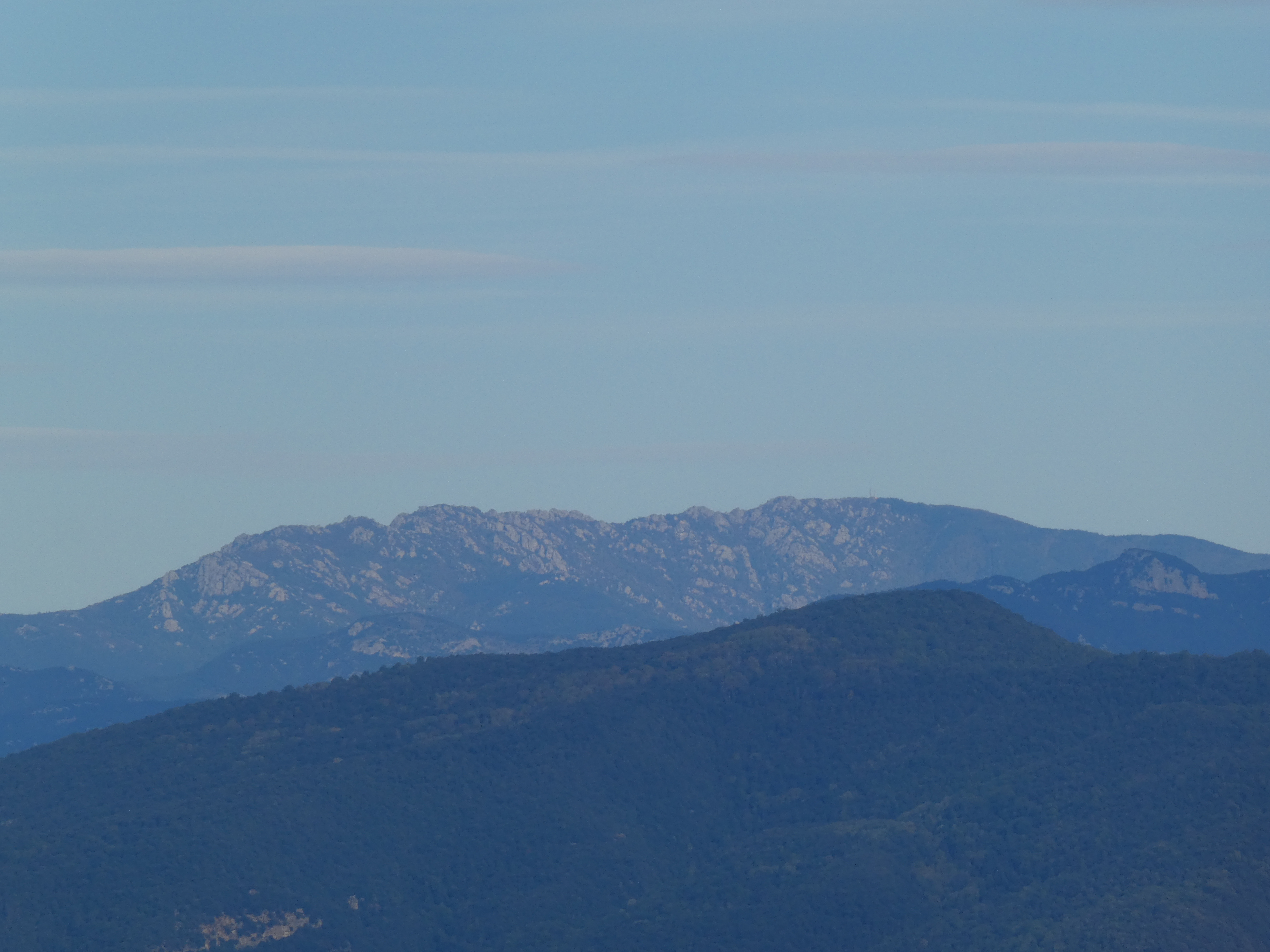 Zoom sur le massif des Gavarres avec la station météorologique du Puig d'Arques (535 m) au centre, point culminant du massif
