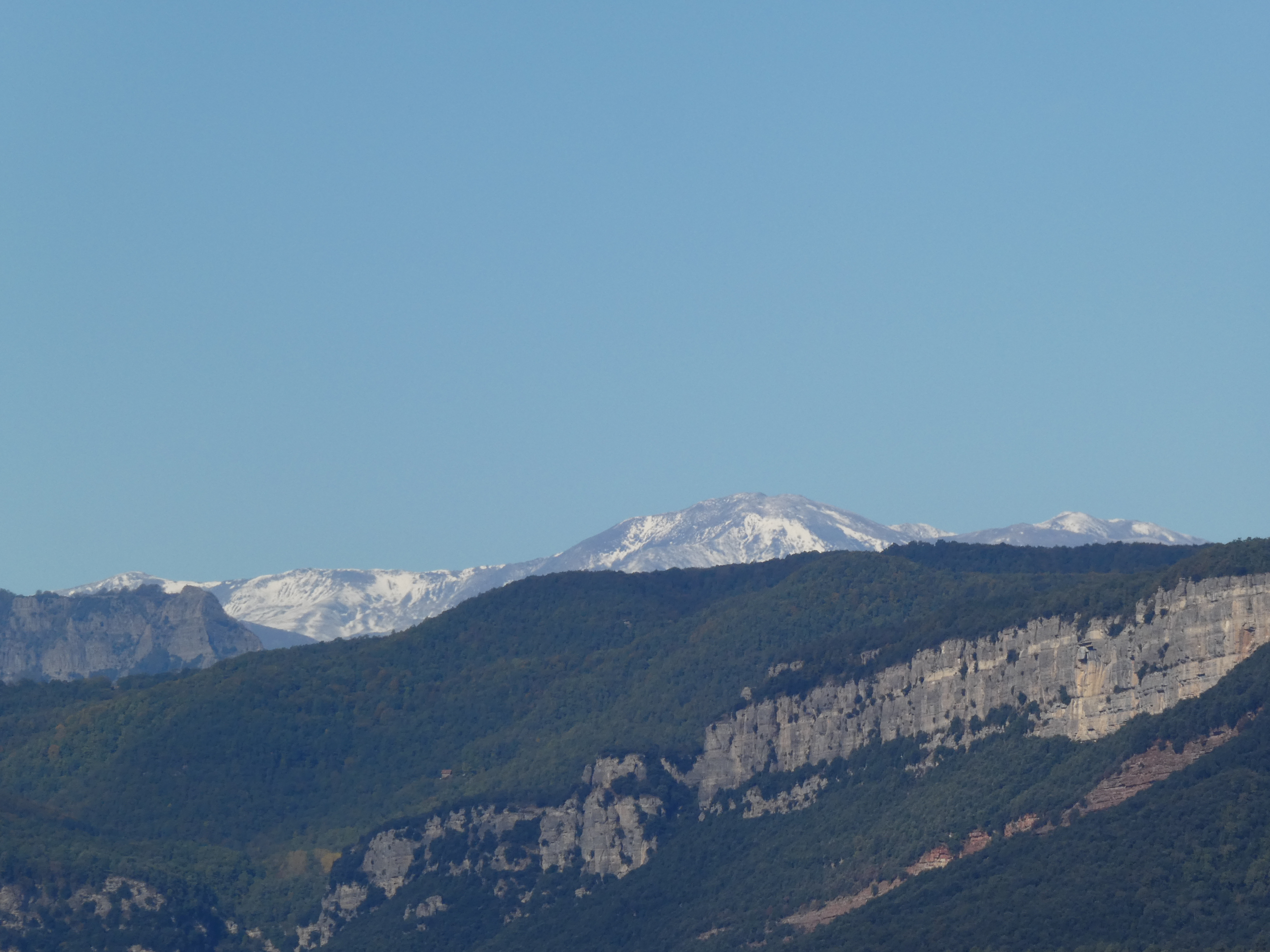 Zoom sur le Puigmal (2910 m) au centre et le Pic de Segre (2843 m) à droite