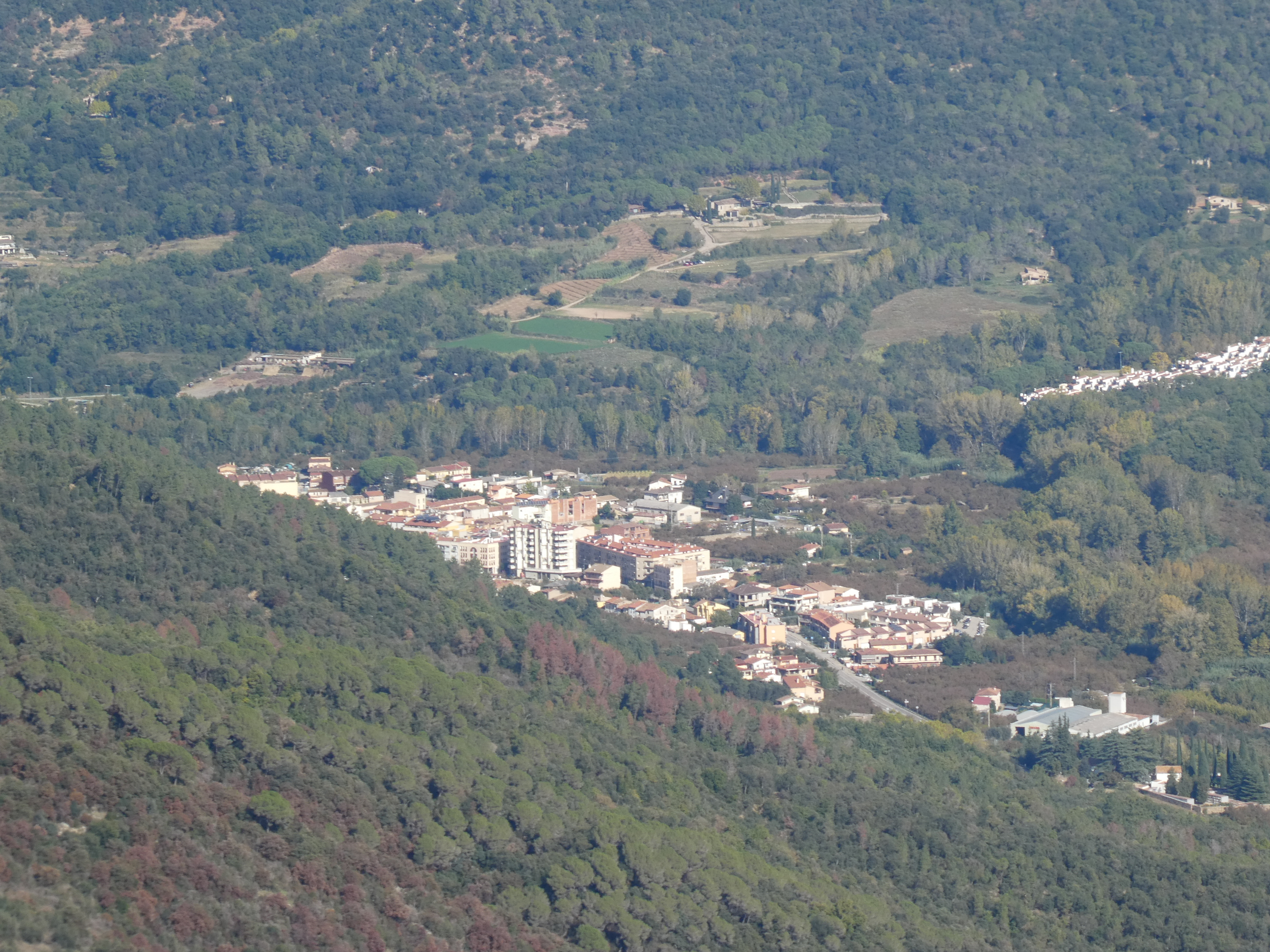 Départ la Cellera de Ter - Ajuntament (156 m) : suivre la rue partant tout droit pour rejoindre l'itinéraire balisé venant du Puigdefrou direction Cim del Puigdefrou, aucun balisage
