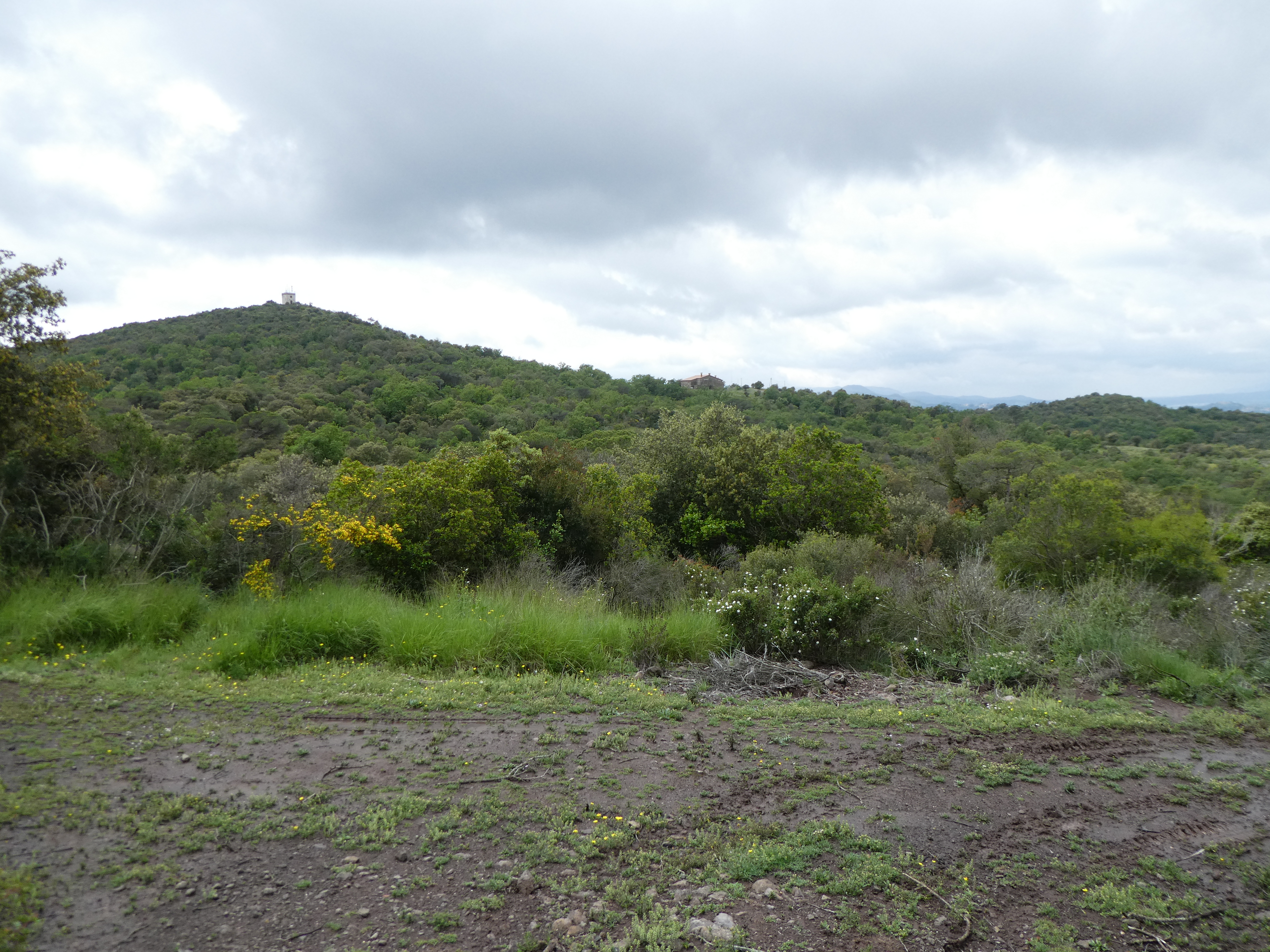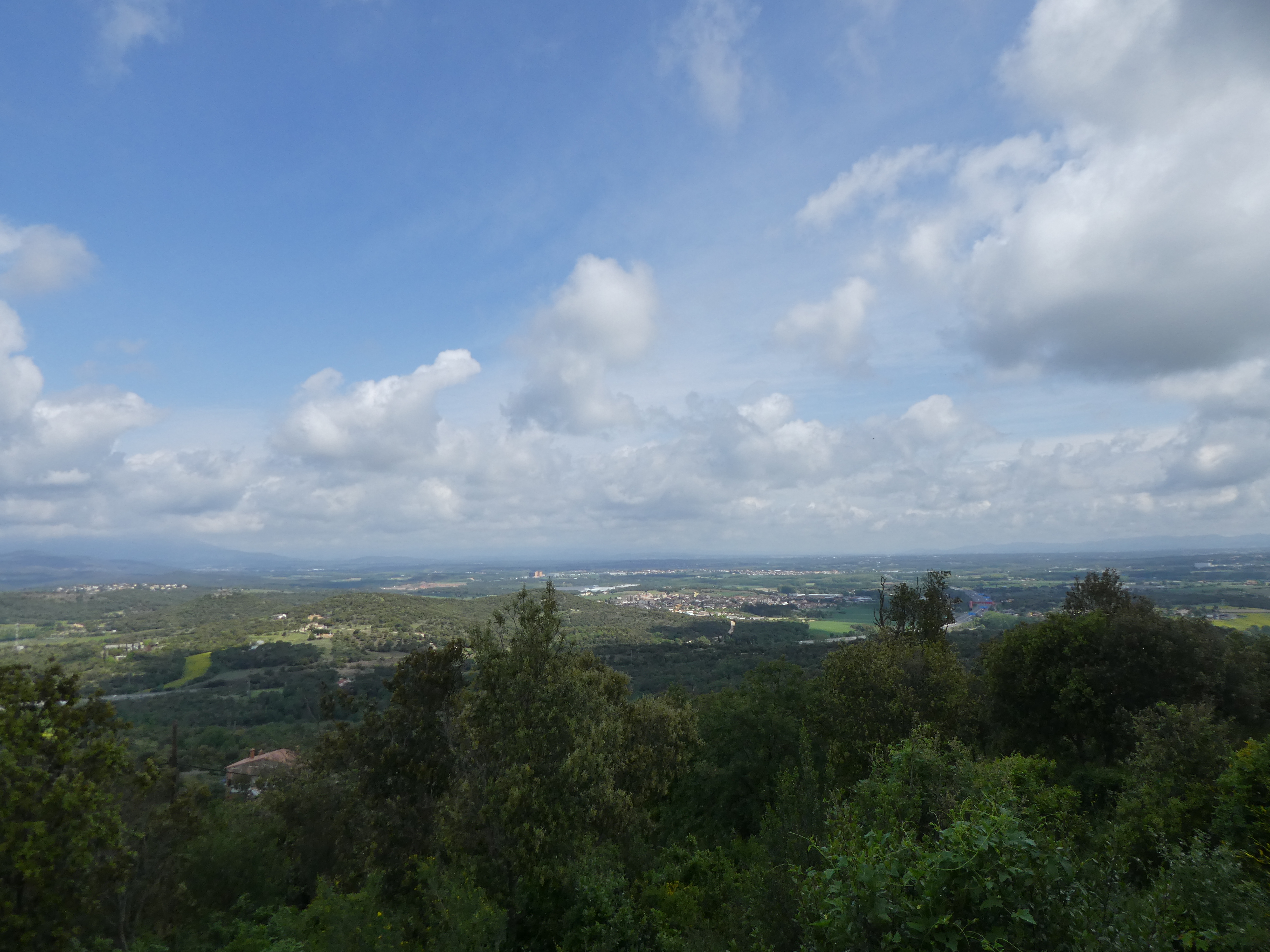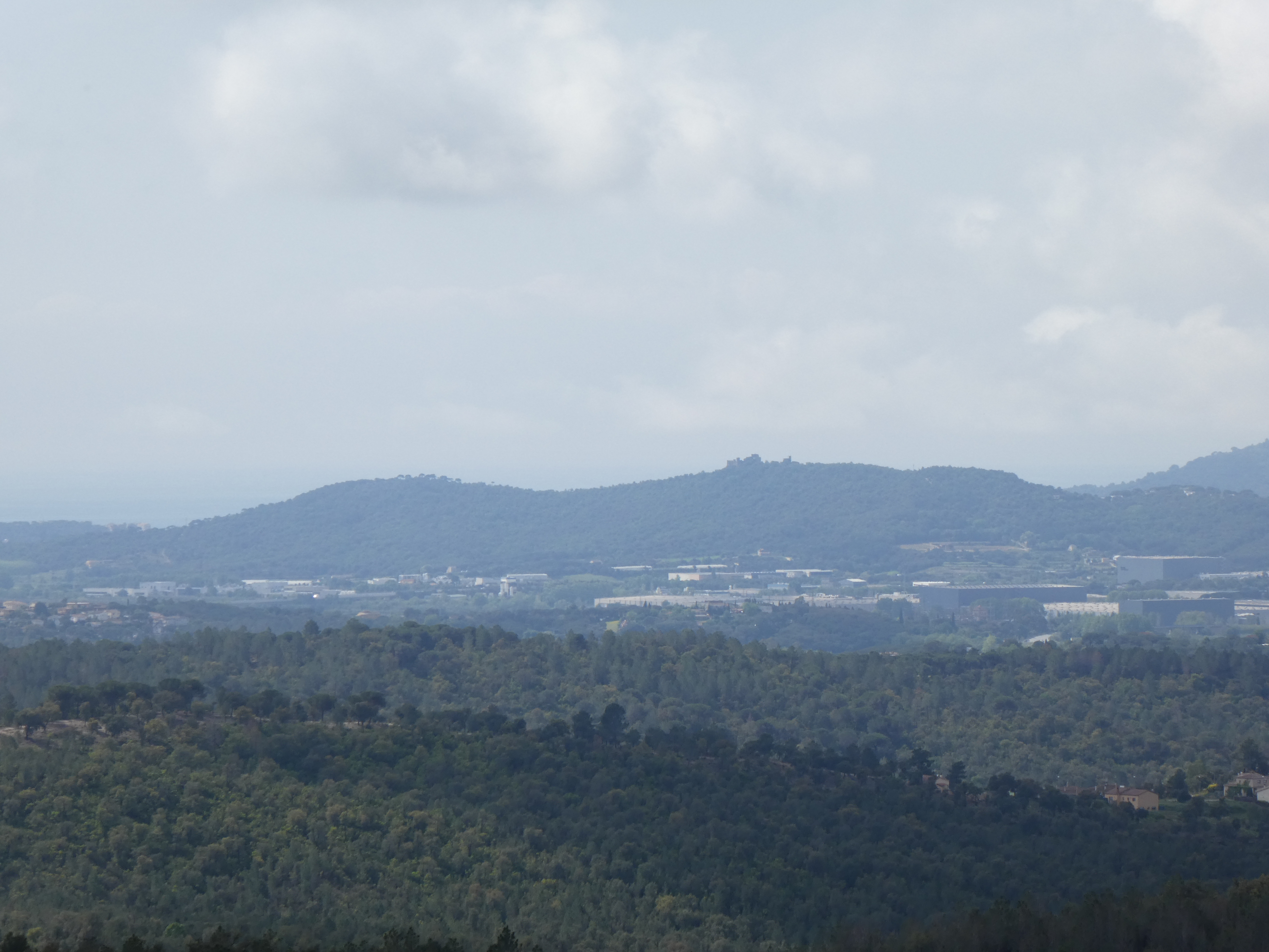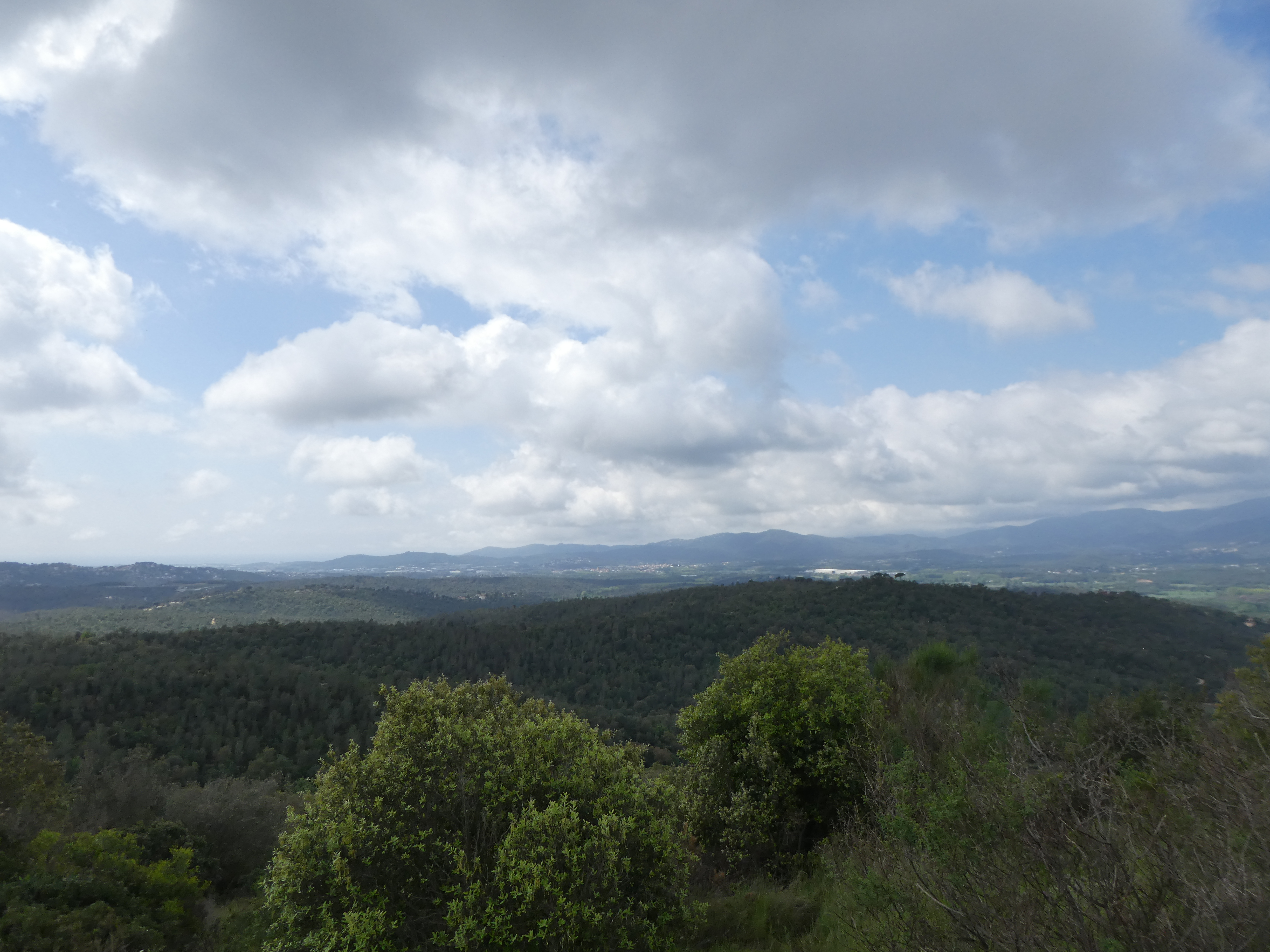 Arrivée au sommet du Castell de Torcafelló ou Puig de Sant Jordi (175 m) : panorama semblable à celui du Turó de Puigmarí avec vue moins étendue sur le Parc del Montnegre i el Corredor
