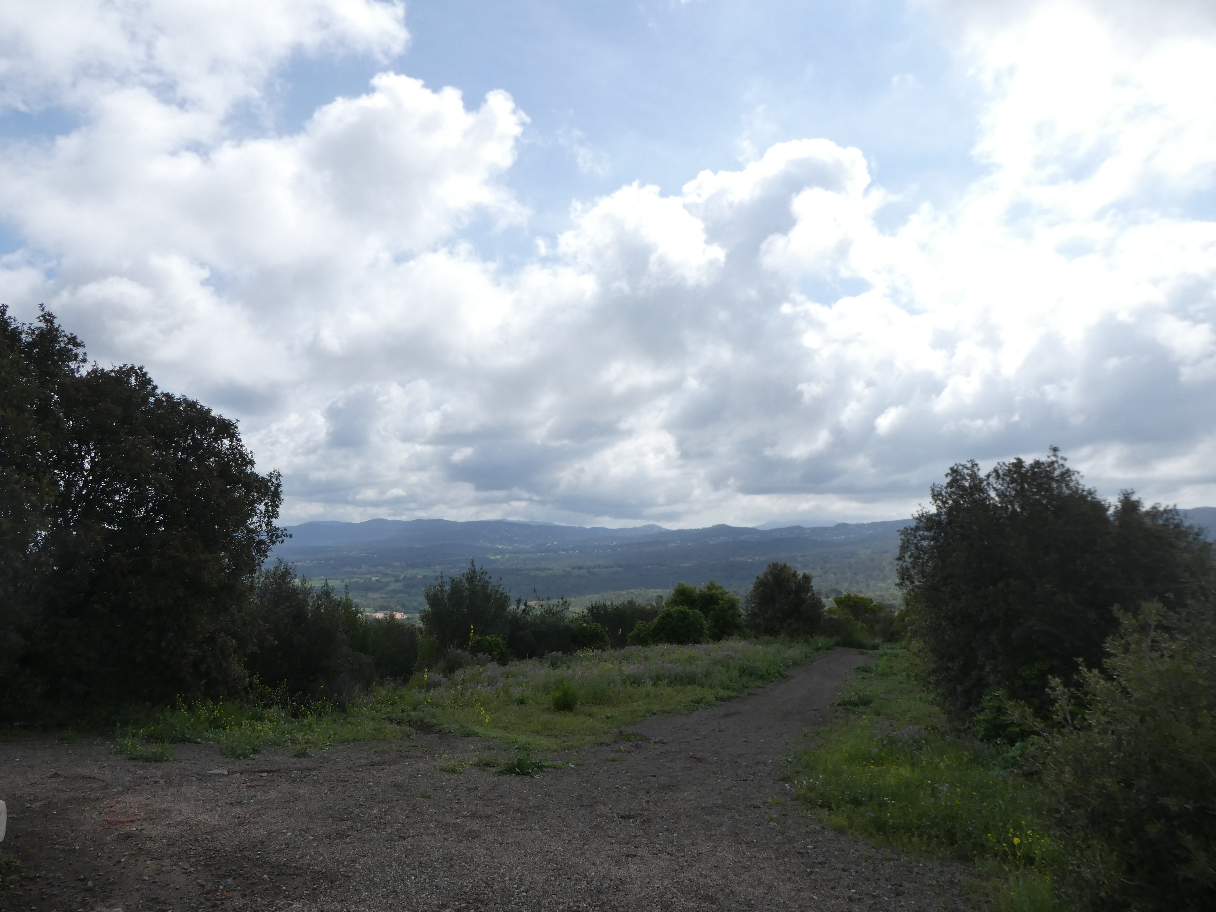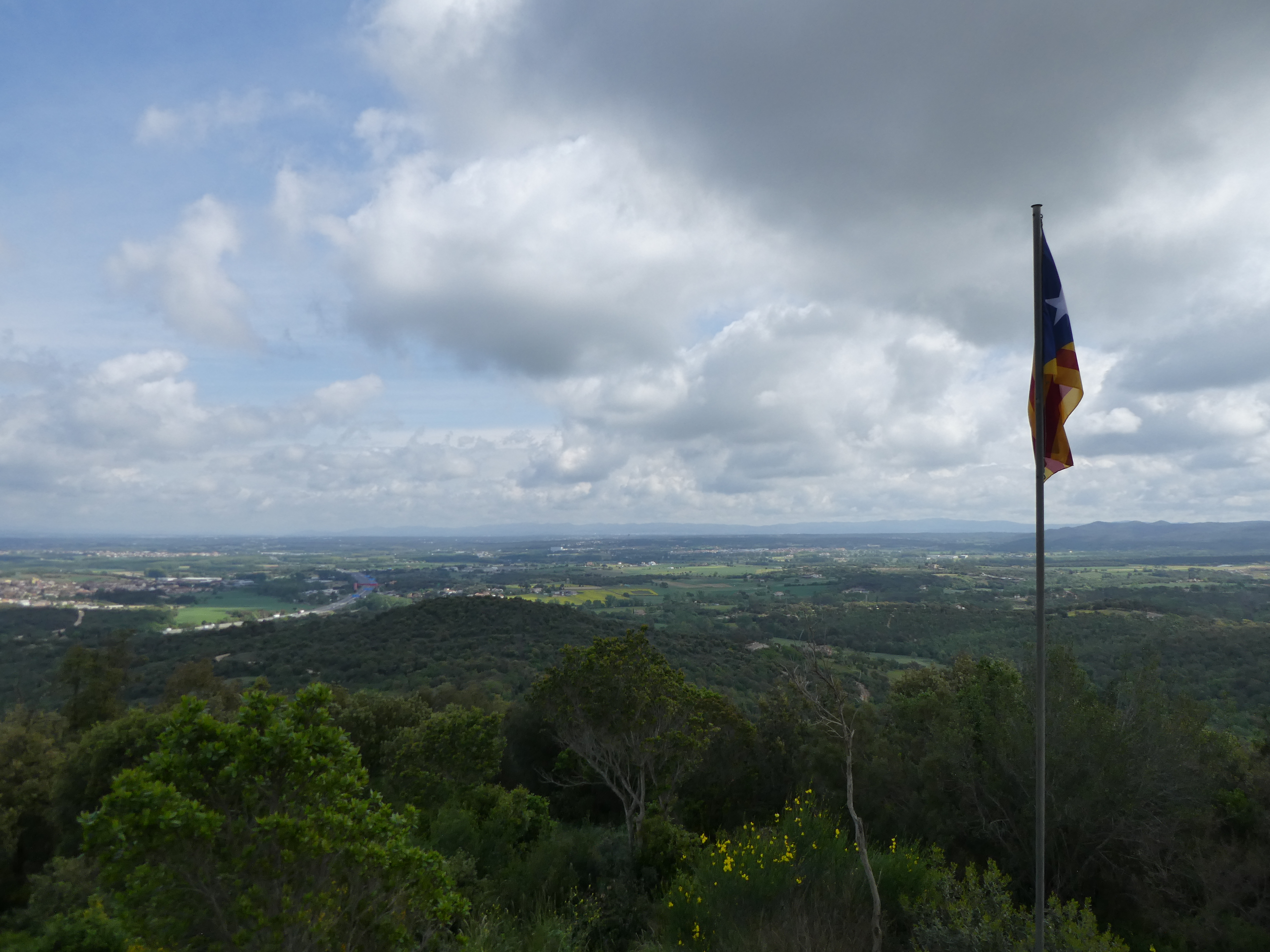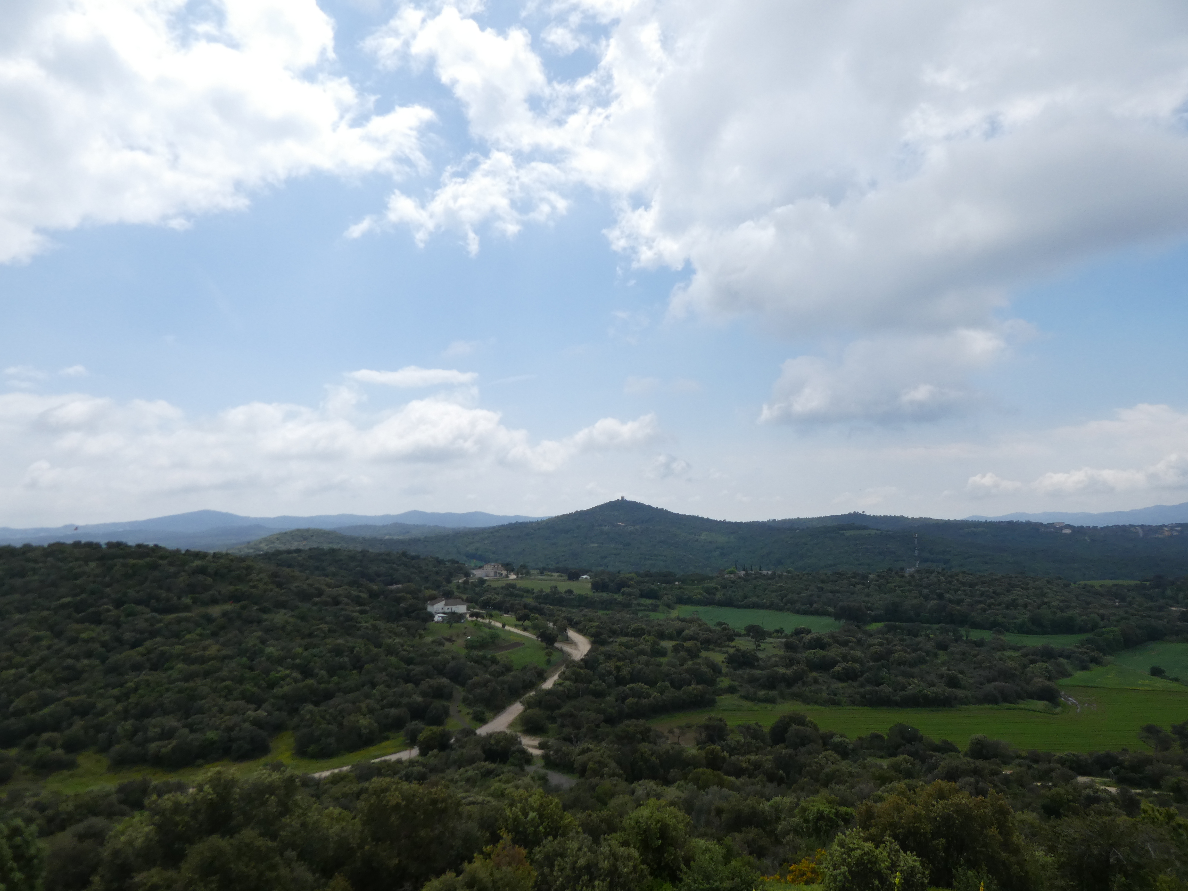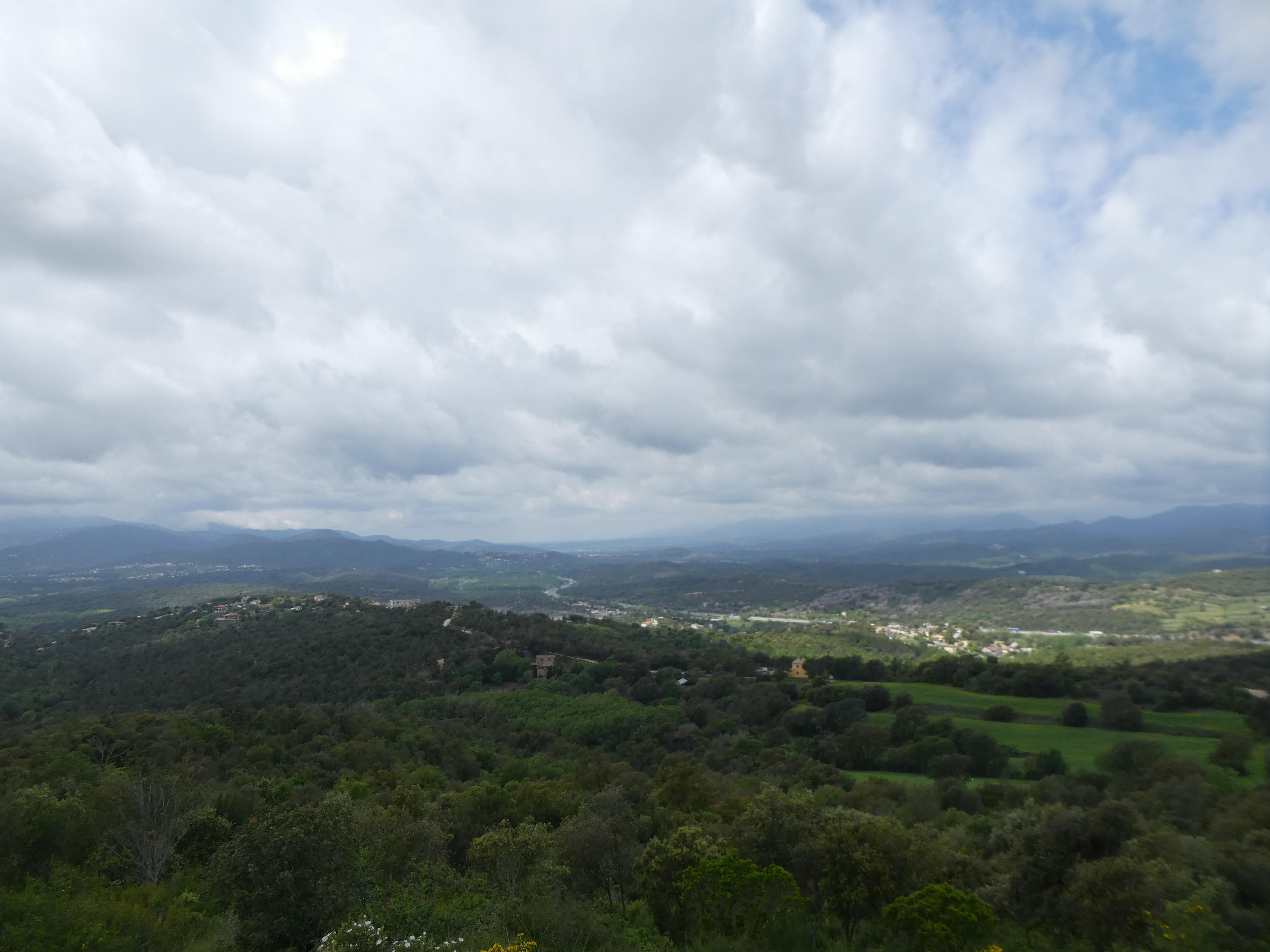 Arrivée au sommet du Castell de Torcafelló ou Puig de Sant Jordi (175 m) : panorama semblable à celui du Turó de Puigmarí avec vue moins étendue sur le Parc del Montnegre i el Corredor