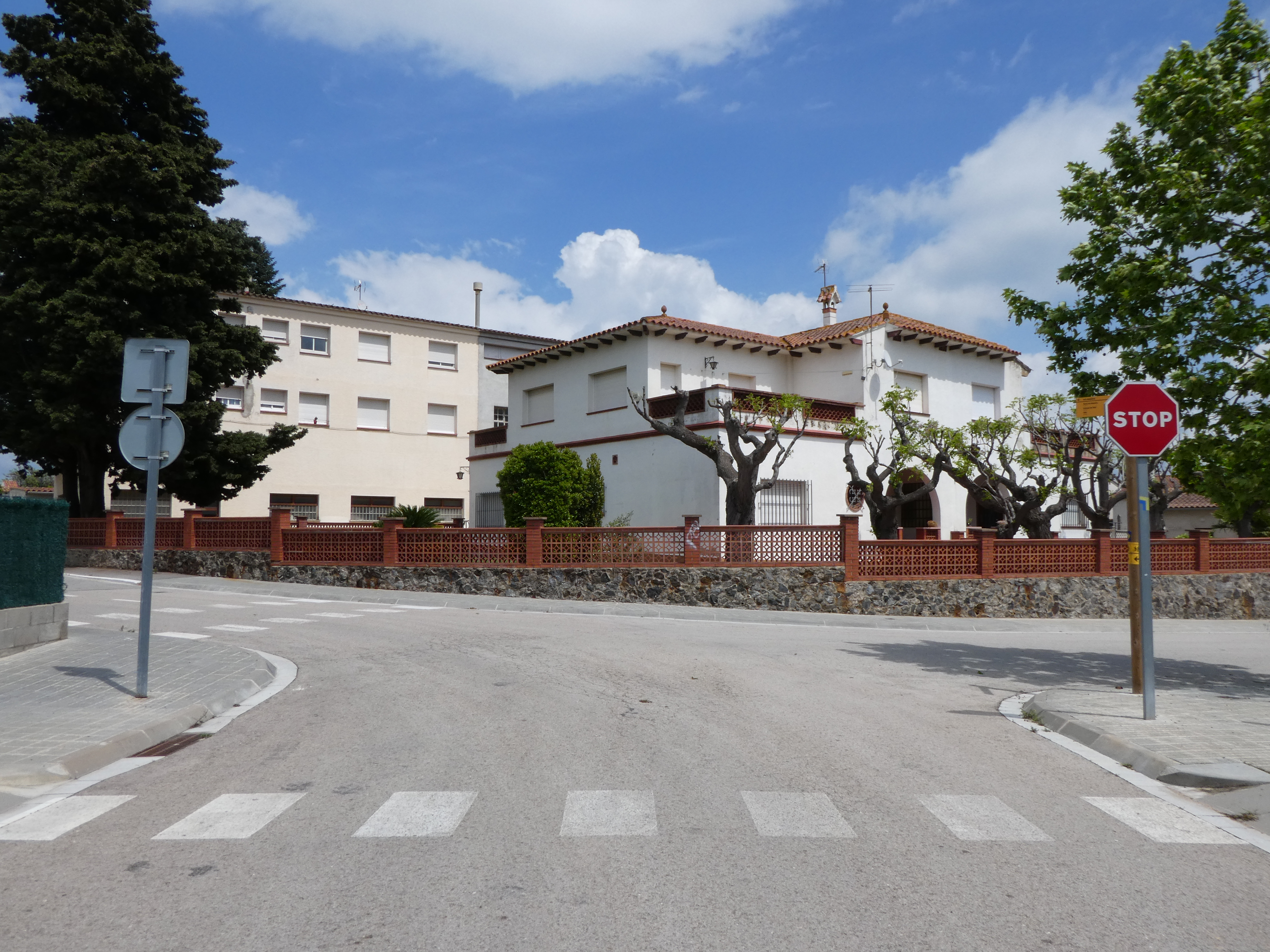 A ce croisement situé à l'entrée de Maçanet de la Selva marqué par la présence d'un panneau directionnel (800 mètres après le précédent), suivre la rue partant sur la gauche direction Maçanet de la Selva, balisé en jaune et bleu, et en orange dorénavant