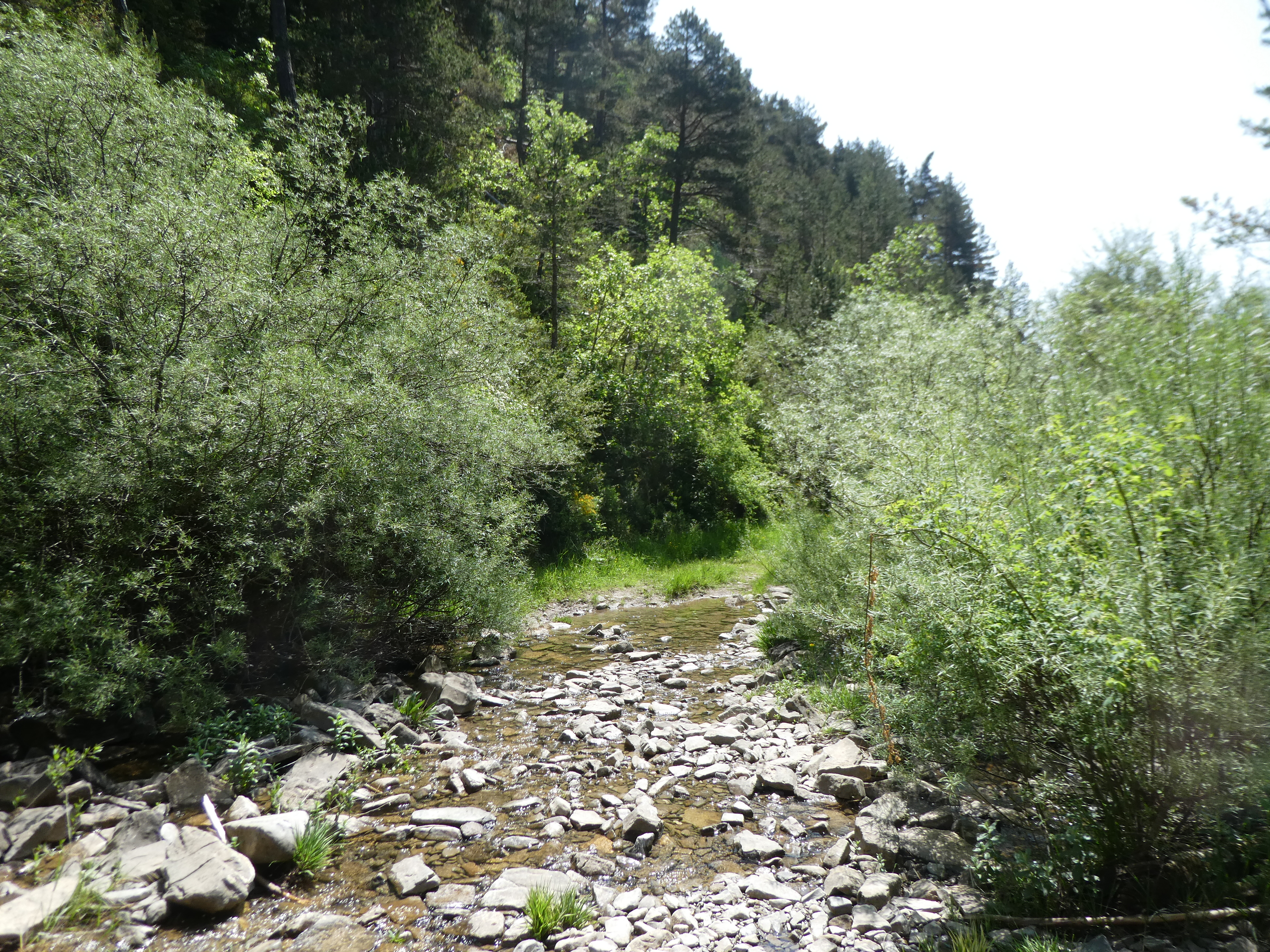 Au niveau de ce passage à gué du Barranco de Aso (100 mètres après le précédent croisement), suivre le chemin partant tout droit direction Aso de Sobremonte, balisé en rouge et blanc (bien suivre les balises rouges et blanches pour ne pas rater le croisement où il faut tourner à droite 1000 mètres plus loin)