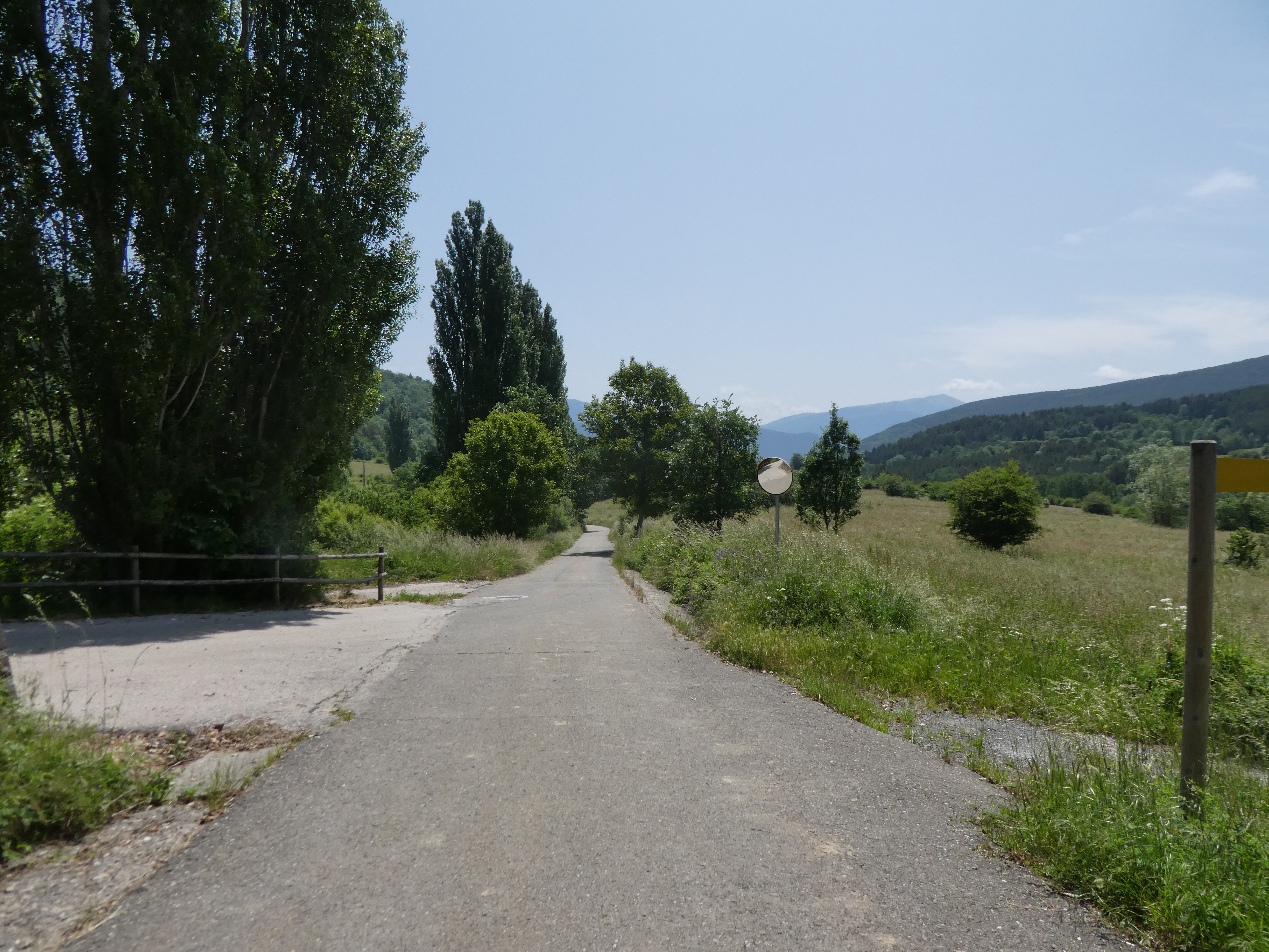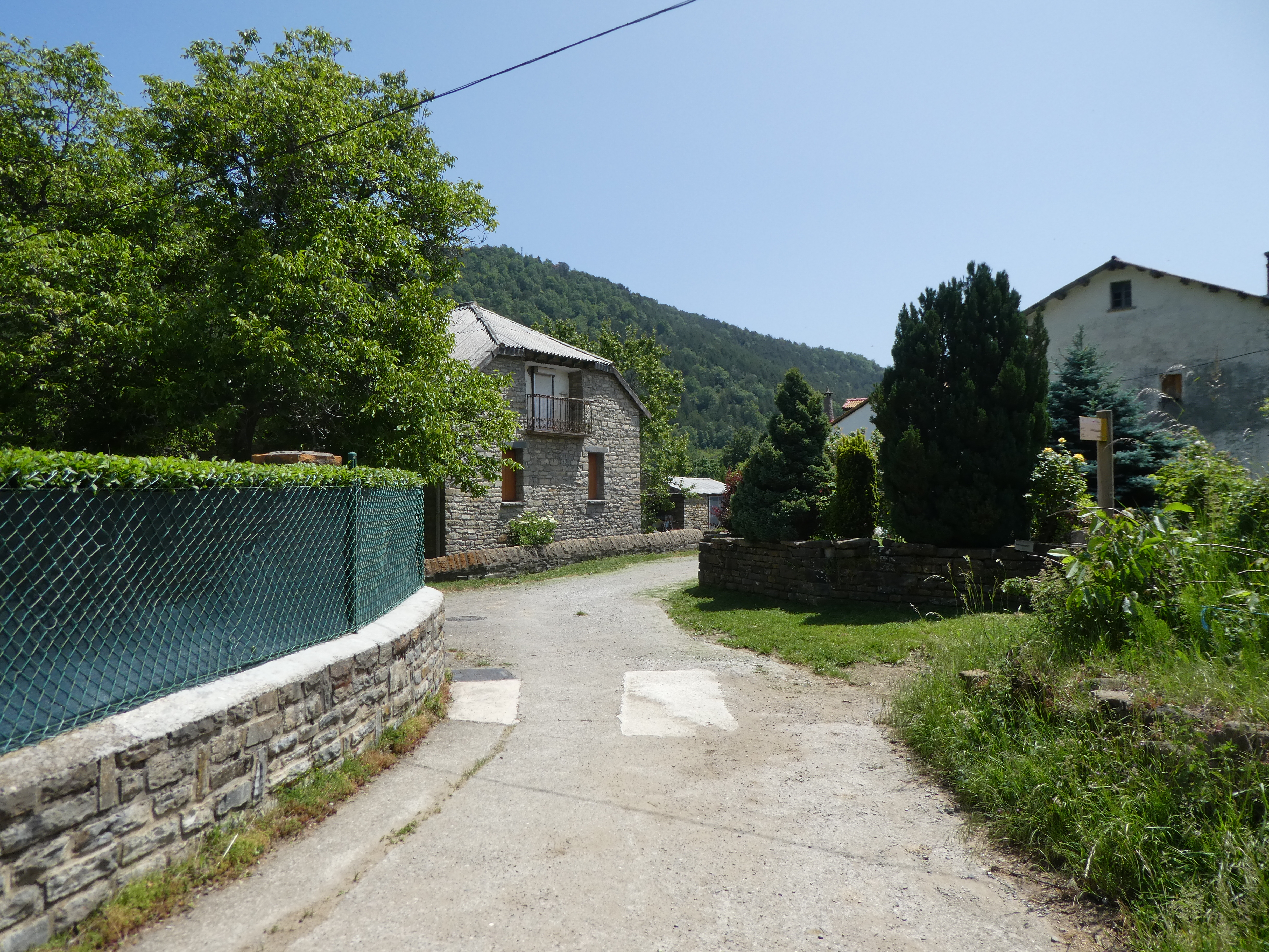 Départ Yosa de Sobremonte (1181 m) : suivre la route principale partant tout droit direction Betés de Sobremonte (por Ermita de Santa Orosia), balisé en rouge et blanc