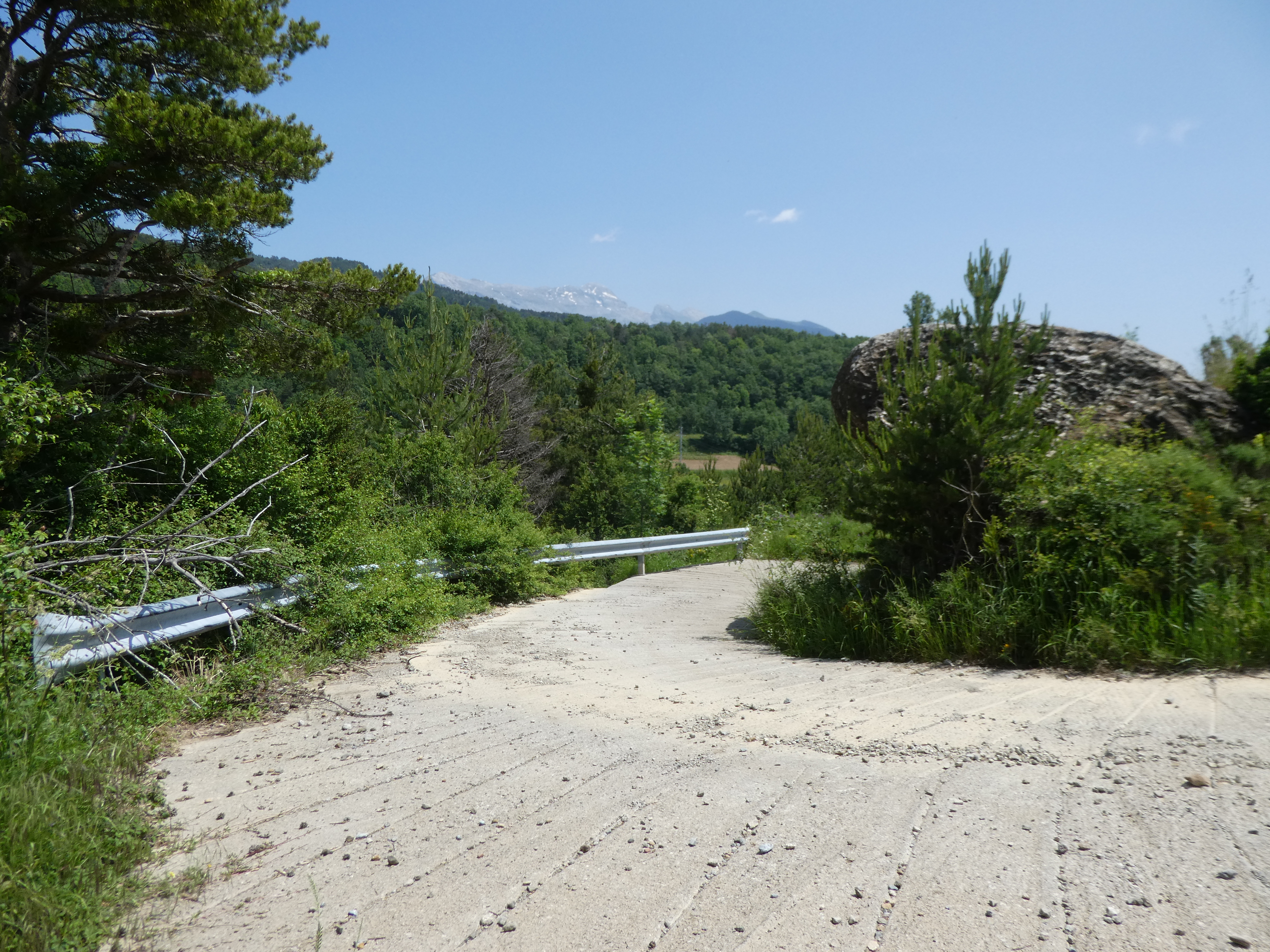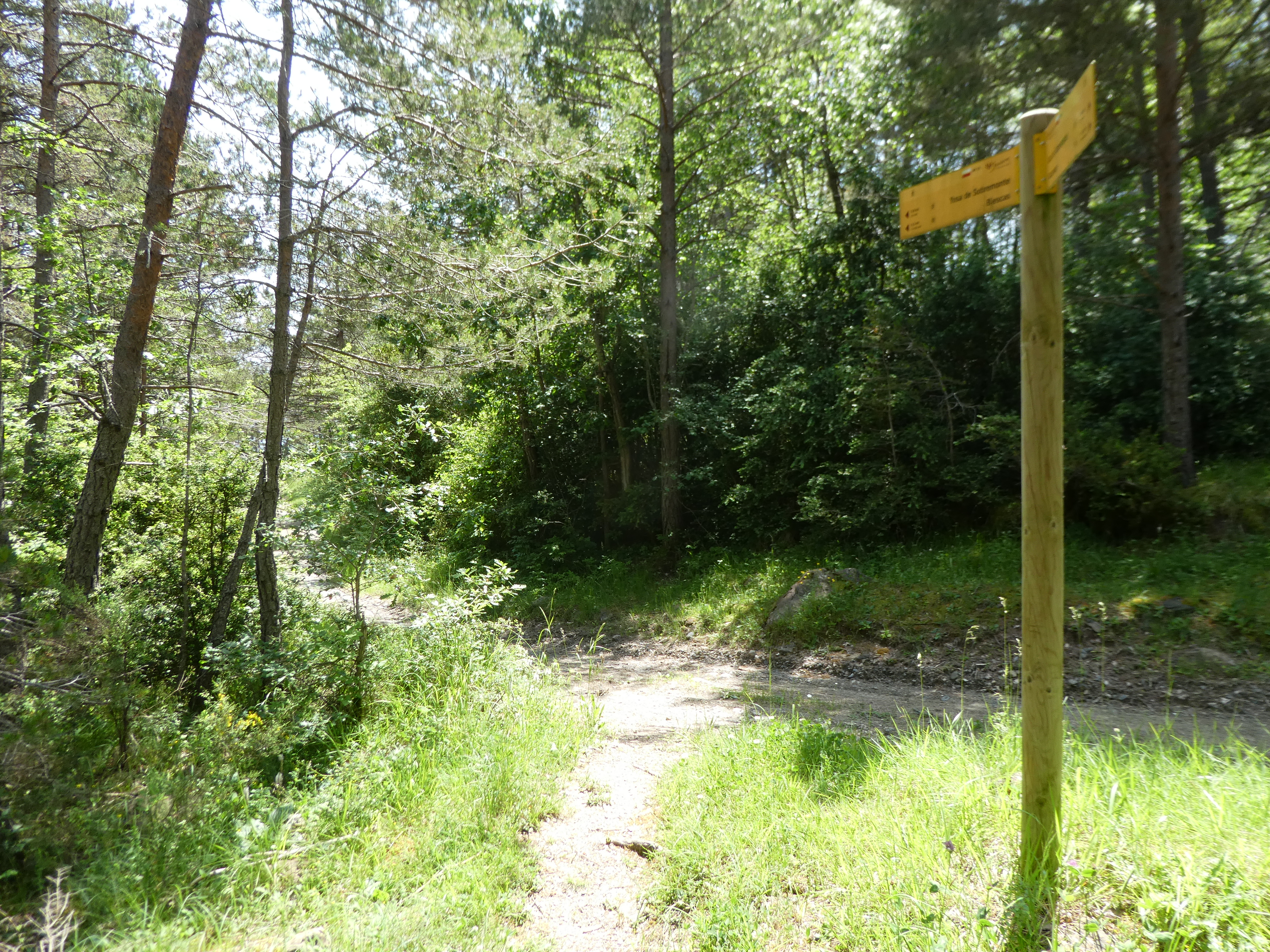 A ce croisement avec le sentier descendant sur Biescas marqué par la présence d'un panneau directionnel (300 mètres après le précédent), suivre la route partant tout droit direction Betés de Sobremonte (por Ermita de Santa Orosia)