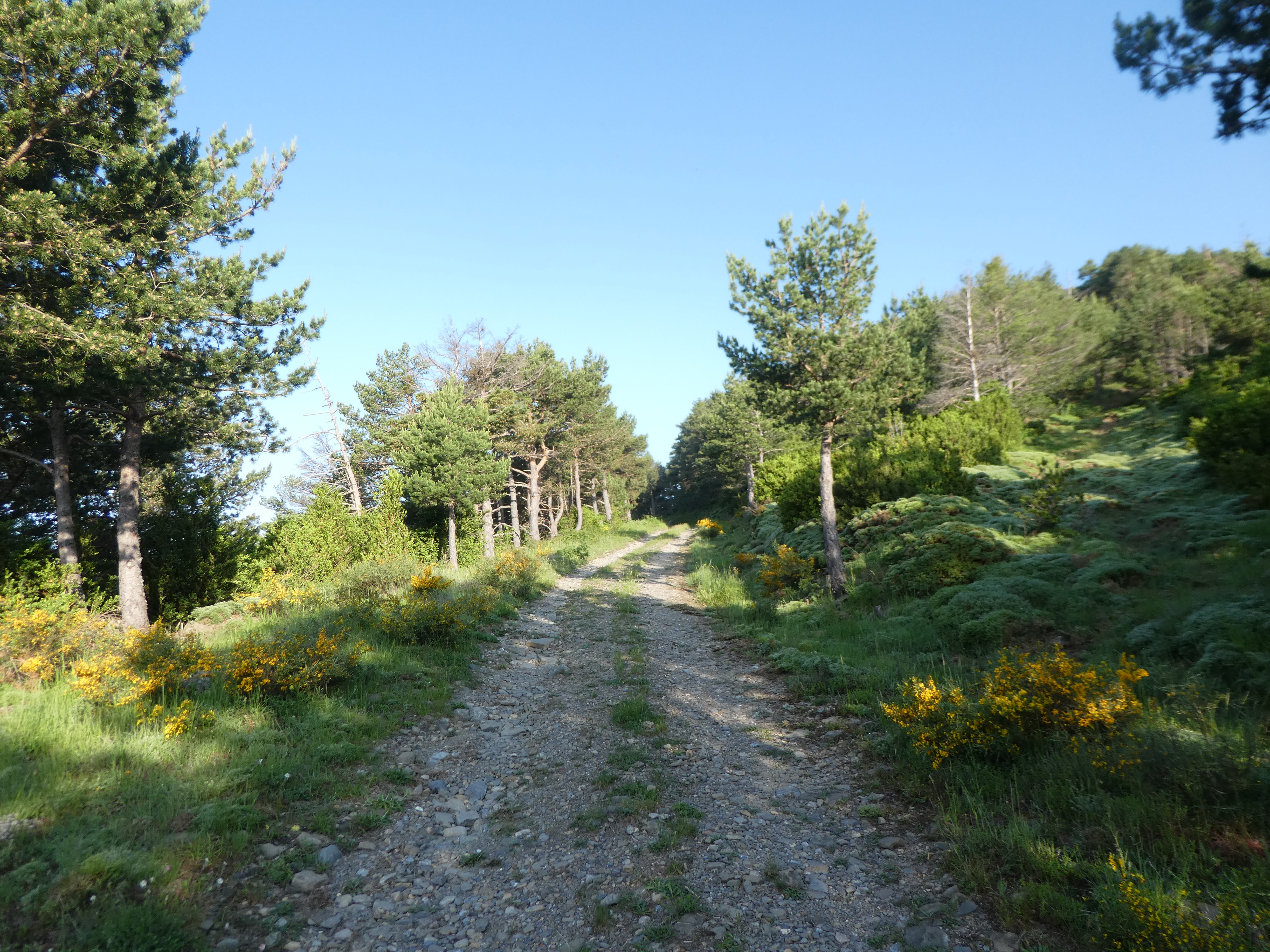A ce croisement avec la piste menant à l'antenne de la Cerruza (25 mètres après le précédent), suivre cette dernière partant sur la droite direction Cerruza, balisé sporadiquement en balises VTT n°36 dorénavant (toujours suivre la large piste et ignorer tous les croisements munis de panneaux directionnels revenant sur Betés)