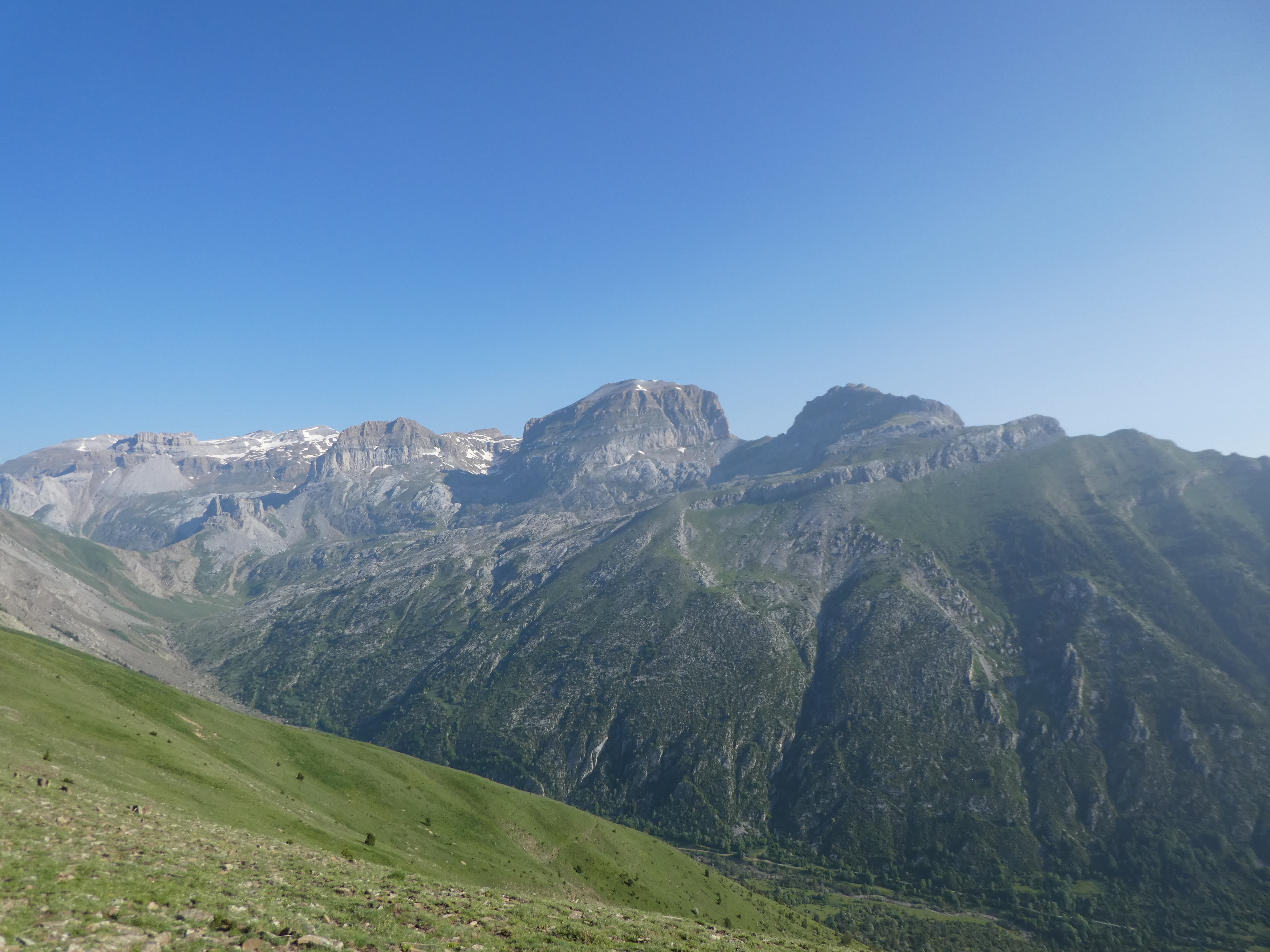 Zoom sur le Monte Sarasé (2179 m) à gauche, le Mondiciero (2395 m) au centre et le Pueyo de Mondicieto (2384 m) à droite