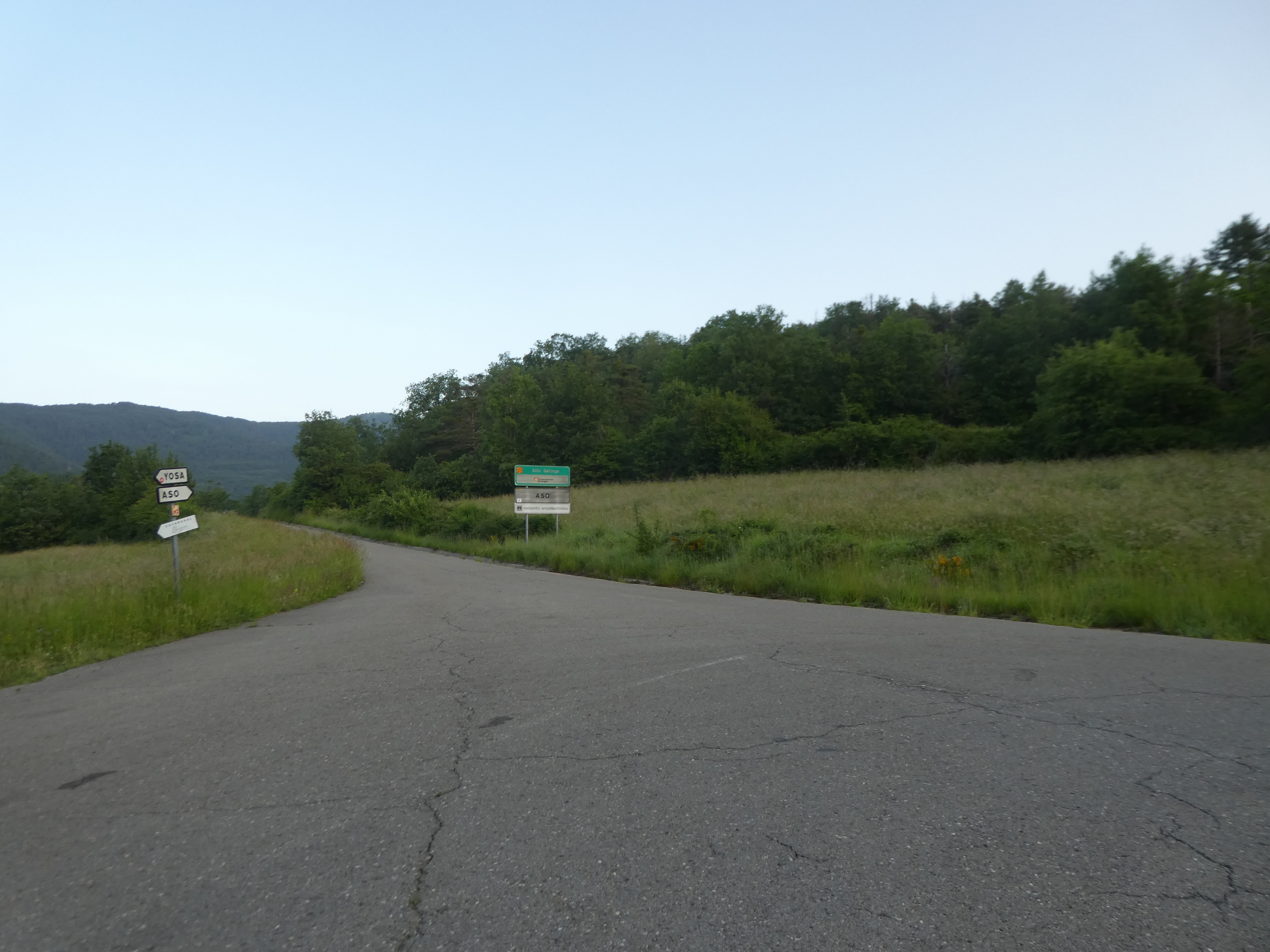 A ce croisement situé à l'entrée d'Aso de Sobremonte marqué par la présence d'un panneau directionnel (2500 mètres après le précédent mentionné), suivre la rue principale partant tout droit direction Yosa de Sobremonte, balisé en rouge et blanc (direction non mentionnée sur le panneau directionnel)