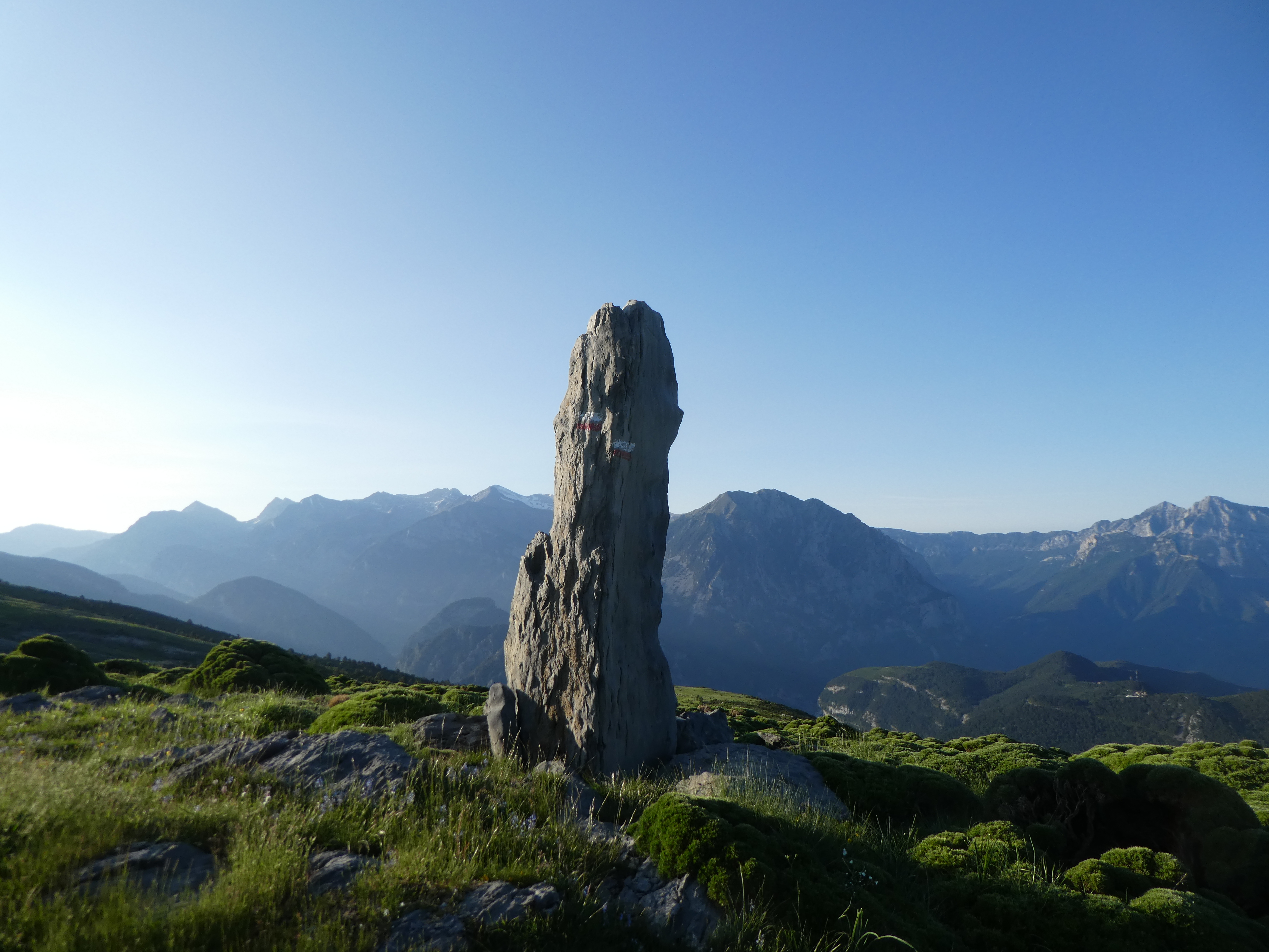 Portiello de Tella (2089 m) : suivre le semblant de chemin partant sur la gauche et longeant la ligne de crête de la Sierra de las Sucas direction Pala de Montinier, aucun balisage dorénavant