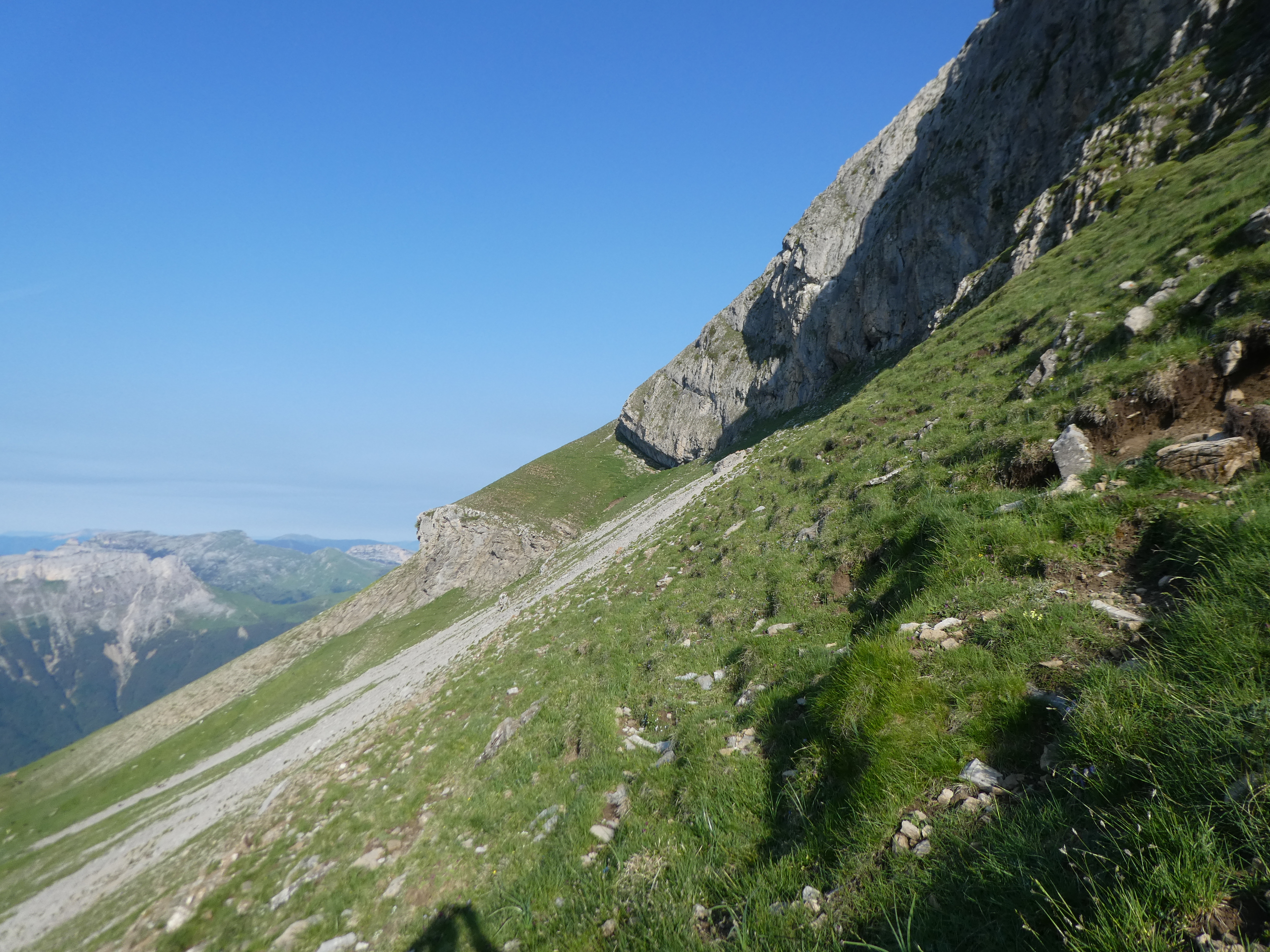 Sentier peu marqué sous la falaise de la Pala de Montinier
