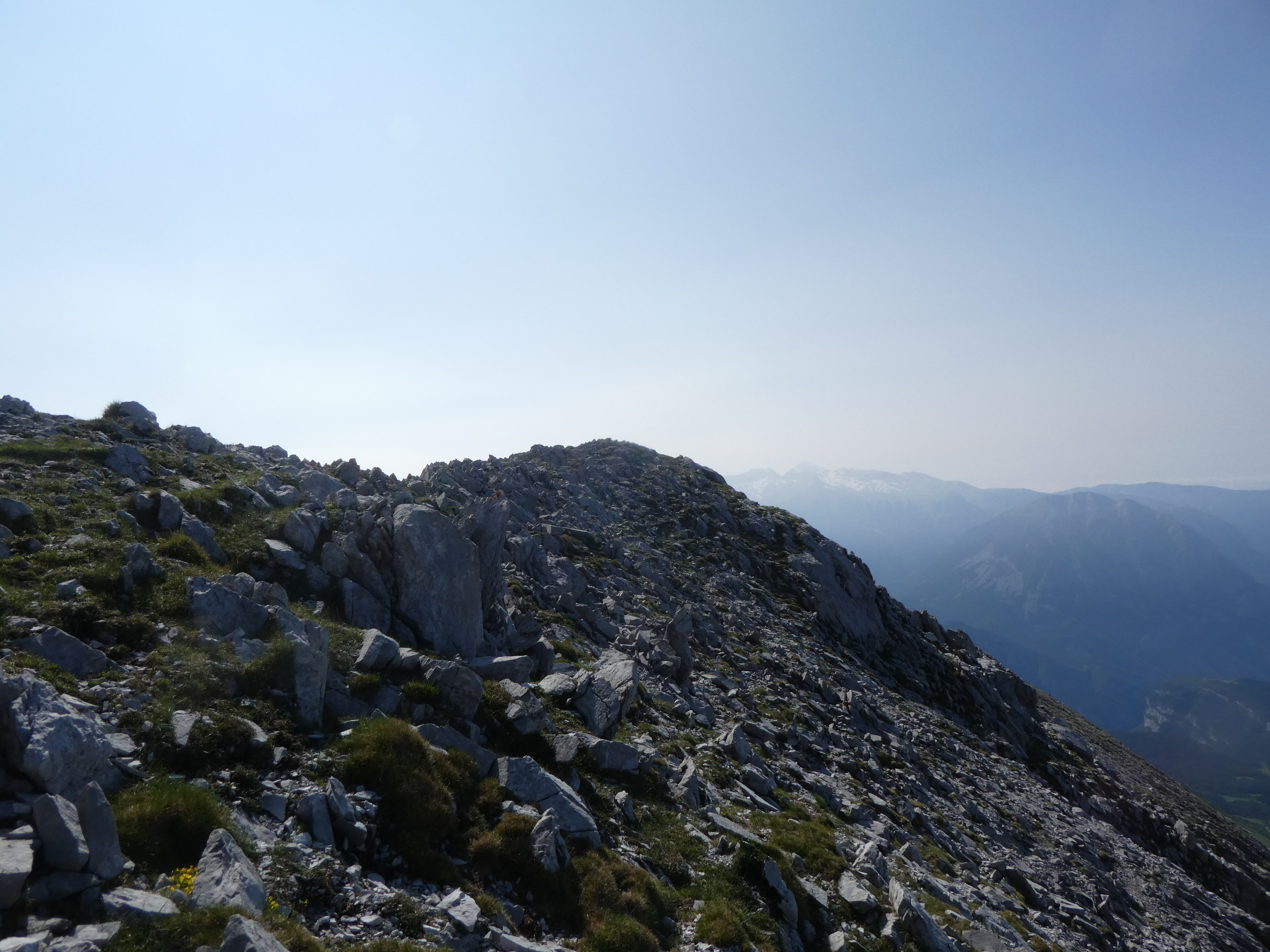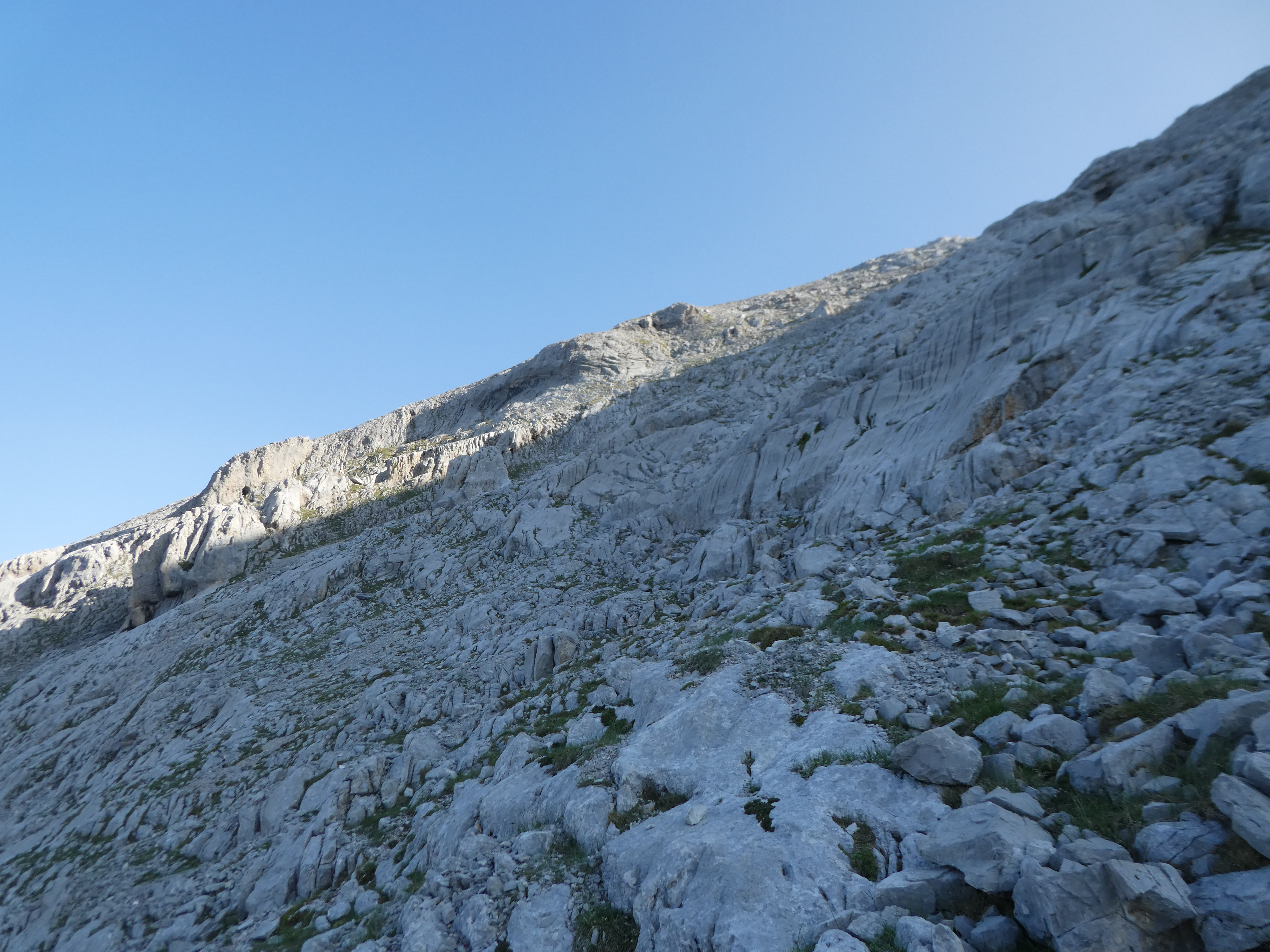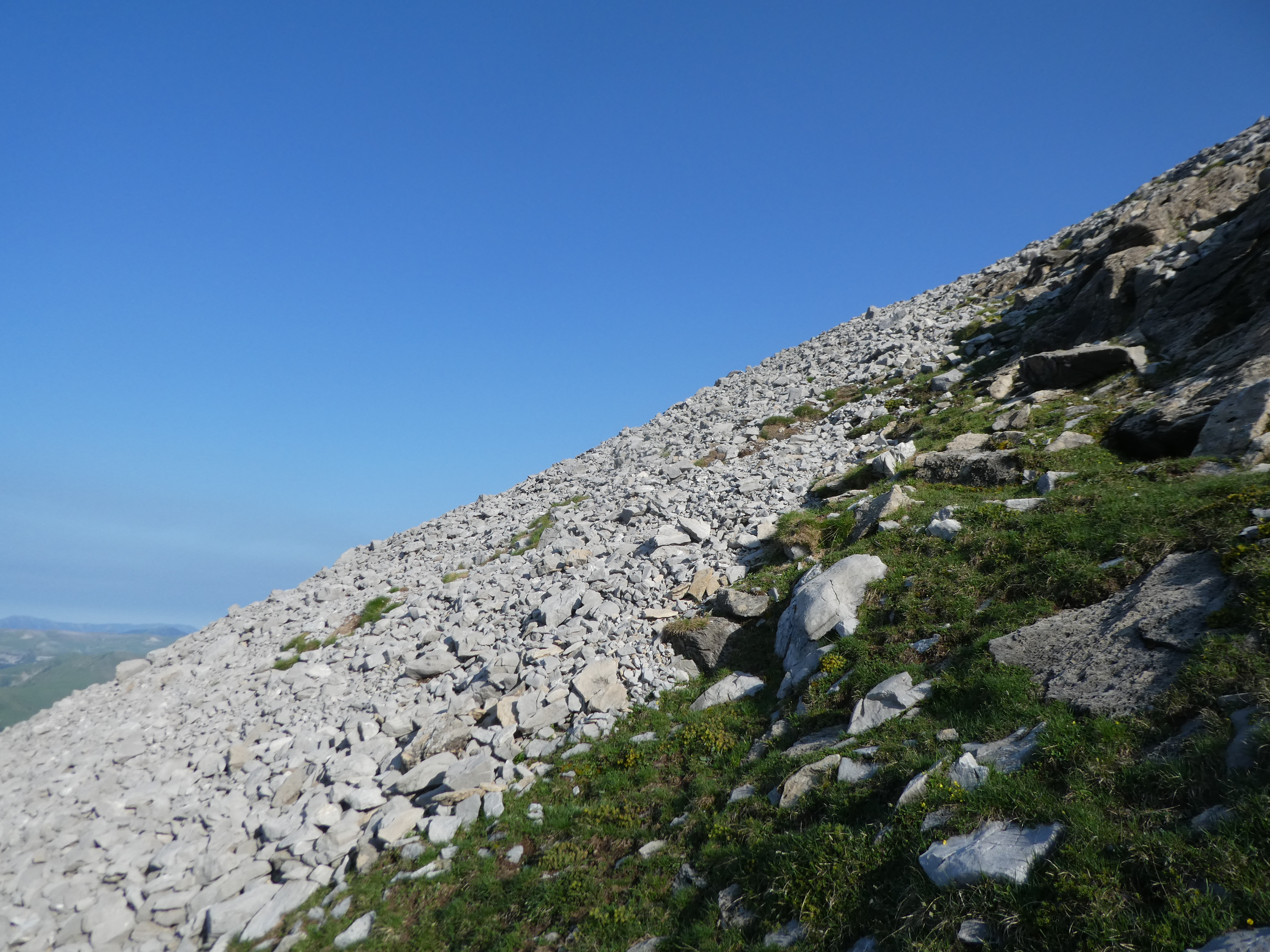 - Montée raide et hors sentier dans le pierrier pour accéder à la crête sommitale de la Pala de Montinier
