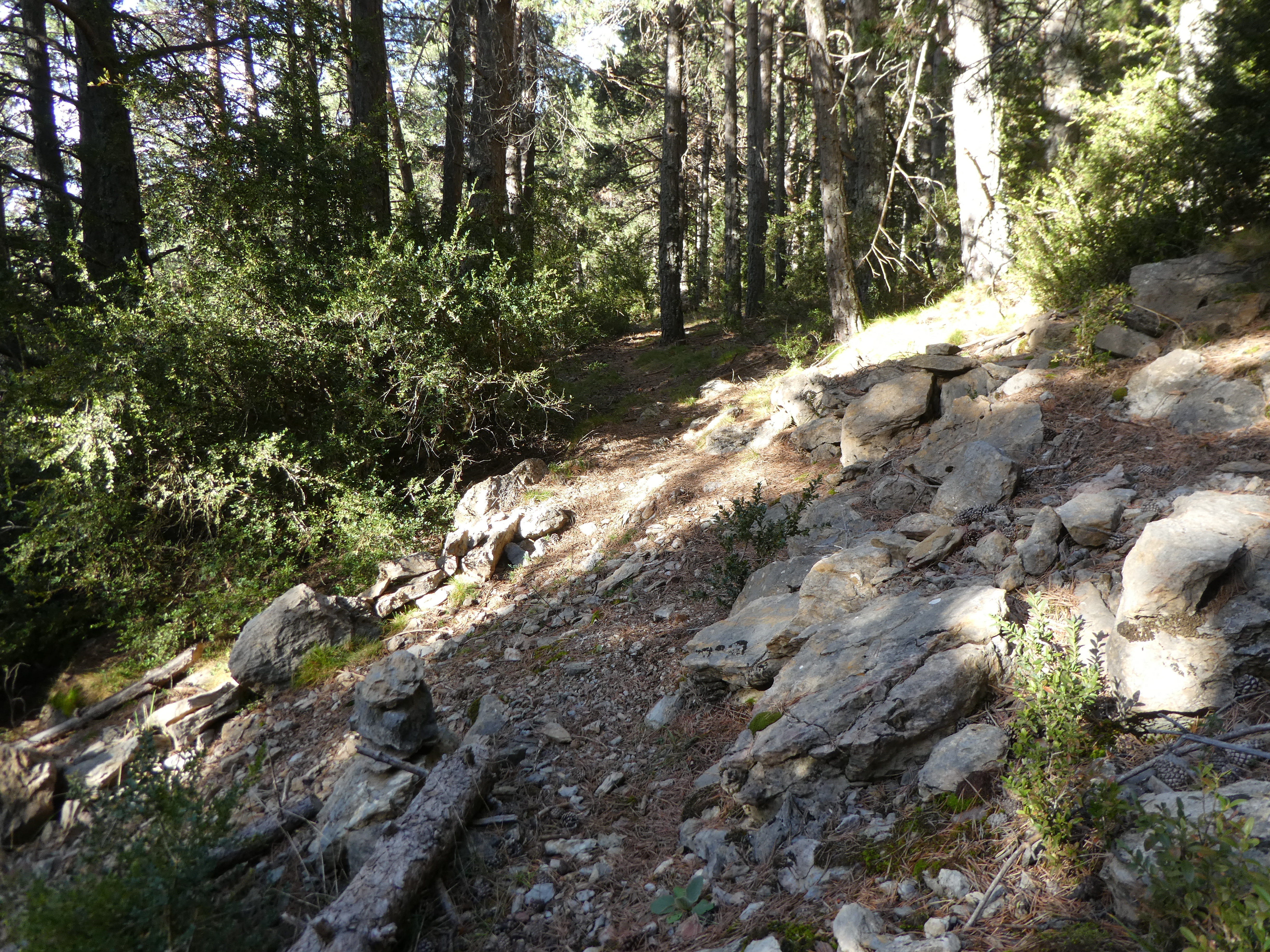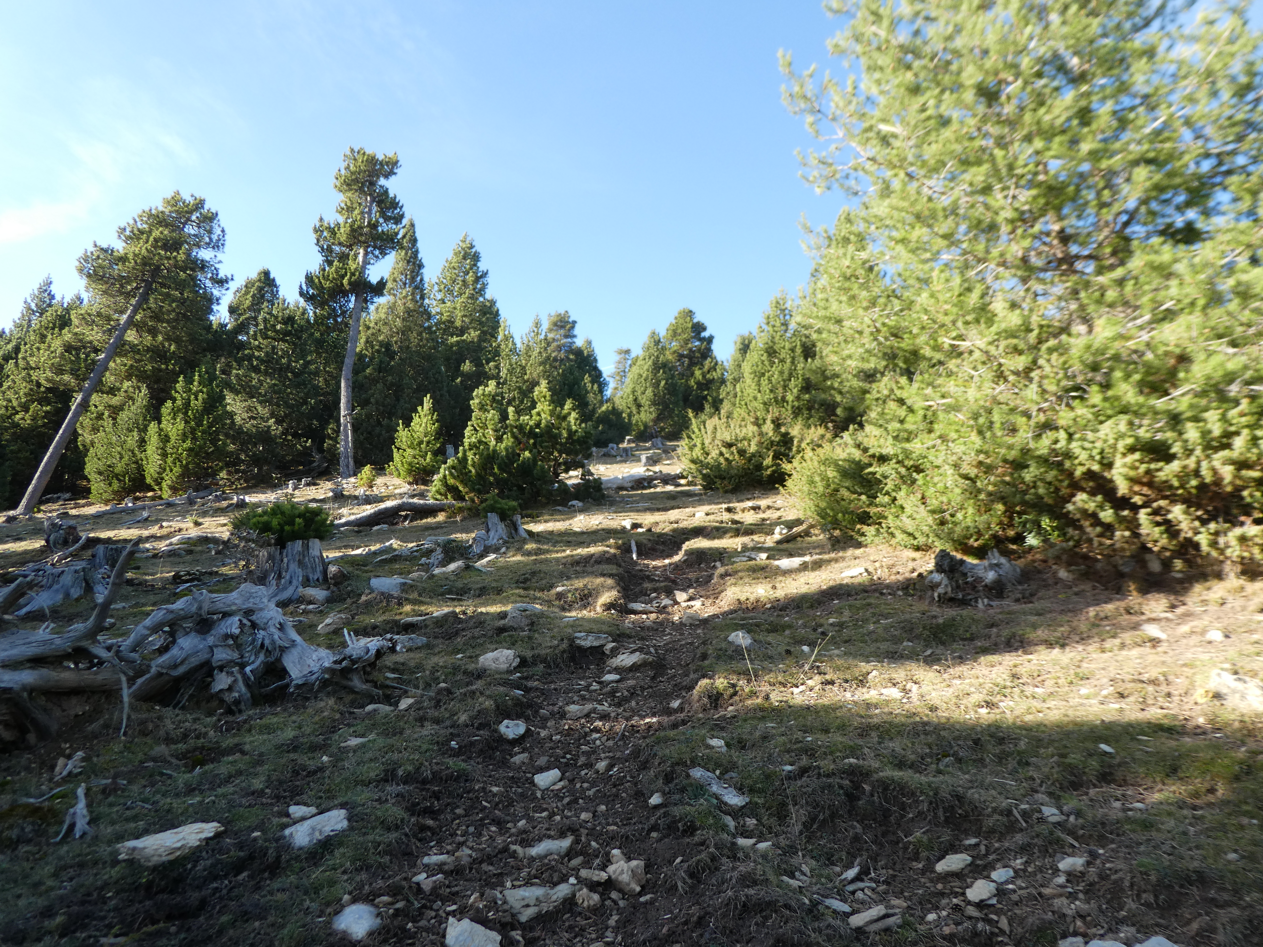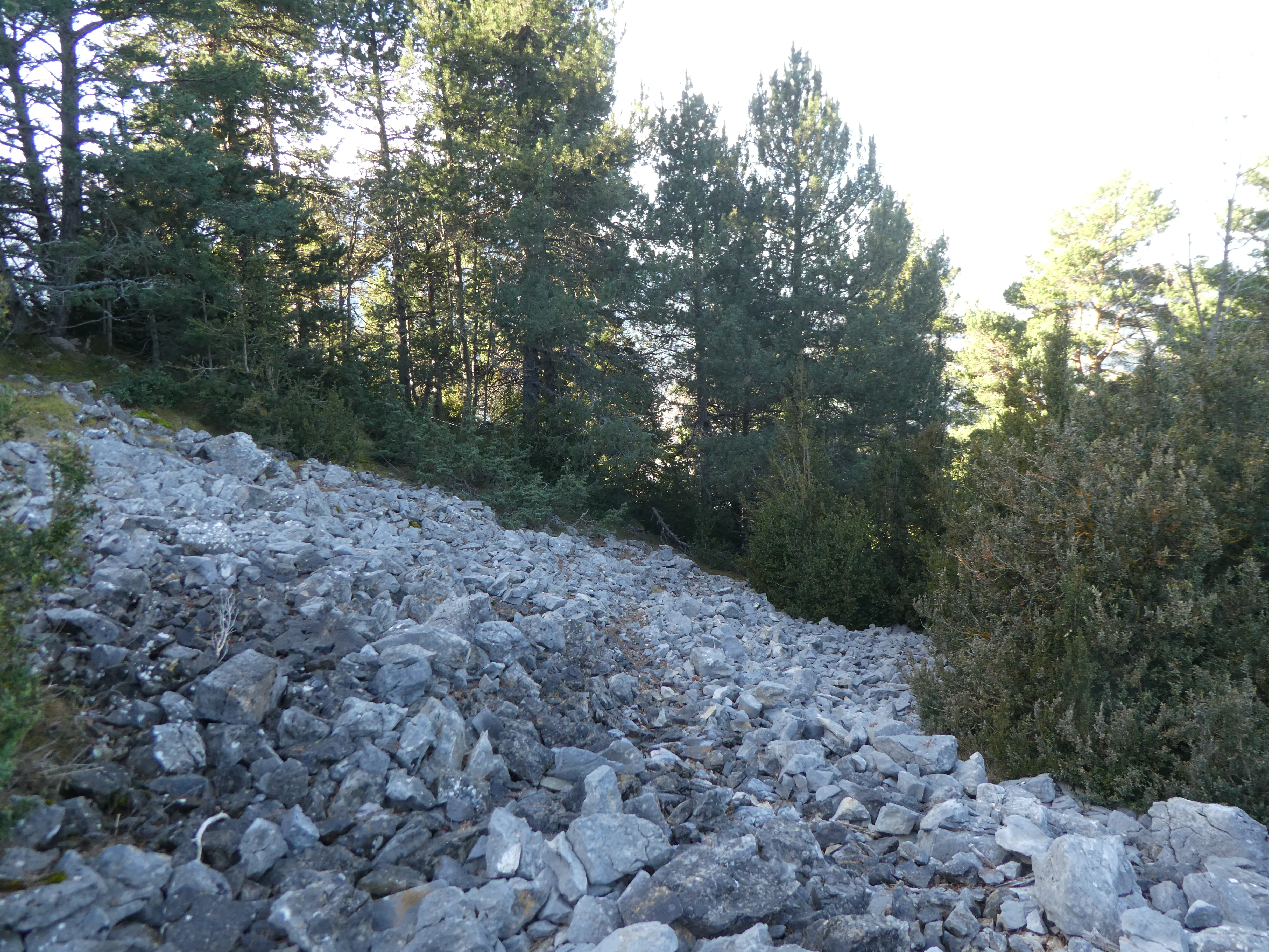 - Descente raide et quasi hors sentier de la Roca Gran jusqu'à la jonction avec le chemin descendant vers le sentier du Coll de l'Home Mort