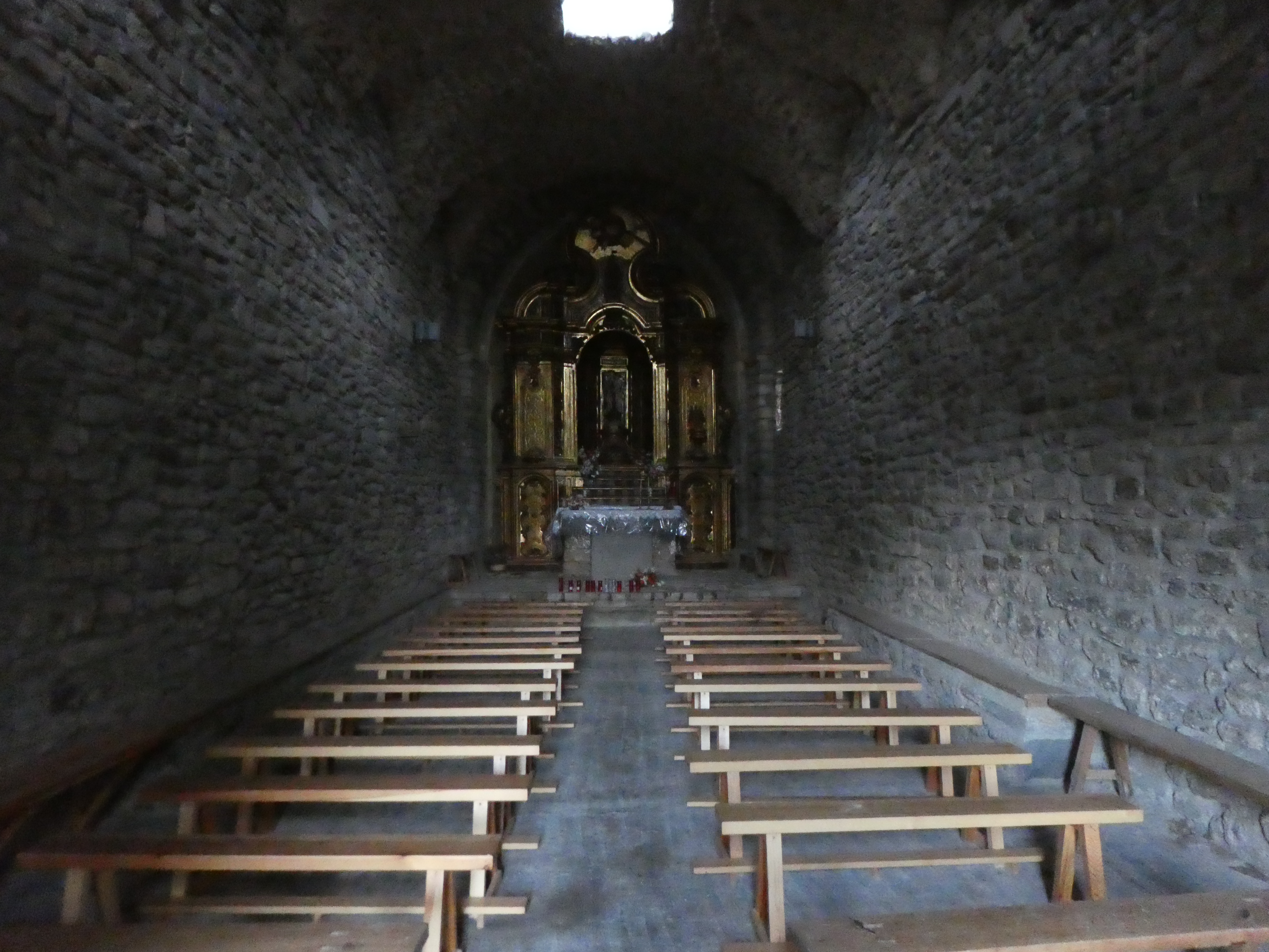 A ce croisement situé au niveau de l'Esgélsia Sant Genís de Montellà (150 mètres après le précédent), suivre le chemin partant légèrement sur la gauche direction l'Aratanya
